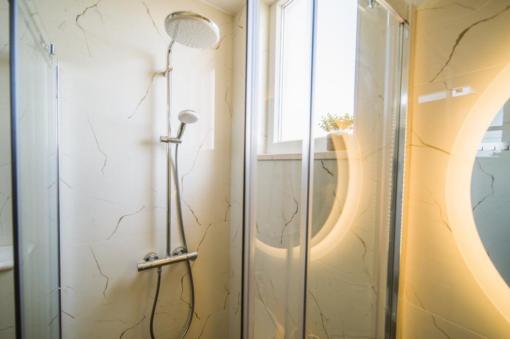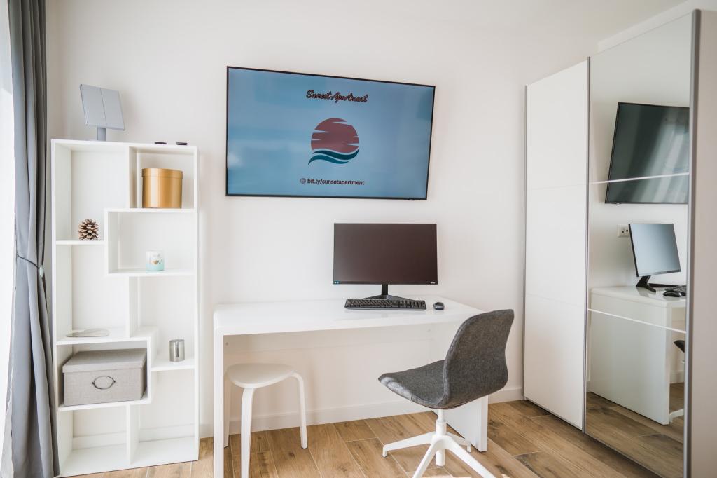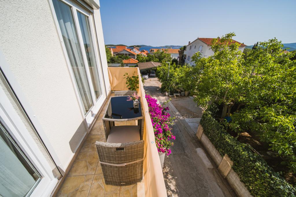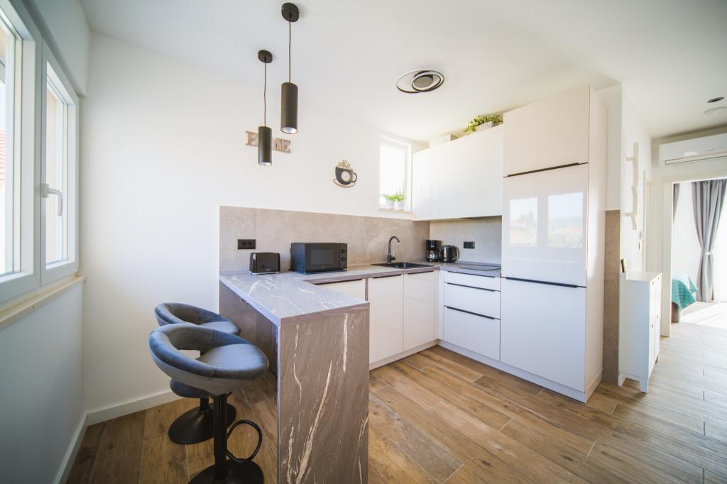 Lejlighed Sunset er en moderne og fuldt udstyret lejlighed til to personer, beliggende i Orebić på den smukke Pelješac-halvø. Lejligheden ligger på første sal i et familiehus og har en privat trappe og en separat indgang, hvilket sikrer komfort og privatliv under dit ophold. Huset ligger kun 80 meter fra havet, og byens centrum ligger få minutters gang væk, hvor du kan finde butikker, apoteker, restauranter og andre faciliteter. Lejligheden indeholder: Et fuldt udstyret køkken med spiseplads. Et soveværelse med en komfortabel dobbeltseng, der måler 180 × 200 cm, et tv og et skrivebord med skærm og tastatur - ideelt, hvis du kombinerer ferie og fjernarbejde. Et moderne badeværelse. To balkoner, perfekte til afslapning med en morgenkaffe eller en aftensolnedgang. Privat parkeringsplads foran huset. For at gøre din ankomst endnu mere behagelig modtager gæsterne en velkomstpakke ved ankomsten. Vi ønsker dig et behageligt ophold i Sunset apartment Orebić.