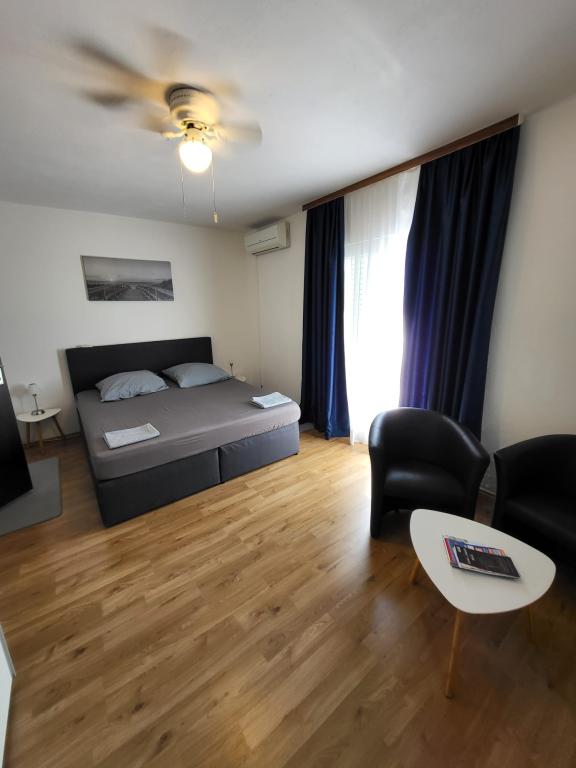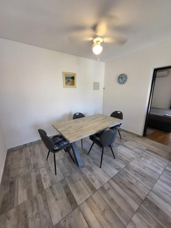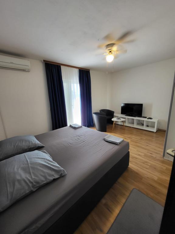 Læs mere IndkvarteringsenhederPrisen for indkvartering inkluderer indkvartering i lejligheden i henhold til den tidligere aftale, samt brug af alle faciliteter, der er beregnet til et behageligt og ubekymret ophold. Gæsterne har gratis privat parkering på stedet, gratis Wi-Fi og brug af aircondition i lejligheden. Lejlighederne er fuldt udstyrede og indeholder alt, hvad der er nødvendigt for hverdagen: køkkenredskaber, bestik, tallerkener, håndklæder og sengelinned. Sengelinned skiftes en gang om ugen, og lejligheden rengøres grundigt og klargøres til gæsterne på ankomstdagen. Betaling: For at bekræfte reservationen opkræves et depositum på 30% af den samlede indkvarteringspris, mens det resterende beløb betales ved ankomst. Det er også muligt at betale det samlede beløb på forhånd. Indtjekning og udtjekning: Indtjekning er mulig fra kl. 15.00, udtjekning er indtil kl. 10.00 på afrejsedagen. Lejlighedskapacitet: Det maksimale antal personer pr. lejlighed er 4, hvilket gør den til et ideelt valg for familier eller mindre grupper.