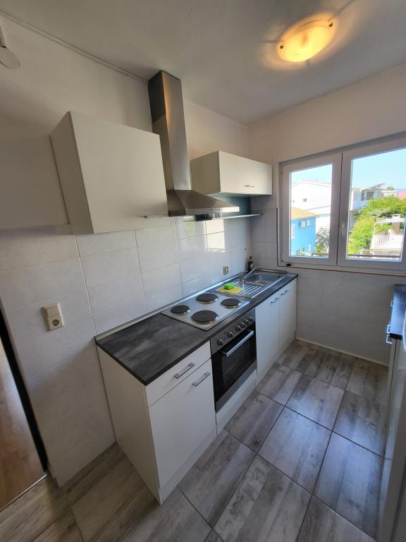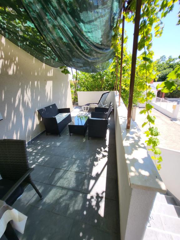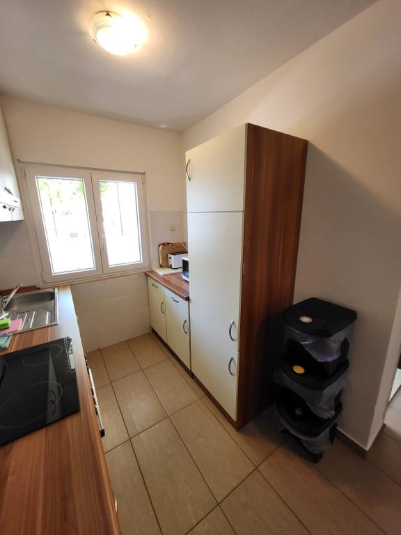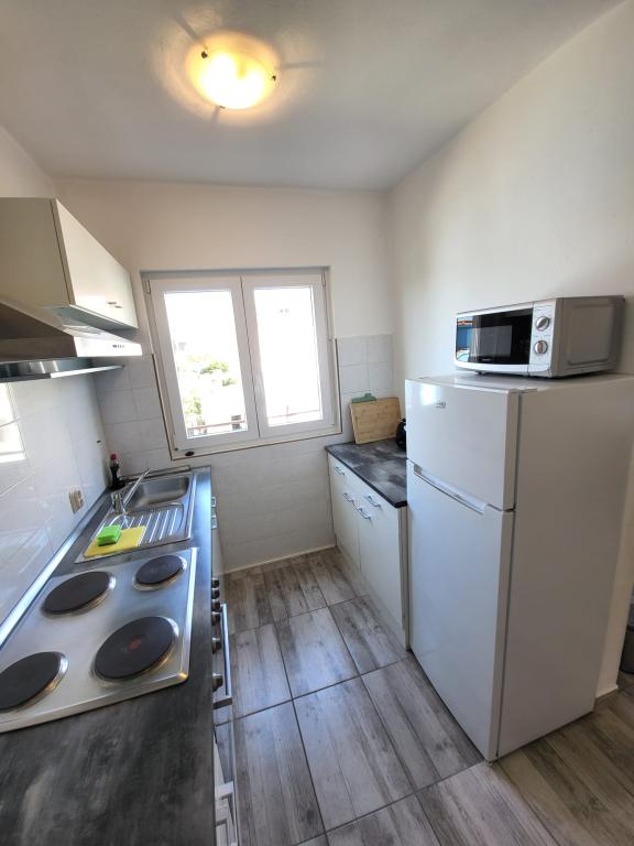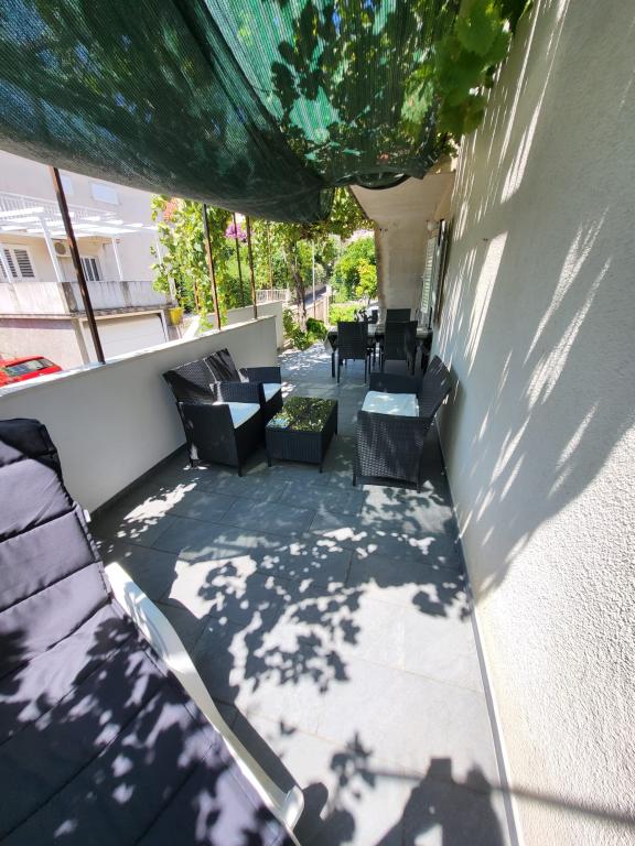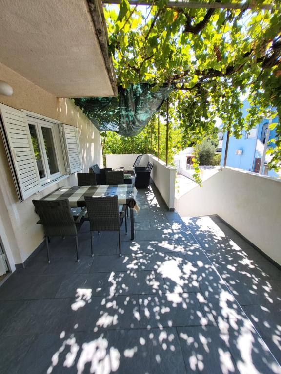 Vi er beliggende i Orebićs centrum, og alle nødvendige faciliteter er inden for gåafstand. Stranden ligger kun få minutters gang væk. 50 meter derfra er der en butik, bageri, apotek, café og fastfood. Der er også andre faciliteter såsom restauranter og andre aktiviteter i nærheden. Denne ejendom med have tilbyder indkvartering med aircondition, balkon og terrasse samt havudsigt. Lejligheden inkluderer gratis parkering, aircondition, satellit-tv og Wi-Fi. Den har også et fuldt udstyret køkken med alt nødvendigt tilbehør. Huset ligger i en stille gade med udsigt over havet, haven og gaden. Lejlighed AP1 (ID: 71816): Lejligheden er 61 m2 stor + terrasse 16 m2 + balkon 7 m2. Lejligheden har et badeværelse, 2 soveværelser, en spisestue og et køkken. Lejlighed AP2 (ID: 71815): Lejligheden er 61 m2 stor + terrasse 4 m2 + balkon 7 m2. Terrassen og balkonen er overdækket med markiser for den nødvendige skygge og udstyret med havemøbler. Lejligheden har et badeværelse, 2 soveværelser, en spisestue og et køkken.