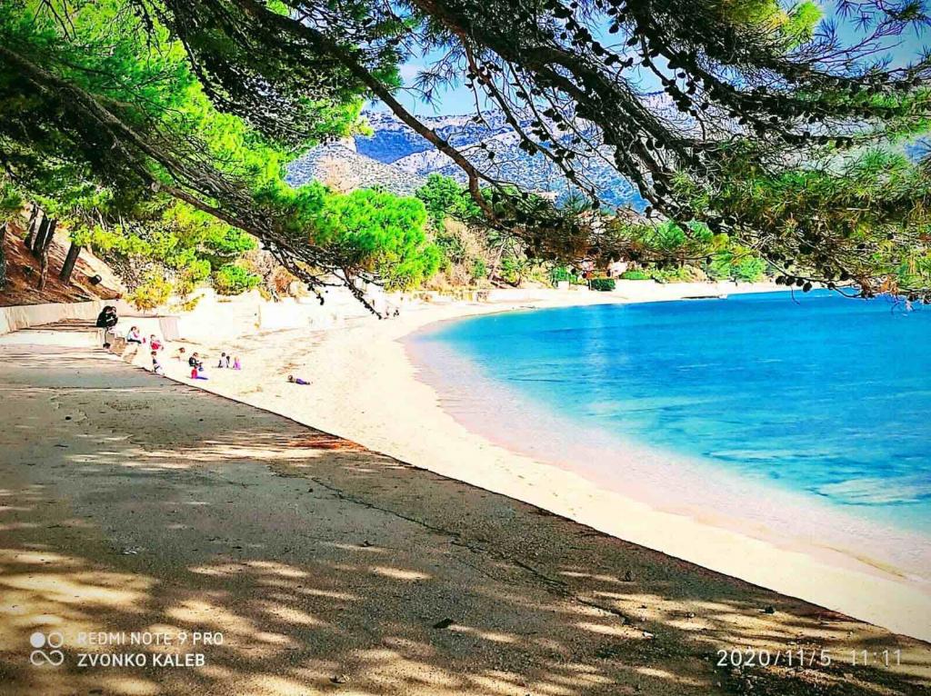 Fremragende. Tæt på stranden, som er småsten. Lidt skygge langs kanten. Eftermiddagsstrand i skyggen, hvilket er fantastisk. Turkisblåt hav!!! Lejligheden til 4 personer er top. Aircondition i alle værelser. Tæt på butikker, lille by...Anbefales.