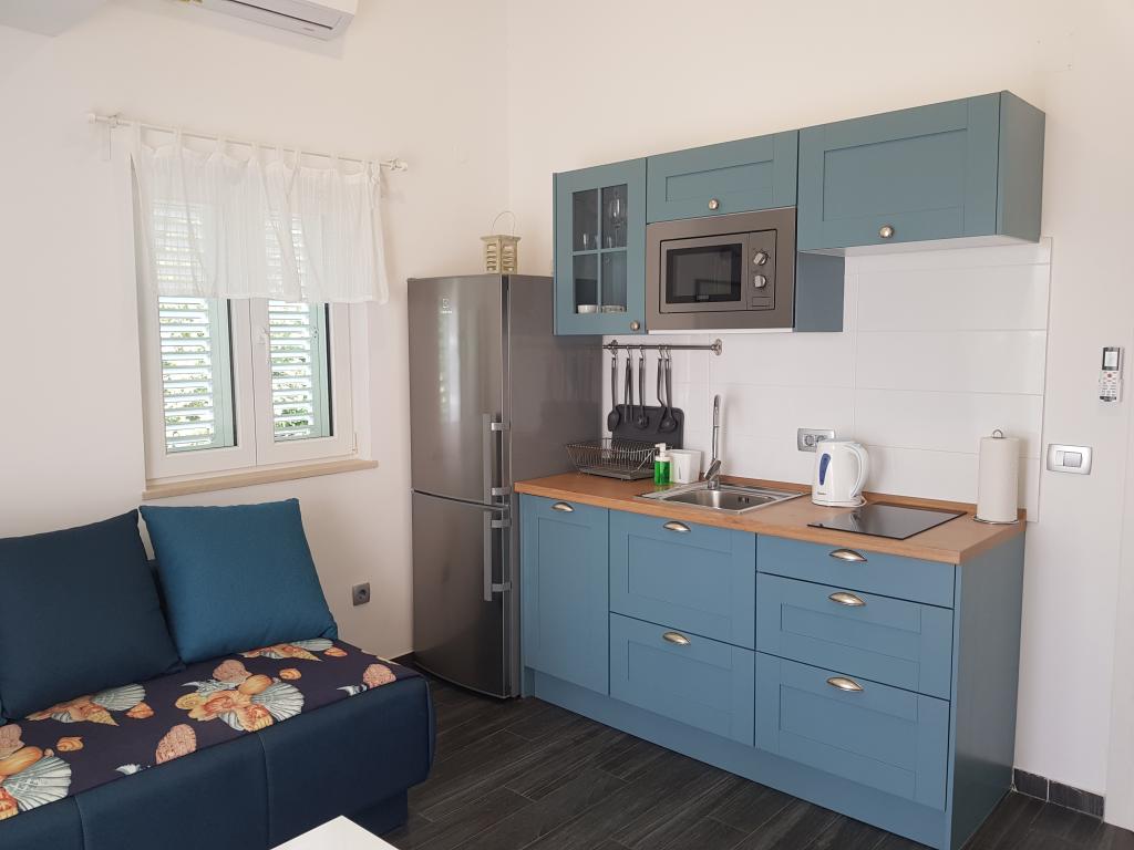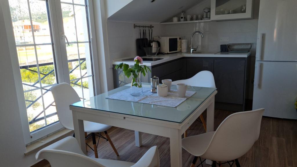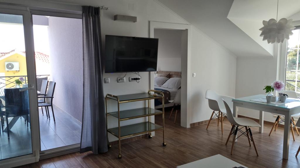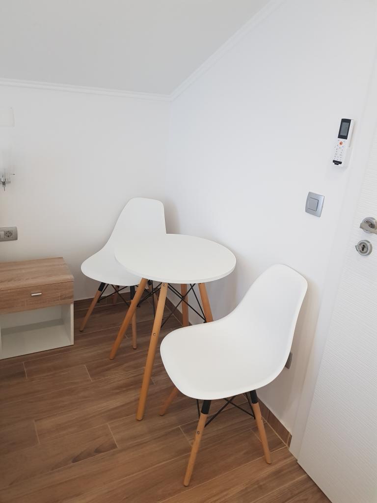 Lejligheden har en fantastisk beliggenhed, en stille gade, hovedstranden ligger tæt på, og alt andet ligger ved vandet, så du kan nyde udsigten over havet og øerne, mens du går på restaurant, spiser is eller måske tager en bådtur til de nærliggende øer. Den er også tæt på hovedvejen, hvor du kan finde butikker, bagerier og boder med lokale produkter. Dybest set behøver du slet ikke en bil, da du har alt i nærheden. Ejeren er diskret og er altid i nærheden, hvis du har brug for noget. Studiet er moderne indrettet, rent, og balkonen er stille og rummelig nok til 2 personer. Vi følte os godt tilpas under vores ophold, og jeg vil anbefale lejligheden til alle.