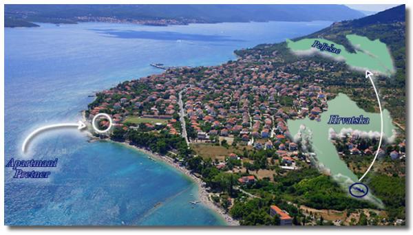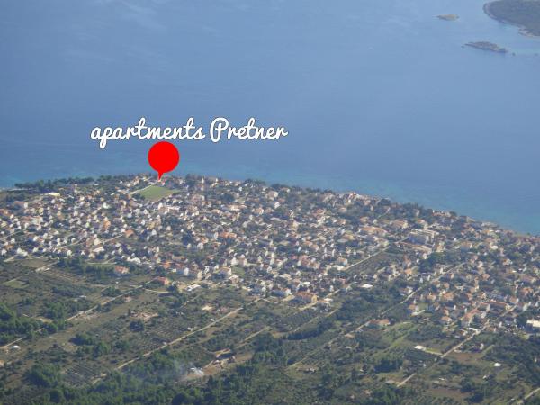 Ferielejligheder Pretner i Orebic på Peljesac halvøen er beliggende i et fredeligt og roligt miljø, ved havet, ved siden af sandstranden Trstenica. Først og 2000m2 omfatter sydsiden have fuld af grønne områder med middelhavsvegetation og en pejs, der er til rådighed for gæsterne. På nordsiden er der træer af citrusfrugter og oliventræer og en stor parkeringsplads. Hver lejlighed har aircondition og er udstyret med satellit-tv og trådløst internet.