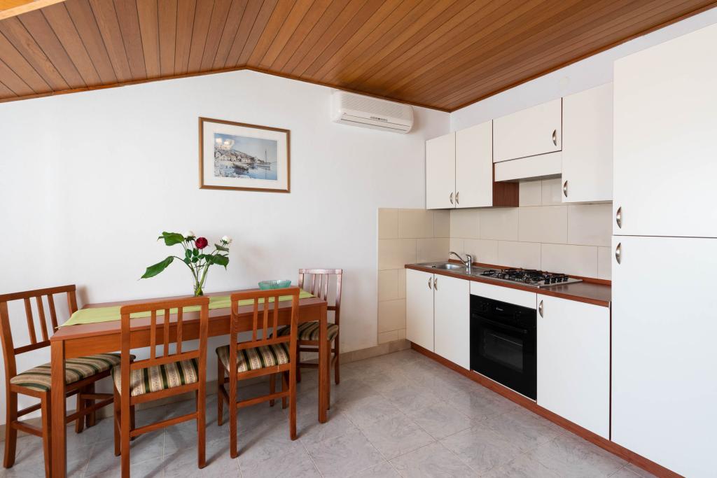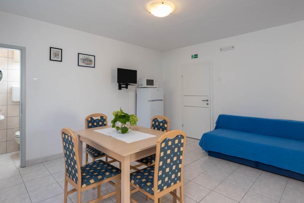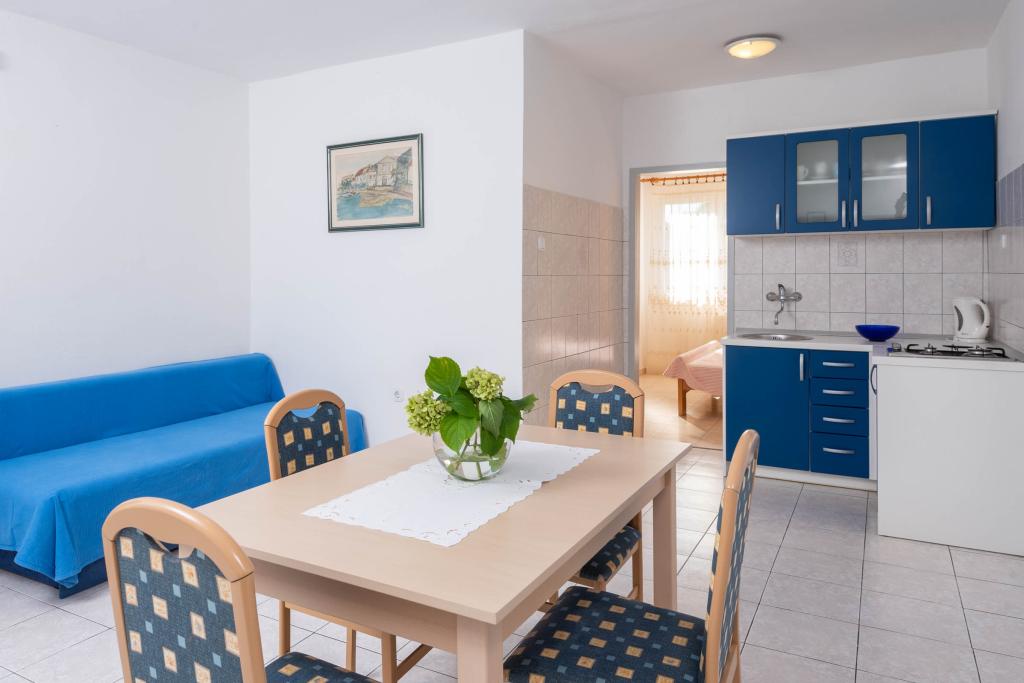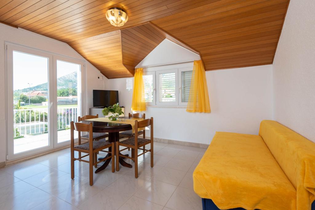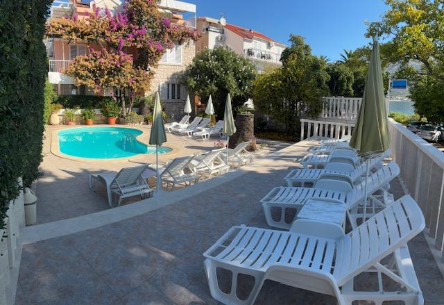 "Villa Melita" ligger lige ved havet og langs en rolig promenade. Dette sted er særligt velegnet til alle, der har brug for en pause. Huset har en smuk have med middelhavsvegetation, hvor der er en 32m2 swimmingpool med 14 liggestole. Der er også en grill til rådighed. Vores private parkeringsplads til hver lejlighed er også i nærheden. Alle vores lejligheder har aircondition, gratis WiFi, satellit-tv, et fuldt udstyret køkken, et badeværelse og en privat terrasse. Badehåndklæder og sengelinned er også inkluderet. Huset ligger i gåafstand fra adskillige restauranter, caféer, butikker og bagerier til alle dine daglige behov. Vigtigst af alt er den største bystrand Trstenica kun 40 meter væk.