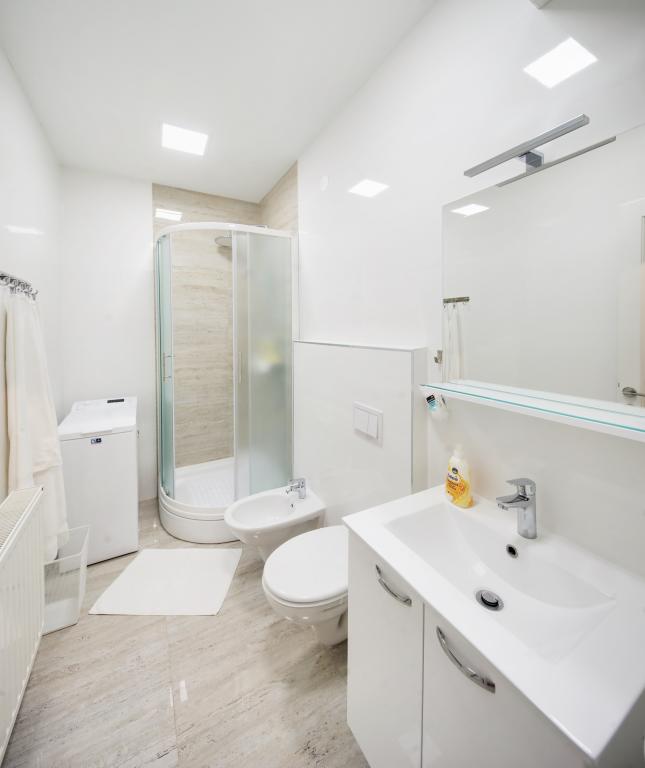 Lejlighederne er udstyret med alle de nødvendige apparater for at gøre dit ophold så behageligt som muligt. I stuen er der aircondition, kabel-tv og trådløst internet. Køkkenet er udstyret med komfur med emhætte og ovn, opvaskemaskine, køleskab, mikroovn, kaffemaskine, vandvarmer, brødrister og alt nødvendigt køkkenudstyr. På badeværelset har du en hårtørrer, håndklæder og badetilbehør til din rådighed. Hvis det er nødvendigt, kan du bruge vaskemaskine, strygebræt og strygejern. På anmodning kan en ekstra stol og seng til små børn klargøres. Ved at komme ind i lejligheden bliver du bruger og alle dine kommentarer er værdifulde for os, fordi de er med til at gøre de næste gæster mere tilfredse. Især hvis der var en fejl i udstyret, enheder eller en fejl i opbevaringen. Giv os venligst besked med det samme for at sikre, at du er tilfreds med vores service og dit ophold i lejligheden så hurtigt som muligt.