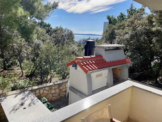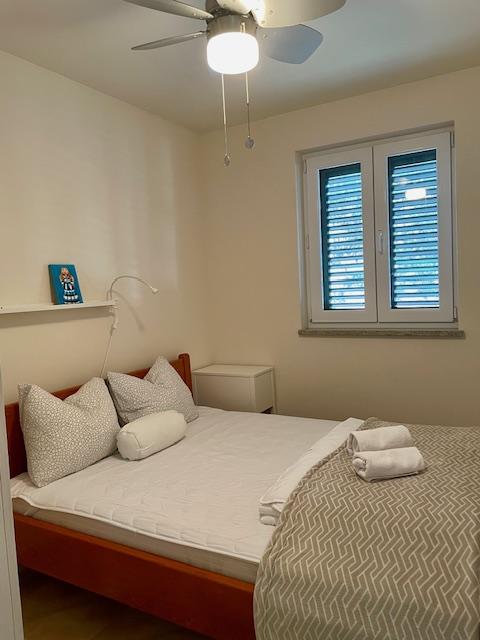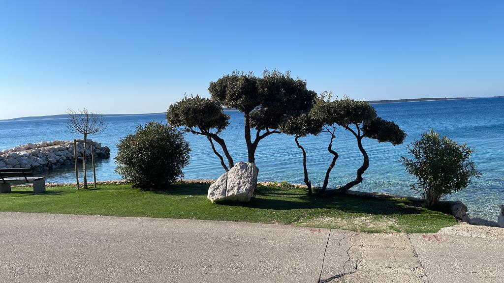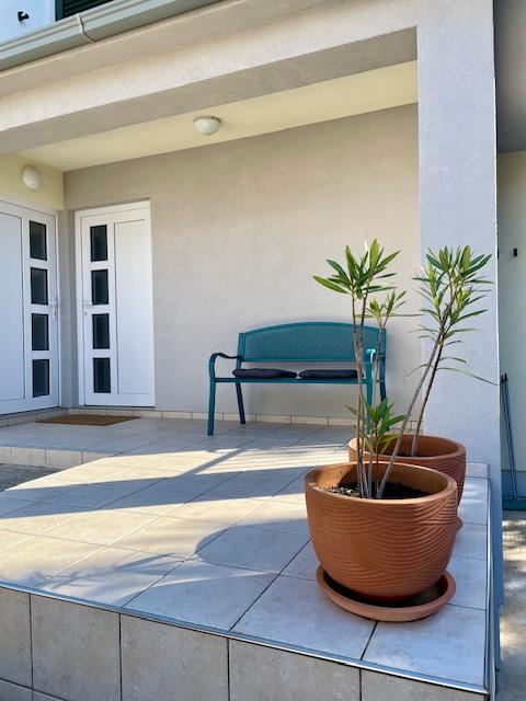 Dejlig lejlighed i husets stueetage med havudsigt. Terrassen (10m2) er overdækket. Gæsterne kan bruge en gårdhave med et stort bord til socialt samvær, en muret grill og en udendørs bruser. I umiddelbar nærhed er stranden, marked, caféer og restauranter. Der tilbydes gratis parkering til en bil i husets gård under opholdet. Byen Mandre er ideel til en familieferie med adskillige festivaler i sommermånederne, en lang lungo mare-promenade og anden underholdning. Lejlighedsejerne, der bor på husets øverste etage, står til rådighed for eventuelle spørgsmål. For al anden information er du velkommen til at ringe.