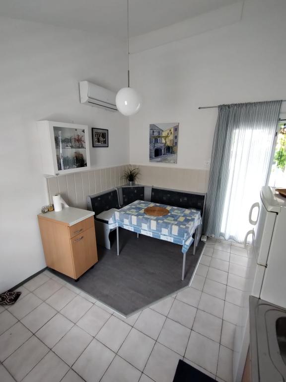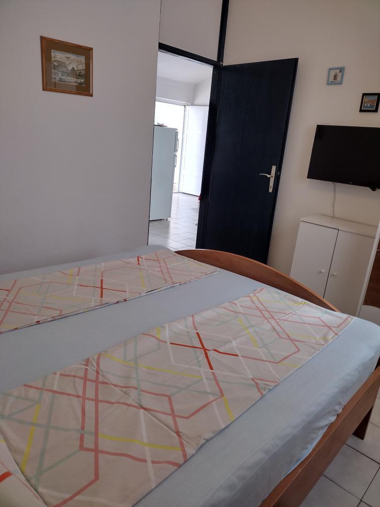 Lejlighed til 4 personer, hel etage, 2 soveværelser med tv, stor terrasse, køkken, badeværelse, kæledyr er tilladt, tæt på butikker, markeder, markeder, fiskemarkeder, tankstationer, flere pizzeriaer, taverner, caféer og restauranter. Til havet 150m, klimaanlæg, parkering i haven, Wi-Fi gratis lejlighed, grill, strande, smuk promenade, faciliteter til børn og vandland.