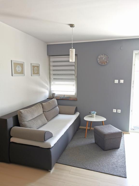 Anlægget er beliggende i et roligt sted Mandre på øen Pag, 100 meter fra stranden og 500 meter fra centrum og restauranter. Komfortabel, airconditioneret og udstyret lejlighed med gratis WIFI, med terrasse med udsigt over havet, grill og parkering. Strandene er stenede, stenede og sandede og har klart hav. Besøg os og tilbring en behagelig og afslappende ferie i Mandre.