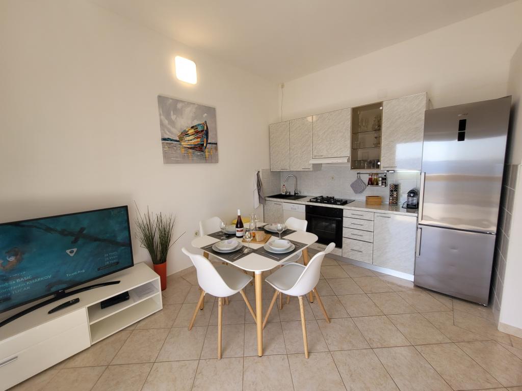 Lejligheden er simpelthen perfekt udstyret, alt ledigt hvad du har brug for, placeringen en drøm, havudsigt fra terrassen ikke at overgå Til supermarkedet, du er heldig med brødruller. Efter 20 meter kan du hoppe ind i havet. Værtinden Iris, altid for en altid venlig. Vi har lejet lejligheder i 40 år og har haft mange gode overnatningssteder, men sjældent en hvor lokationen og lejligheden var så stor!