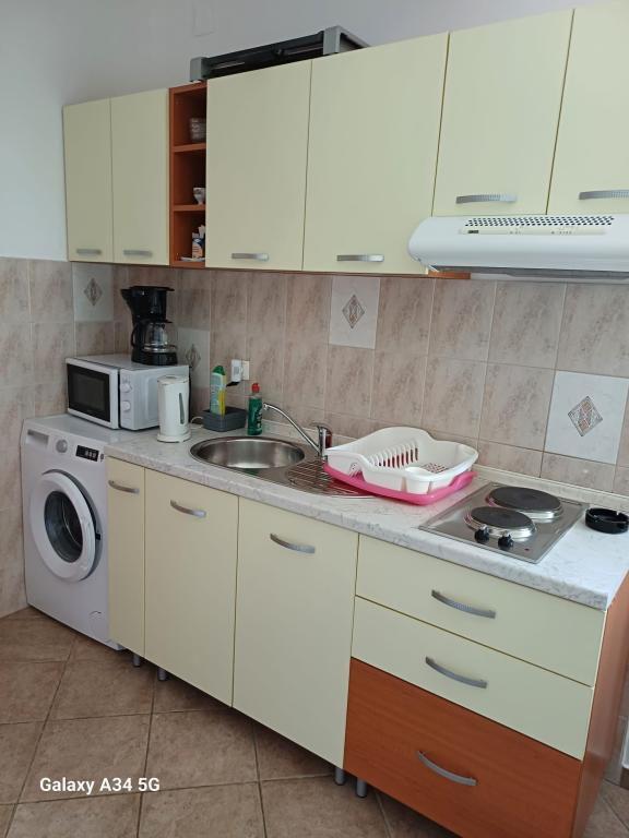 Lejlighederne ligger i et roligt område kaldet Mandre, i anden række til havet, 40 meter fra havet. Faciliteterne ligger 10 minutters gang fra centrum, hvor alle nødvendige faciliteter (apotek, butik, frugtbutik, caféer, restauranter) er placeret.