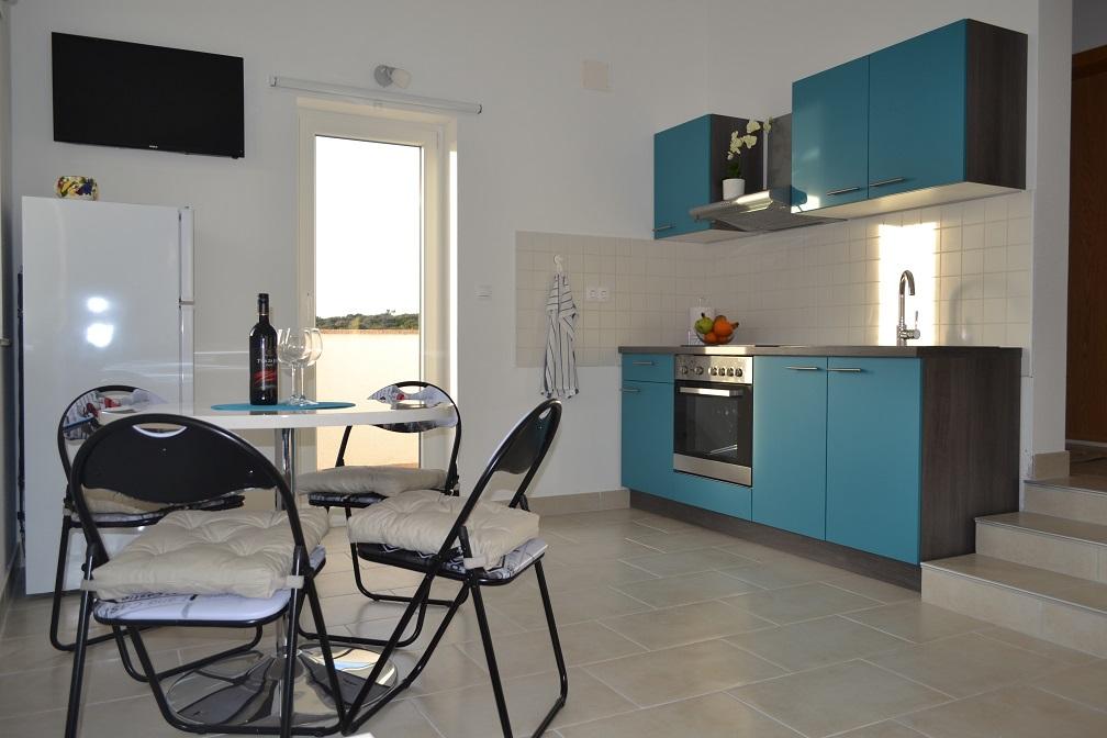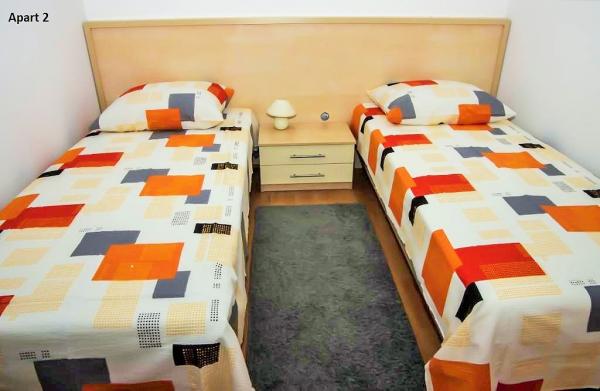 Tre lejligheder til leje i huse i Mandre. To lejligheder Maris 1 og Andrea 2 ligger ovenpå, og en Andrea 1 ligger i stueetagen. Alle lejligheder har separate indgange. Lejlighederne er også velegnede til helligdage for en eller flere familier. De er beliggende i et forhøjet område med en smuk udsigt over Adriaterhavet. De er beliggende i en mindre befolket del af Mandre og omgivet af nåleskove, der skaber en ægte atmosfære til afslapning og nydelse. Lejlighederne består af køkken, stue, badeværelse og to soveværelser. Det ene soveværelse har en dobbeltseng, mens det andet har to enkeltsenge. Lejlighederne har også en privat terrasse og gratis parkering. Stranden ligger 200 m væk. Mulighed for at leje en båd i den nærliggende havn. Et forskud betales som en reservationsbekræftelse. Turistskat inkluderet i prisen. Du kan se de gratis datoer for lejlighederne i kalenderen eller sende os en forespørgsel via e-mail-adresse. Vi byder enhver gæst velkommen. Velkommen!