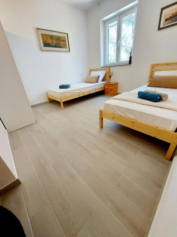 Mandre, en turist- og fiskerlandsby på øen Pag, ligger på øens sydside med en smuk udsigt over Silba og Olib og holmene Maun og Škrda, som er rige på bugter og smukke strande. Vores hus ligger i første række til havet, ved siden af en sten- og småstensstrand. Du skal blot træde ud af haven, krydse stranden og svømme i det krystalklare hav! Lejlighederne er fuldt udstyrede og omgivet af en rummelig have med naturlig skygge. Gratis parkering er placeret lige foran lejligheden. Dette er et fantastisk sted for en ferie for familier med børn og naturelskere. Mandre har en indrykket kystlinje med en 3 kilometer lang promenade og småstensstrande. Det ligger 14 km fra Novalja og Zrće, 16 km fra byen Pag og omkring 60 km fra den historiske by Zadar. Med en smuk solnedgang, duften af salt og havets brusen, kom og nyd vores sted. I den rummelige have er der mulighed for at opbevare cykler og SUP-boards til padling.