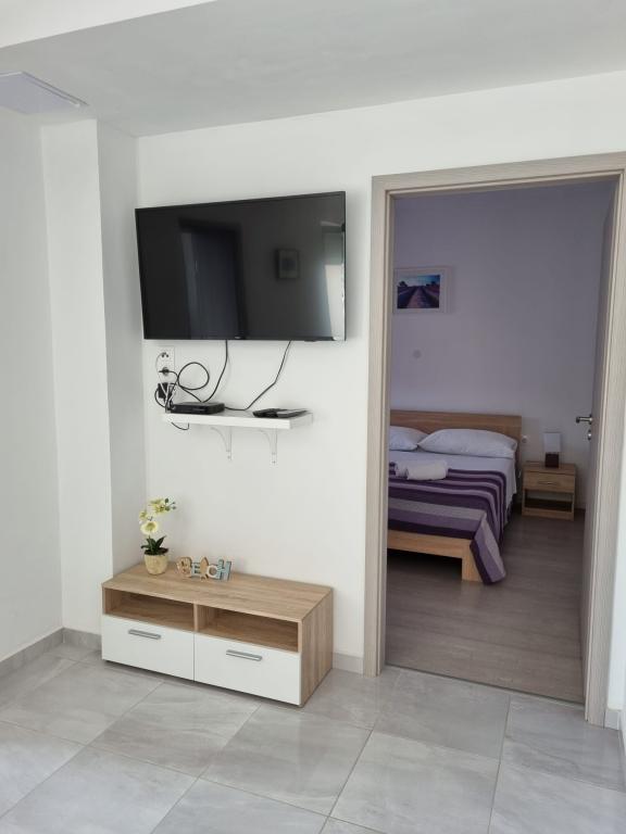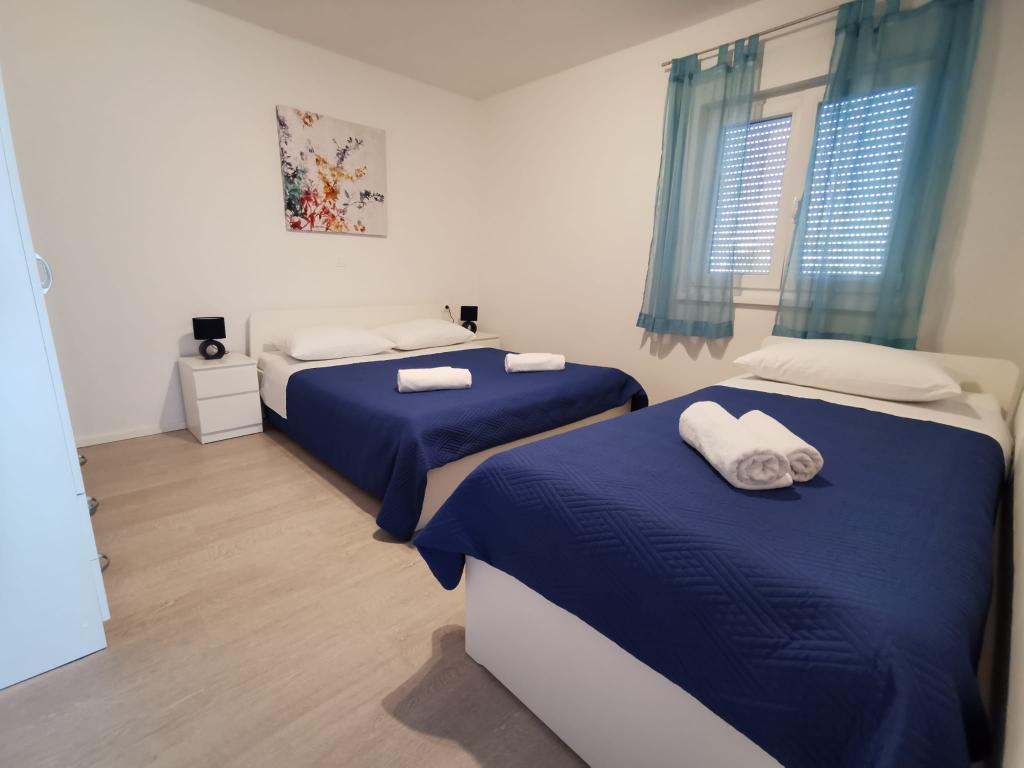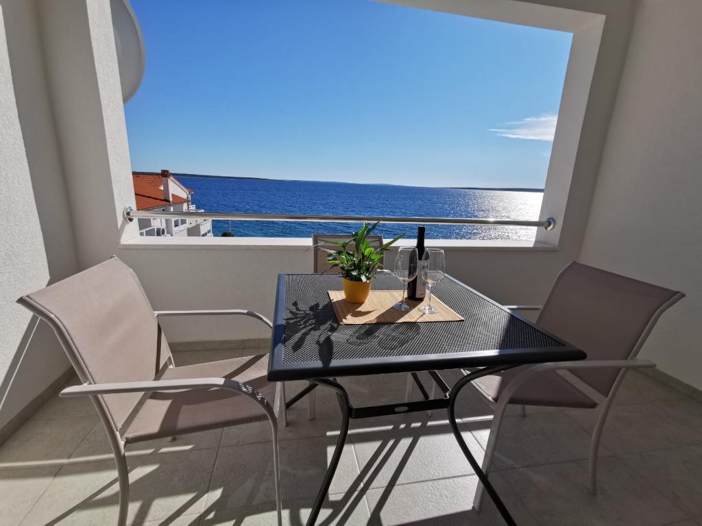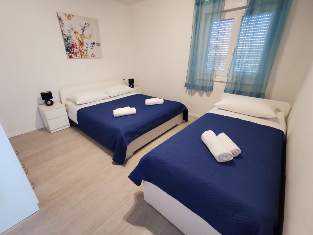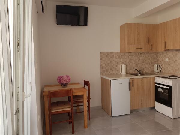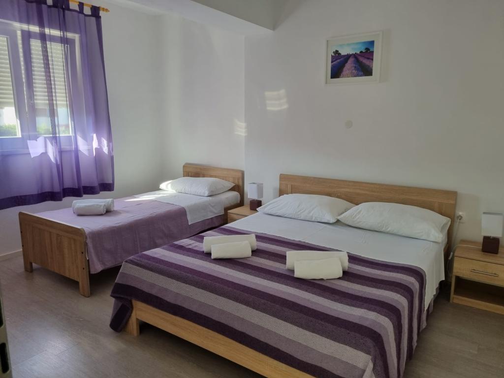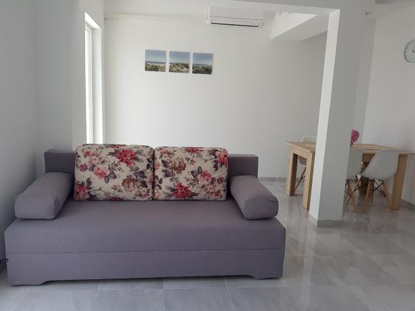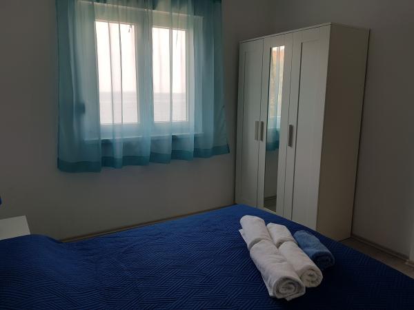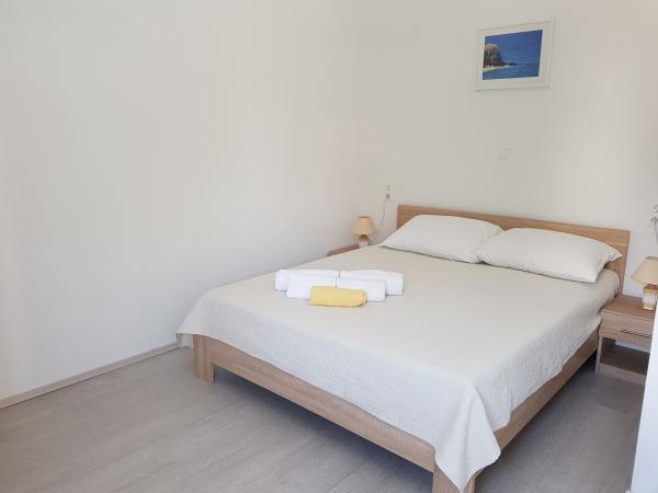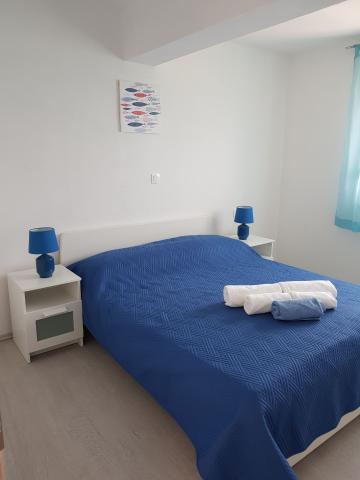 Vores lejligheder er beliggende ved havet, i centrum af Mandri, på øen Pag. Alle lejligheder ligger på 1. sal i vores familiehus, så de byder på en smuk udsigt over havet. Lejlighederne er nyistandsatte og udstyret med internet, aircondition, TV/SAT, fuldt udstyrede køkkener, og som tillæg kan man sænke myggenet på alle vinduer sammen med persiennerne, som beskyttelse mod myg. Hver lejlighed har sin egen parkeringsplads, og alle gæster kan benytte grillen i haven. Gennem vores gård går du direkte til stranden, så for en behagelig ferie i solen, behøver du kun et håndklæde over skulderen! Vi glæder os meget til din ankomst!