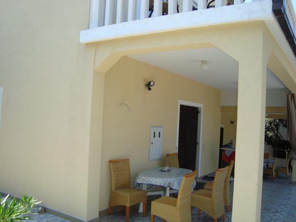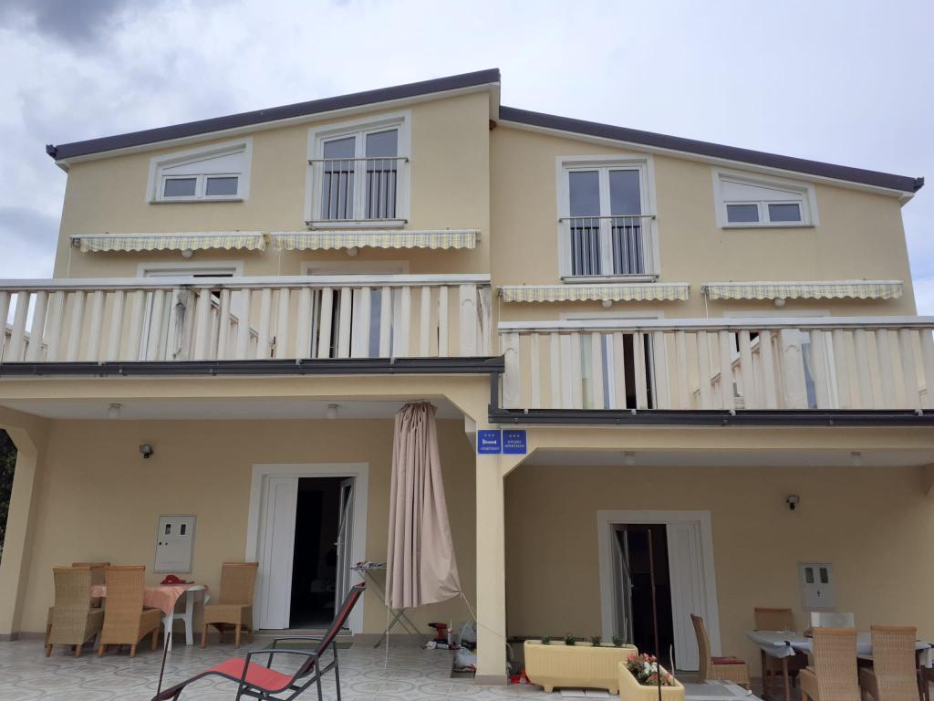 Lejligheder med egen indgang og separat terrasse udlejes. Lejlighedens pris bestemmes af antallet af nætter, yderligere rabatter afhænger af antallet af gæster og opholdets længde. Fuldt udstyrede lejligheder med køkken, køleskab med fryser, komfur (ovn kun i ROYAL-lejligheden) med komplet service og bestik. Alle lejligheder har aircondition og loftsventilator, stor dobbeltseng (160x200) og en ekstra seng om nødvendigt. Hver gæst modtager et håndklæde. Hver lejlighed har sengetøj til alle senge og en parkeringsplads til et privat køretøj. VIGTIGE BEMÆRKNINGER: - DYR (KÆLEDYR) ER IKKE TILLADT Vores hus ligger i 5. række fra havet, det vil sige en strand med fint grus og en blid indgang til havet, der er egnet til små børn. Vores hus ligger 10 minutters gang fra Mandre centrum. Den lille by Mandre er et roligt sted, ideelt til en familieferie med udsigt over Pag-øgruppen og det åbne hav i sydvestlig retning. På grund af sin geografiske placering er der ingen fare for stærk vind (bora).
