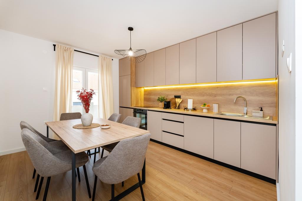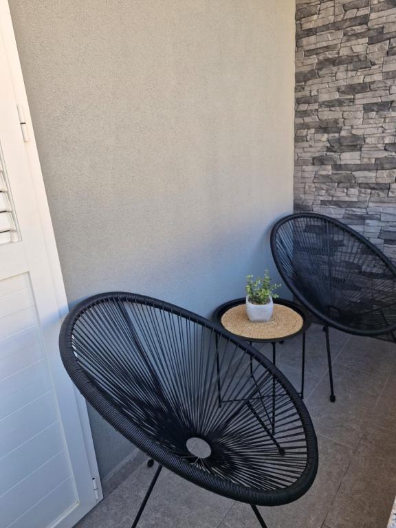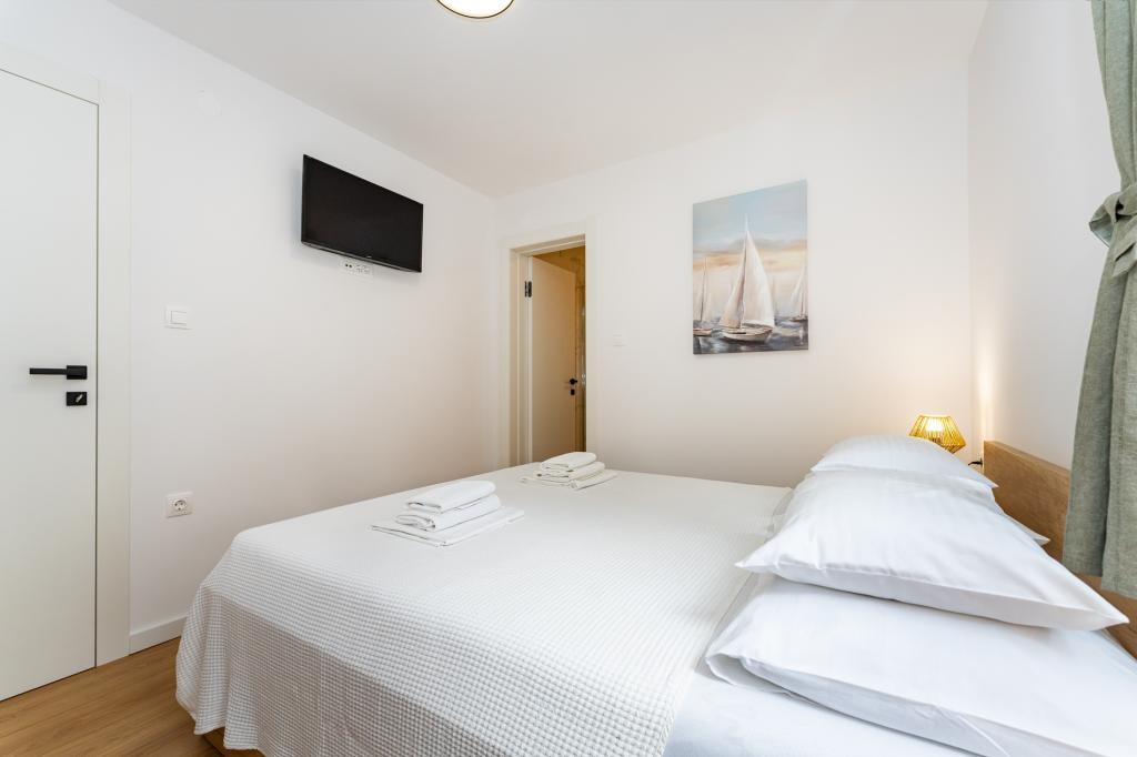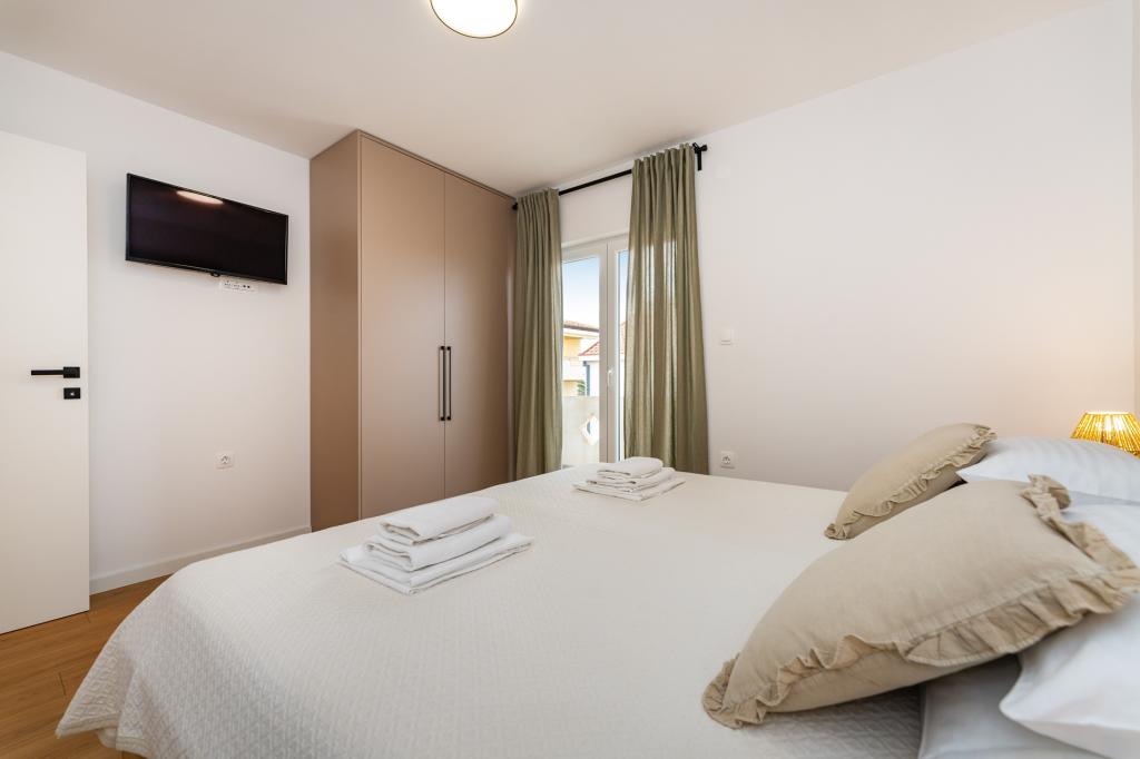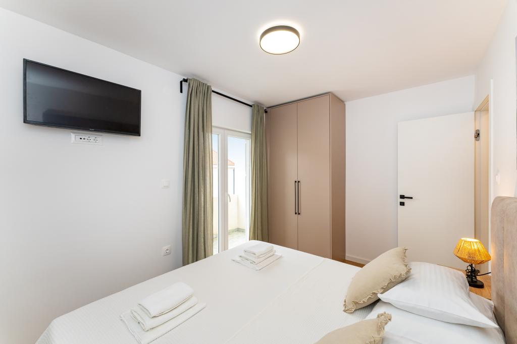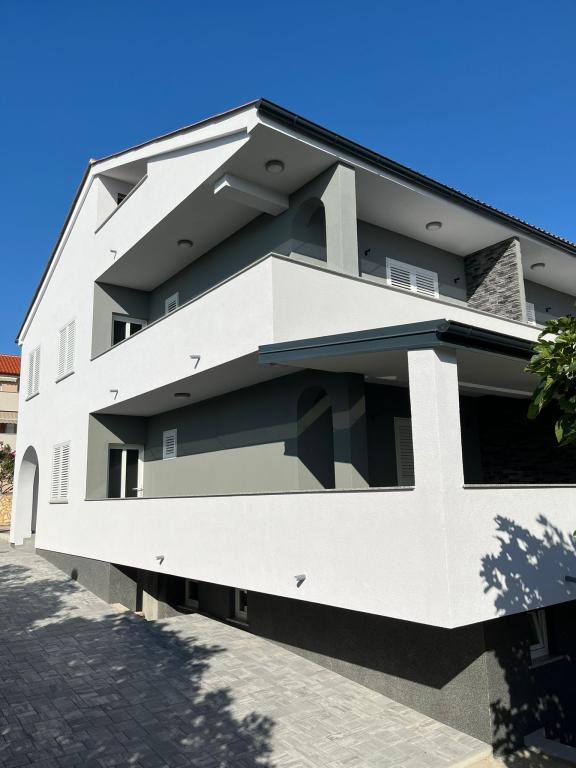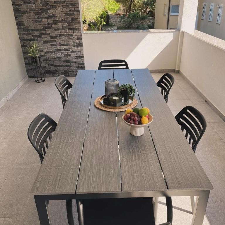 Velkommen til Villa Almaris lejligheder, en luksuriøs oase beliggende i centrum af Mandre på øen Pag. Vores familiehus byder på fire fremragende udstyrede og indrettede lejligheder, perfekt til afslapning og en flugt fra hverdagen. Blot 5 minutters gang væk ligger butikker, et apotek, restauranter og strande. Villa Almaris er et sted, hvor elegance møder tradition, og din ferie bliver uforglemmelig.