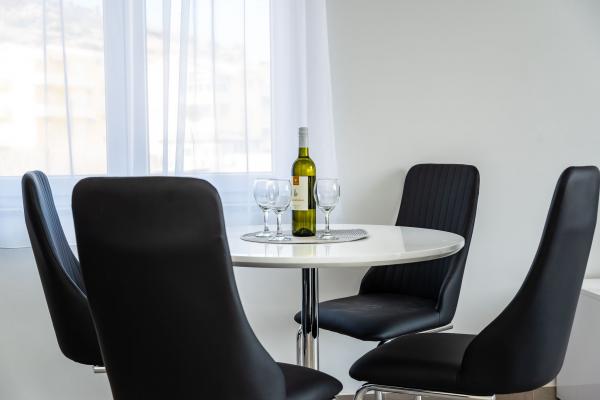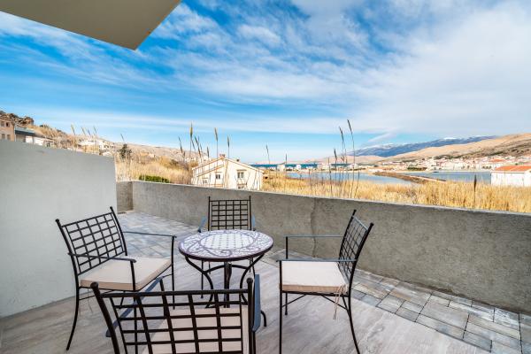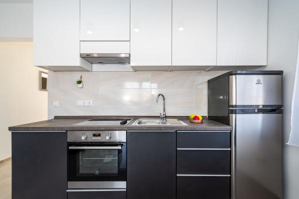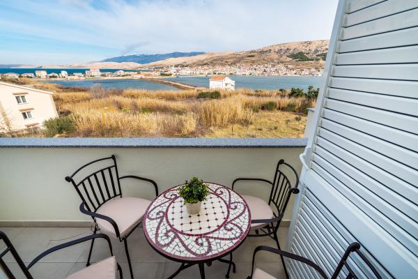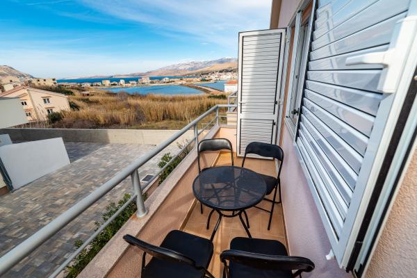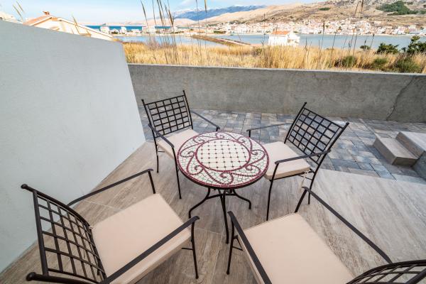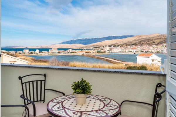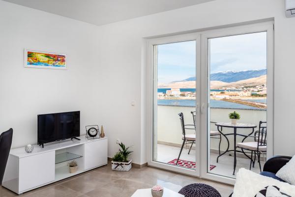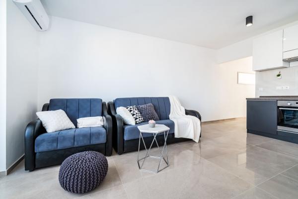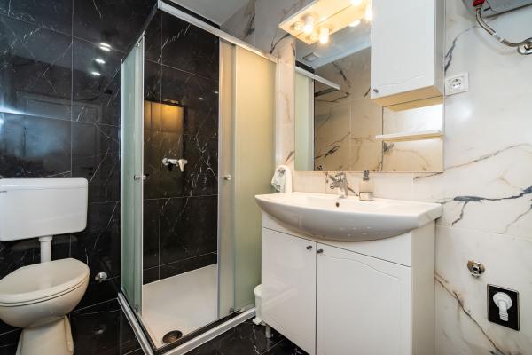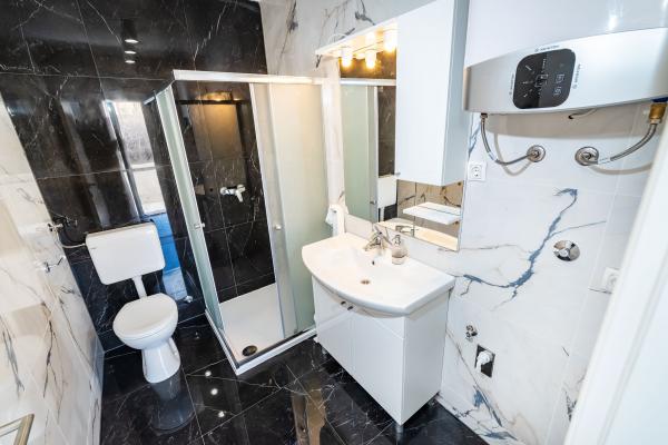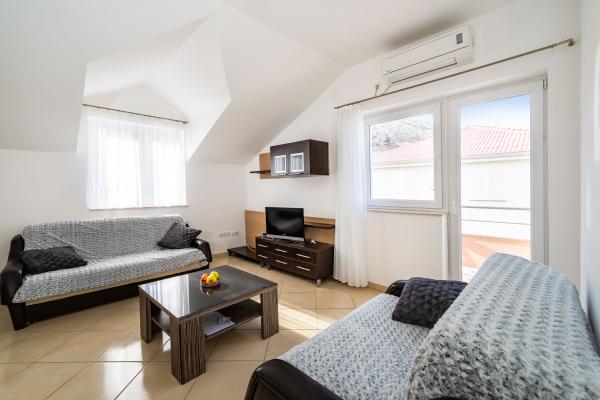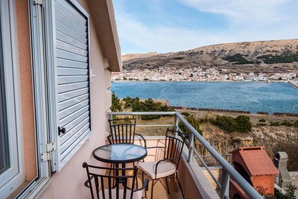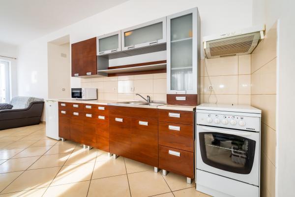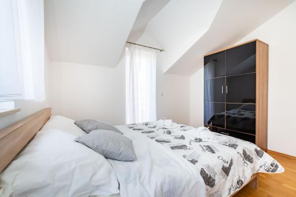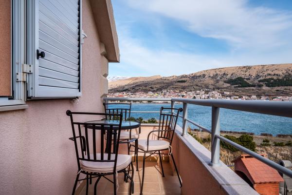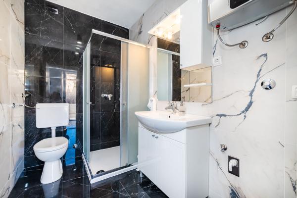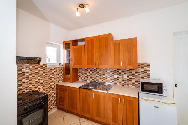 Fremragende lejligheder i en smuk beliggenhed med udsigt over havet og byen. Fuldt udstyret med alt det nødvendige indhold, parkering til biler, wi-fi, alt hvad du behøver til din behagelige ferie. 7 minutter til stranden, 10 minutter til centrum og restauranter. Den nærmeste butik ligger 5 minutters gang væk, alt er tilgængeligt på 10 minutter til fods. Lejlighederne 1 - 6 ligger i én bygning og er fuldstændig identiske. Tre lejligheder er i stueetagen (1 til 3) med store terrasser. Tre lejligheder ligger på første sal. Alle har udsigt over havet. Lejlighed 7 og 8 ligger på 1. sal i anden bygning, som ligger lige ved siden af første bygning. Alle lejligheder er moderne indrettede, og gæsterne har alt, hvad de har brug for til deres rådighed, herunder en mikrobølgeovn, køleskab, wi-fi, kedel, køkkenredskaber, håndklæder... Der er en grill med bord og stole til socialt samvær.