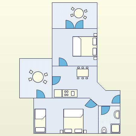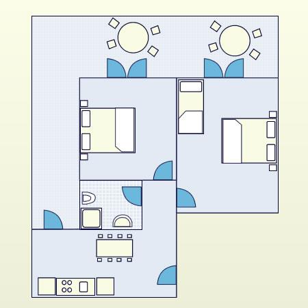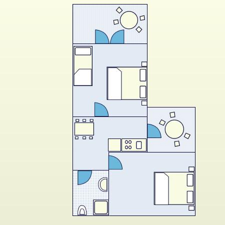 Ferielejligher til fire personer med ekstra seng (50 m2)