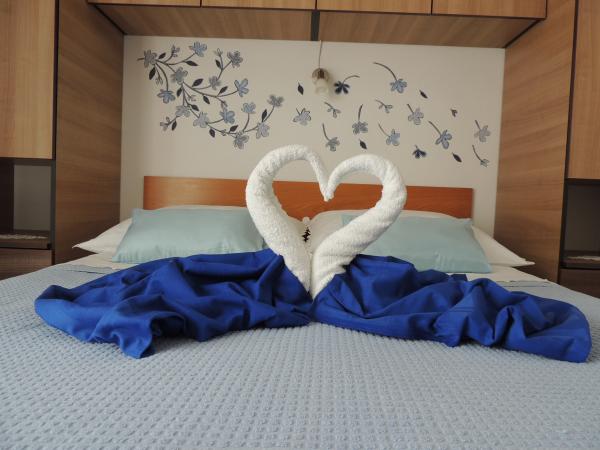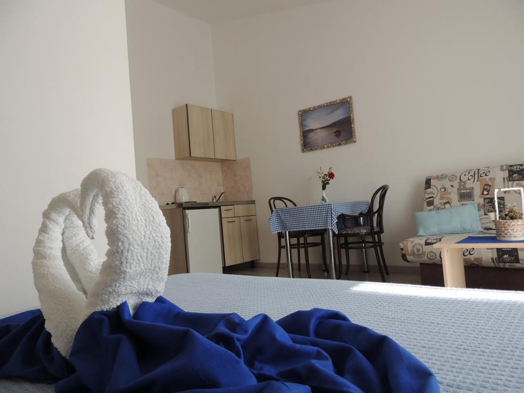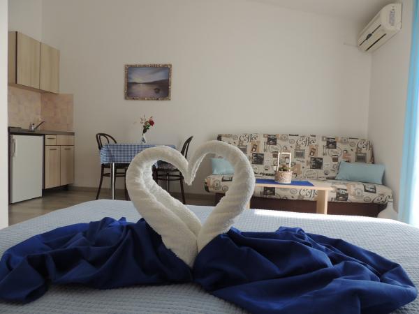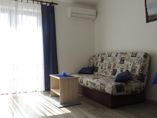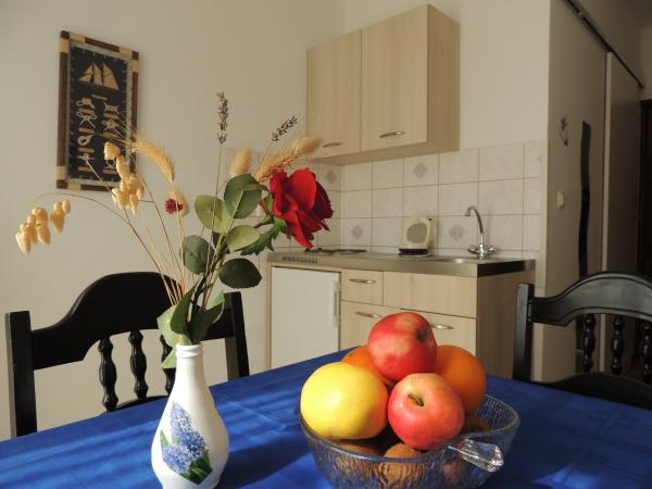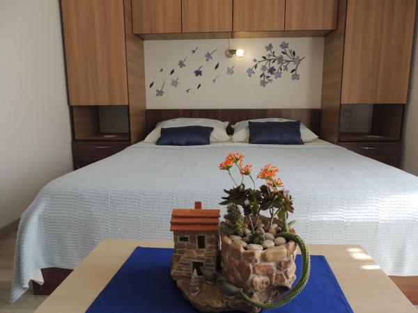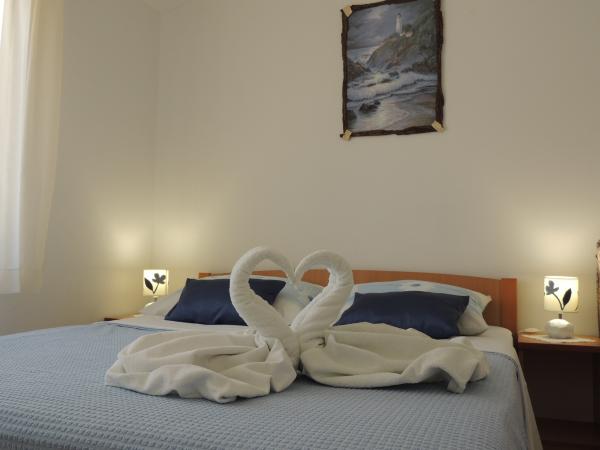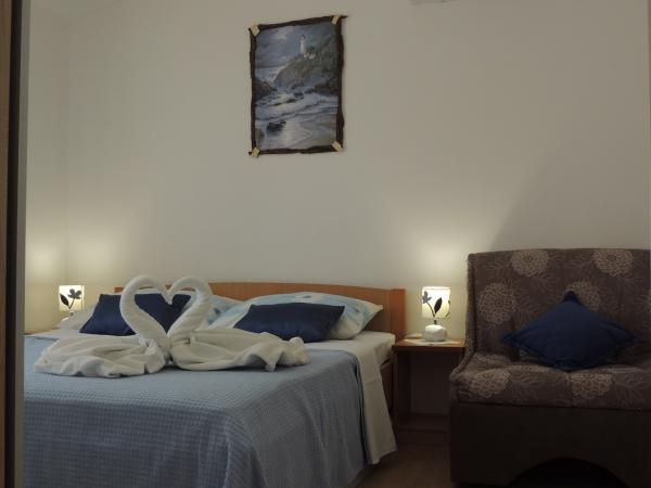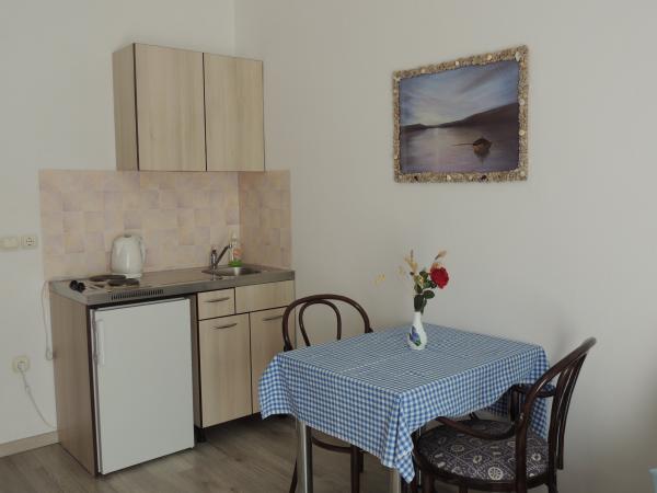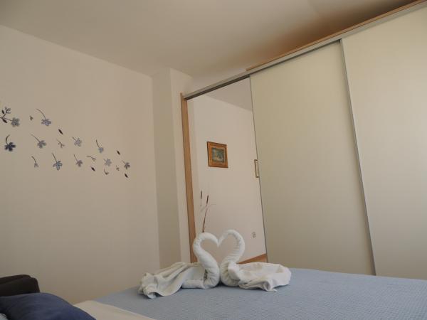 Lejligheden ligger i en god beliggenhed inden for gåafstand. Du får en parkeringsbillet til bilen. Værelset var rent og godt udstyret med AC, var et stort skab, en comfy seng. Det bedste er dog ejeren Marija en meget stor og varm kone, der fører hendes pension med kærlighed og entusiasme. Hun taler godt tysk, og er altid der for spørgsmål Vi blev varmt velkommen med kaffe tart vand snaps og fik en god afskedsgave. Bare super. Også den tilhørende restaurant er top god mad øverste personale. Tak, Susanna Uwe Tyson