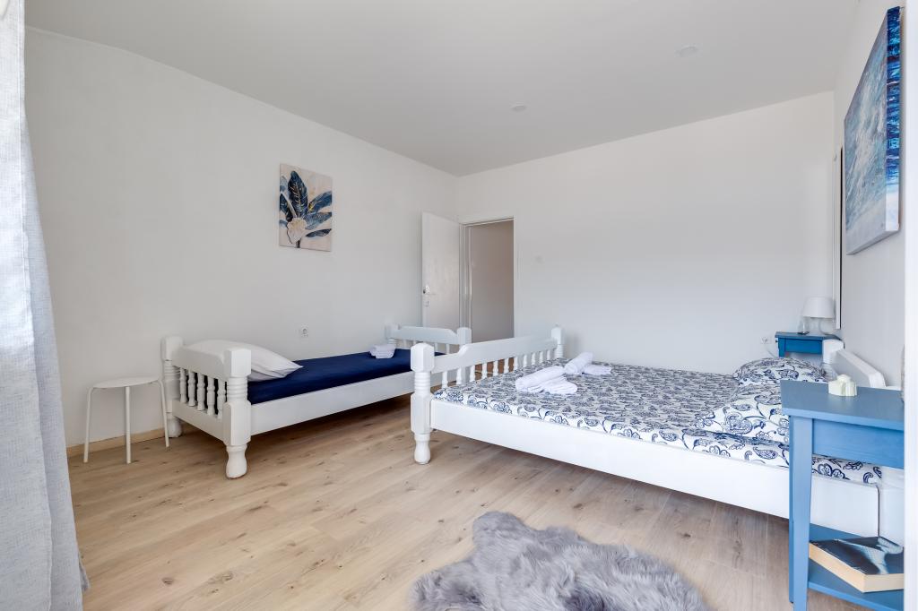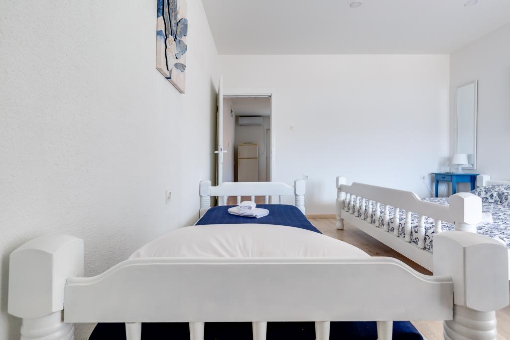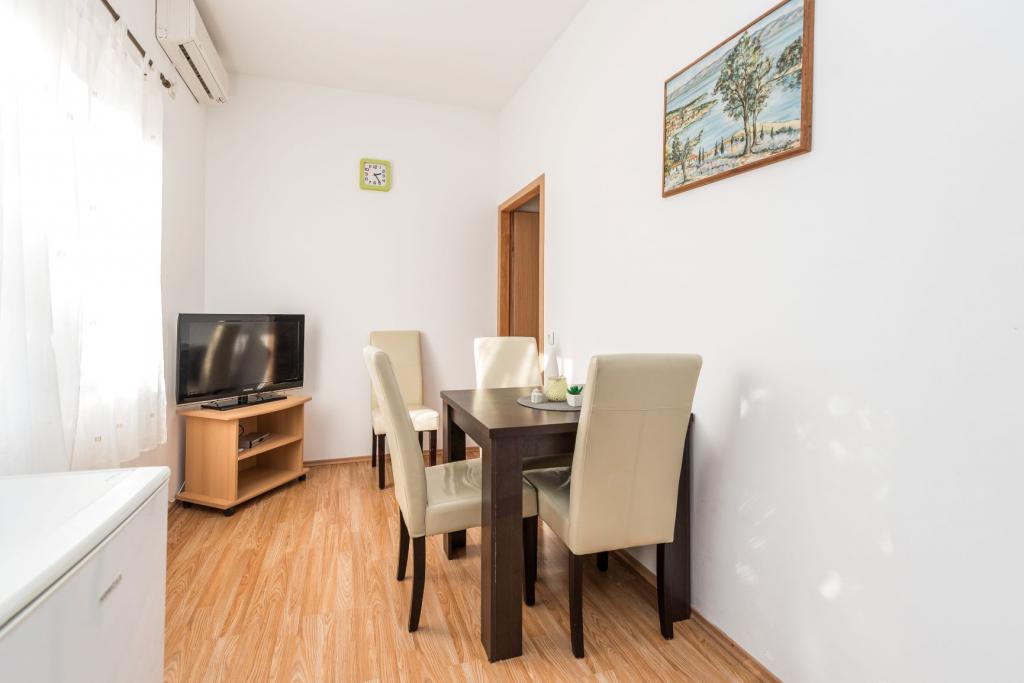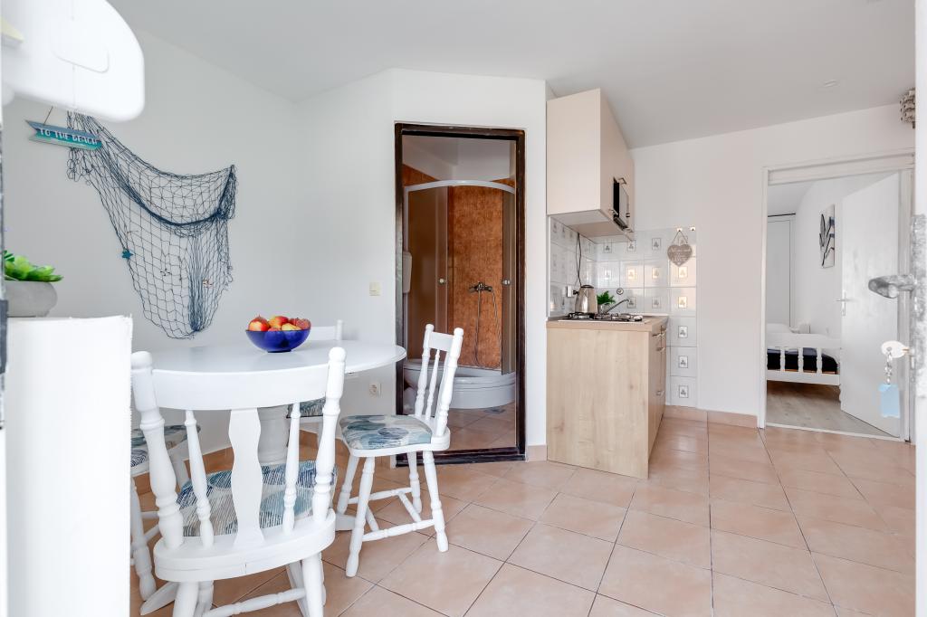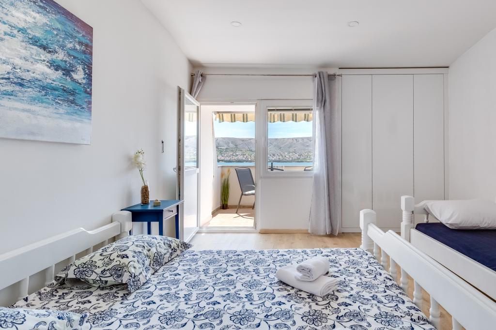 . Lejligheder Filip er beliggende i byen Pag. Lejligheden er udstyret med tre senge i soveværelset, dobbeltseng og enkeltseng og mulighed for at bruge holderen. Arrangement sikrer dig uafbrudt rum: soveværelse, stue med køkken, badeværelse med bruser og privat terrasse med udsigt over havet. Lejlighederne er udstyret med service og bestik, håndklæder og sengetøj til hver seng, køleskab med fryser, komfur, TV og aircondition, som giver dig en rolig søvn i de varme sommeraftener. Hvis du ønsker en rolig familie ferie vil du føle dig hjemme. Hvis du ønsker at tilbringe din ferie med en gruppe venner, lejligheder Filip er det rigtige sted for dig Nærhed fjorde Zrce er 20 minutter i bil eller offentlig transport. Stranden er omkring 100-150 km strækninger langs kysten. Hver lejlighed har en parkeringsplads. Og din vært er altid usluzi.Cijena på anmodning.