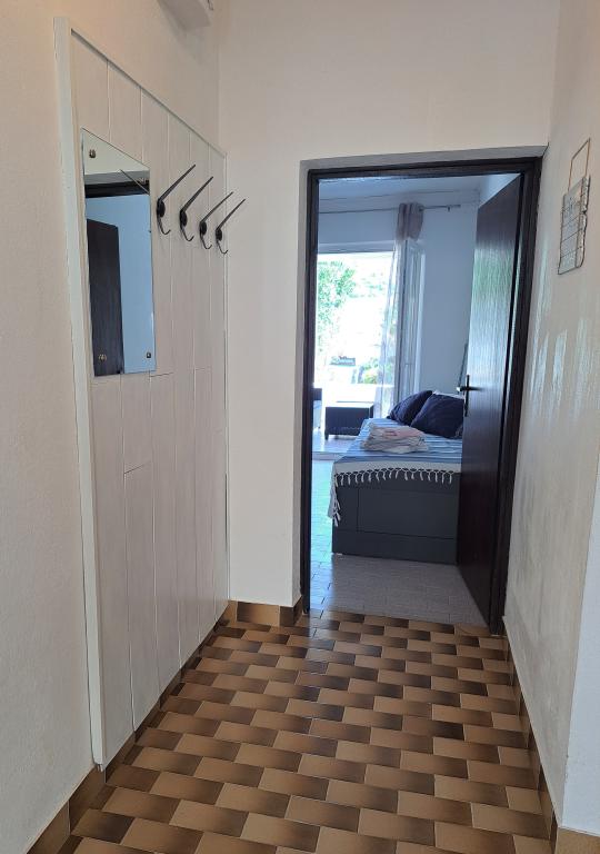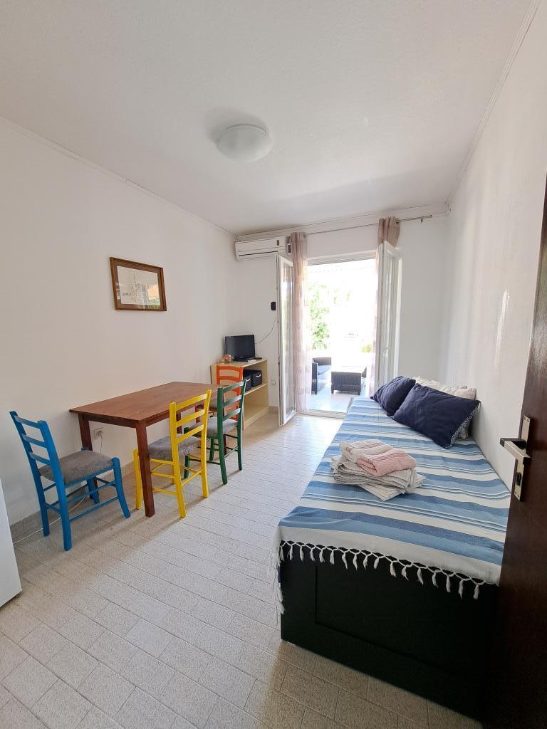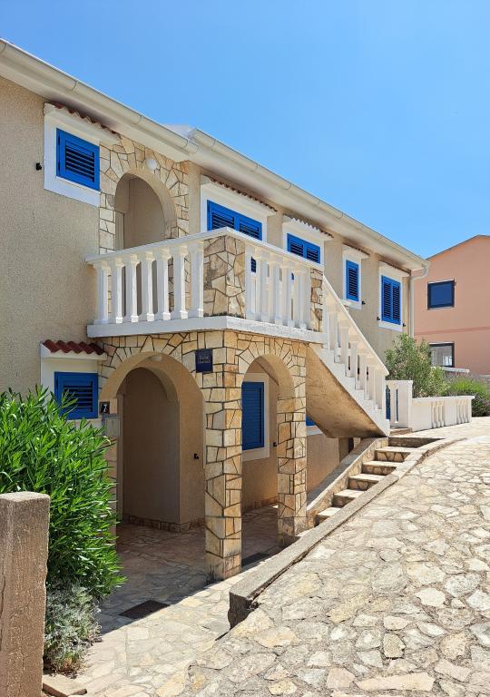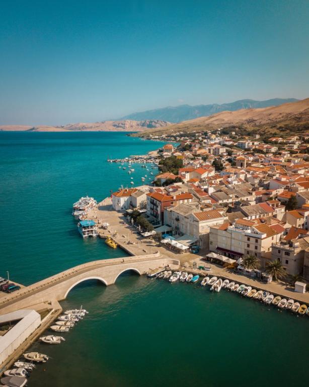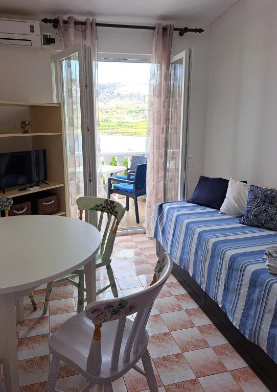 Lejligheden ligger på øen Pag, i den rolige og fredfyldte Ljubačka-gade 7, i et familiehus. Den består af et soveværelse, stue, badeværelse, køkken og entré. Stuen har en udtræksseng (når den er slået ud, svarer den til en dobbeltseng på 160x200). Der er gratis parkering foran huset. Pags centrum og den offentlige bystrand Prosika ligger meget tæt på (ca. 900 m eller 10 minutters gang), mens der ligger to små strande 100 m fra huset.