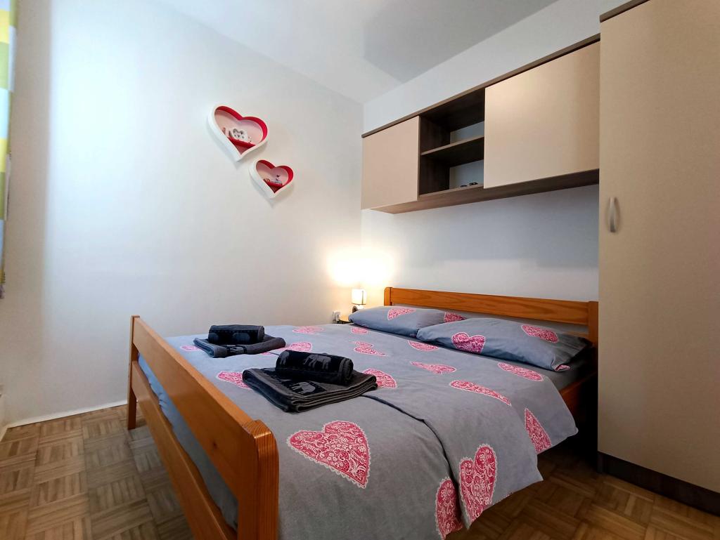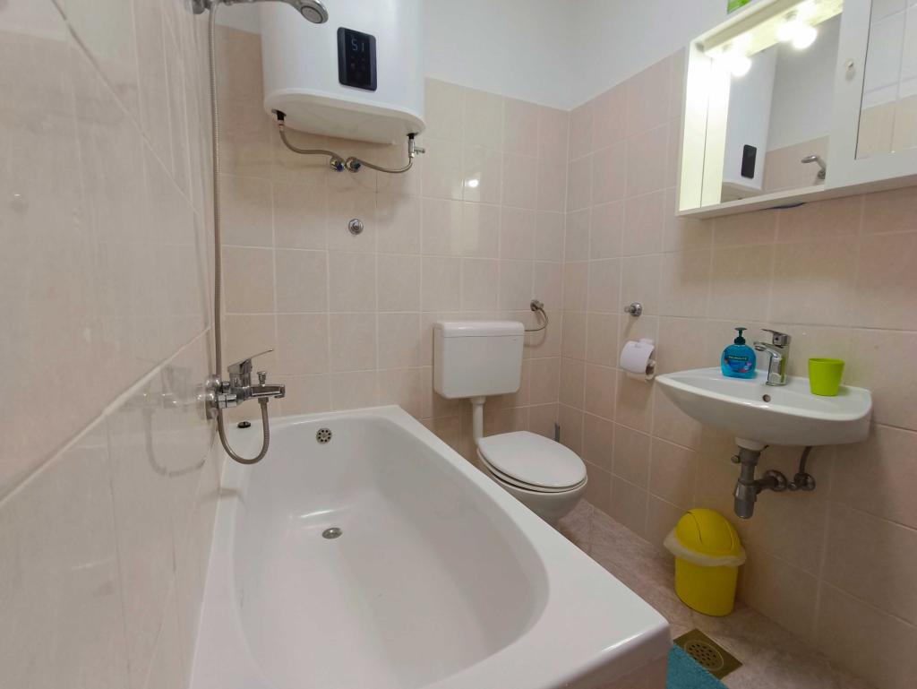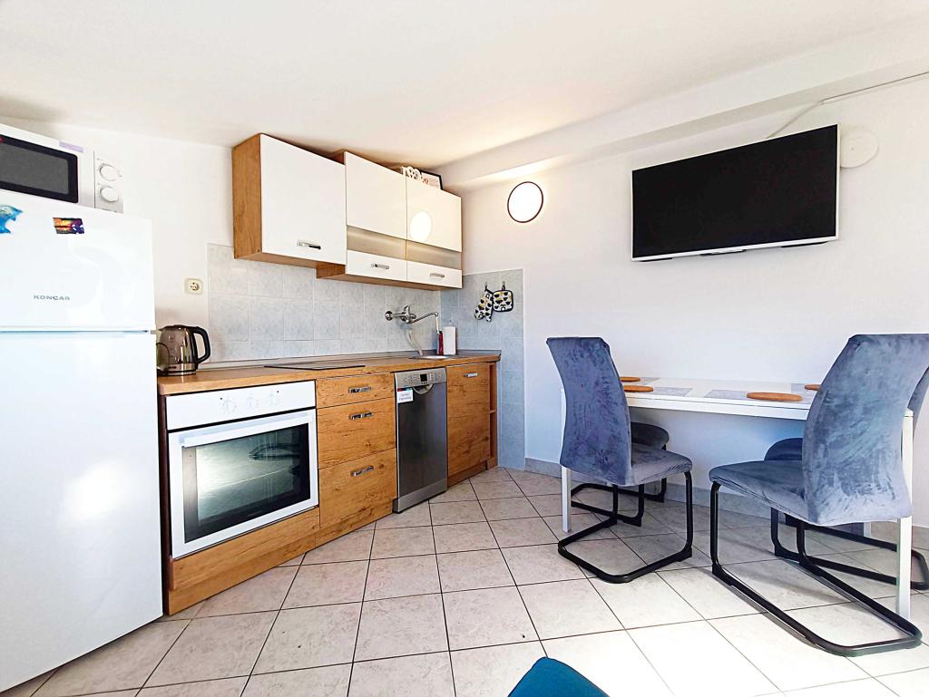 Velkommen til Apartments Harmonija – dit ideelle sted for en ferie på øen Pag i byen Pag! Vores hus har en fantastisk beliggenhed: kun 250 m fra byens hovedstrand Prosika og mindre end 10 minutters gang til centrum, hvor restauranter, caféer og charmerende gader i den gamle bydel venter på dig. Vi tilbyder tre moderne indrettede lejligheder: - APP1 med balkon og havudsigt - APP2 med privat have til ro og afslapning - APP3 med panoramaudsigt over havet, byen og Velebit. Alle lejligheder har et fuldt udstyret køkken, Wi-Fi, tv med Netflix, sengelinned og håndklæder. Gæsterne har adgang til en gårdhave med gasgrill og sikker parkering foran huset. Der er adskillige skjulte strande i nærheden – perfekt til en aktiv ferie eller fredelig nydelse. Hvorfor vælge Apartments Harmonija? - Fremragende beliggenhed nær stranden og centrum - Venlige værter og en behagelig atmosfære - Fuldt udstyret til en ubekymret ferie - Ideel for familier, par og rejsende, der søger fred