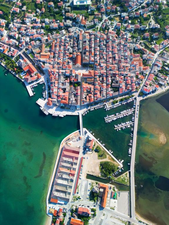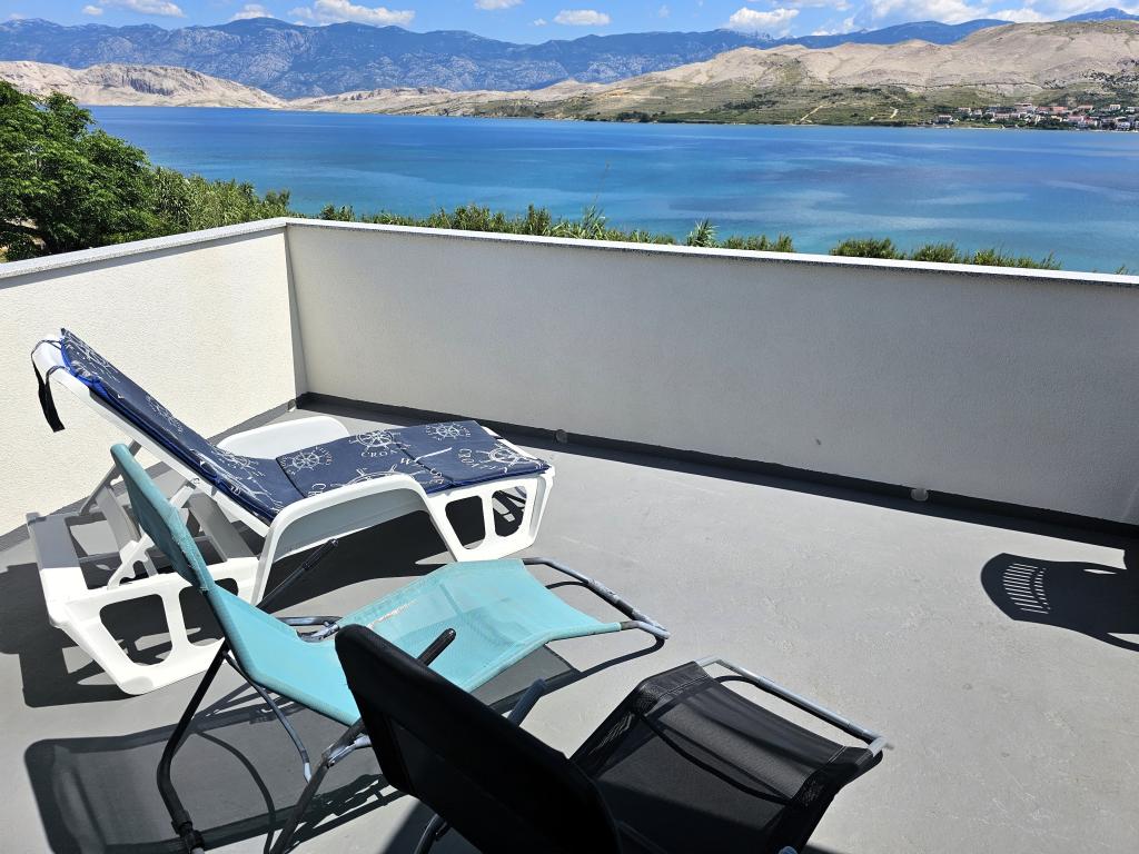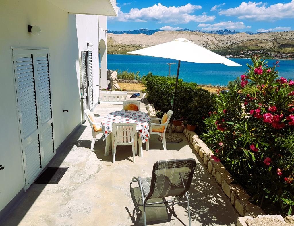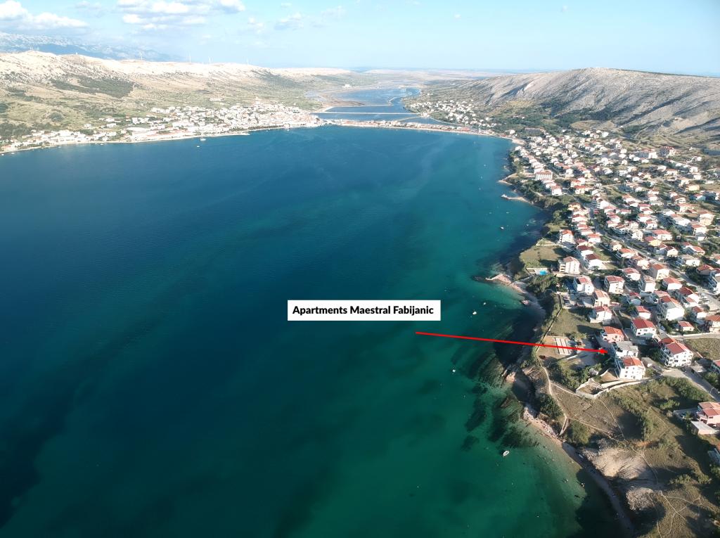 Lejligheder Maestral Fabijanić, første række til havet med tre strande inden for 50 - 150 m. Beliggende i en rolig del af Pag, cirka 2 km fra byens centrum. Indkvartering i vores bygning (525m2 have og 1000m2 parkering) består af moderne og veludstyrede lejligheder designet til at give maksimal komfort og praktisk. Hver lejlighed er smagfuldt indrettet, komfortable møbler og en række faciliteter, der sikrer et behageligt ophold. Uanset om du rejser med familie, venner eller som et par, har vi den perfekte lejlighed, der vil opfylde dine behov. Vores lejligheder er rummelige og har faciliteter såsom aircondition, LED-tv med satellitprogrammer med gratis WIFI (50 Mbit), fuldt udstyrede køkkener og private badeværelser. Lejlighederne har store terrasser med en smuk udsigt over Adriaterhavet, byen Pag, Velebit-bjerget, så du kan vågne op til den beroligende lyd fra bølgerne og nyde maleriske solnedgange fra din egen altan eller terrasse. Vi glæder os til din ankomst!