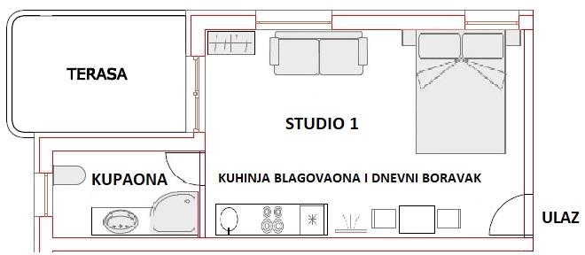 Studiet er rent og ryddeligt. Alt, hvad jeg havde brug for i køkkenet, var i udstyret. Meget søde værter. Det er tæt på havet og centrum af Pag for at tage ud om aftenen. Studiet skal være et 2-værelses studie, men hvis nogen skal med et barn, kan det også bookes uden problemer. Jeg vil varmt anbefale.