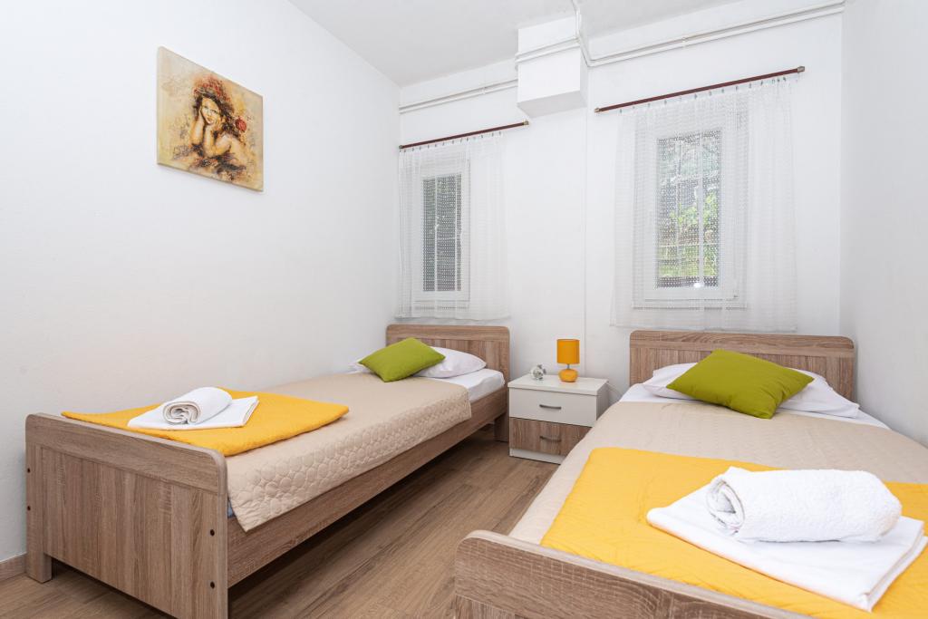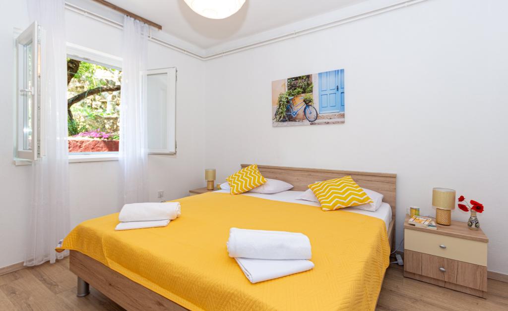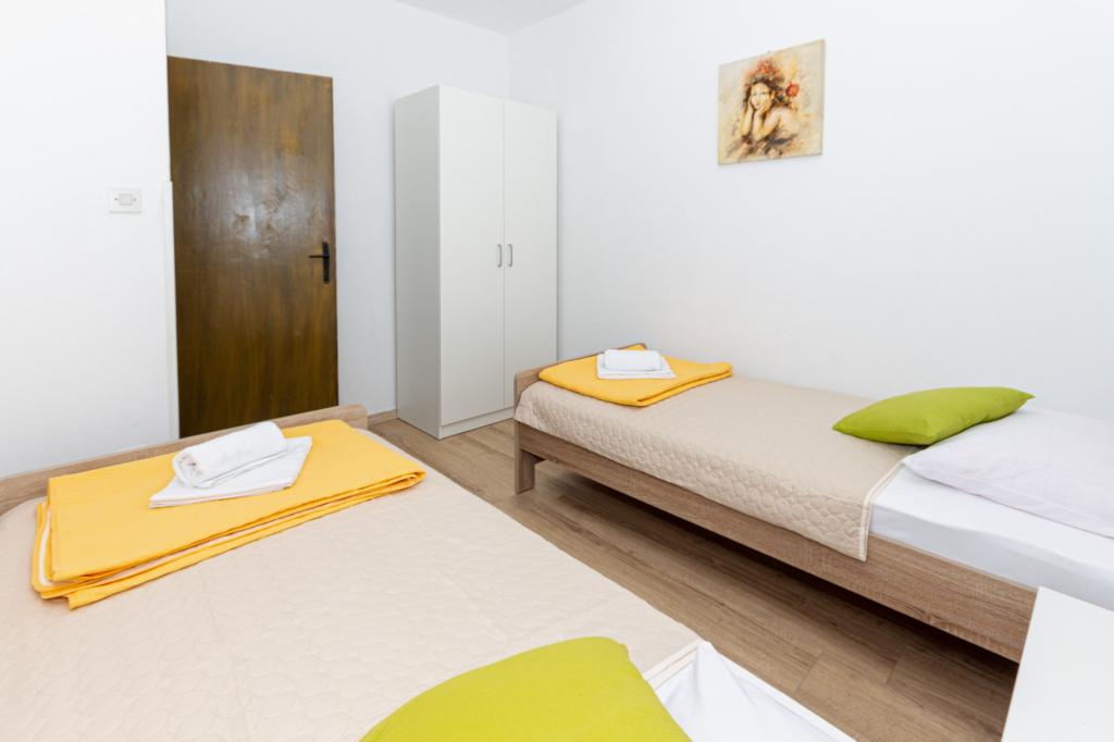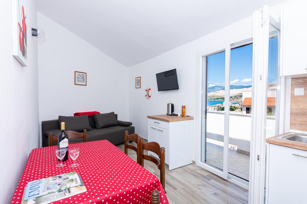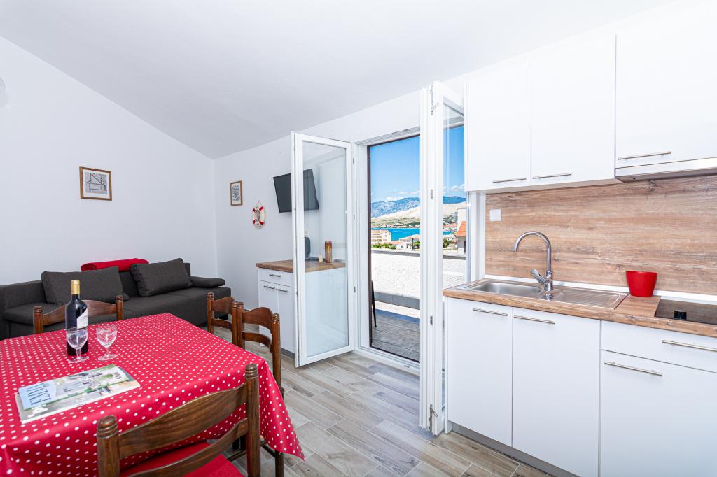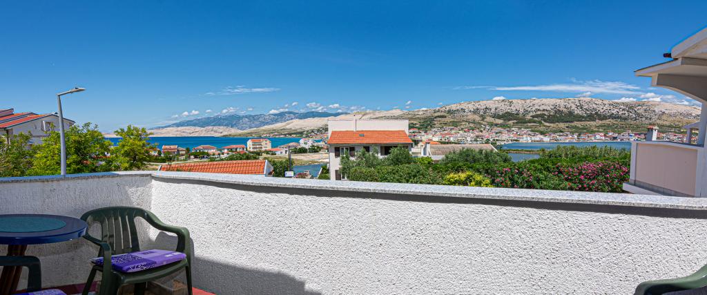 Lejlighederne er beliggende i byen Pag i Lokunja-området, kun 200 meter fra havet og 300 meter fra hovedstranden. Det tager mindre end 10 minutters let gang til byens centrum, hvor der er butikker, posthus, caféer og barer. Kun 25 km fra Novalja-Zrć og 50 km fra Zadar. Dette hus har 4 boligenheder. Ejerne af huset (Ivo og Jelica) bor i en af dem og står til din rådighed. Den ene lejlighed ligger på husets første sal og har balkon med en smuk udsigt over havet. Der er yderligere to lejligheder med terrasser i husets stueetage. Huset har stor gårdhave, have og sikret parkeringsplads, samt mulighed for grill. Velkomst.