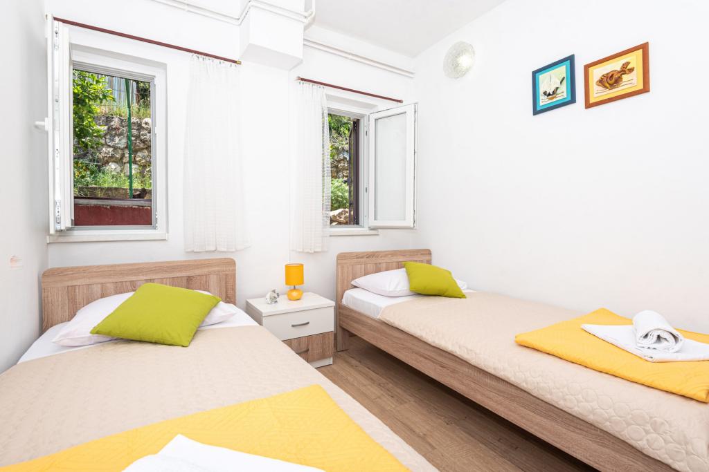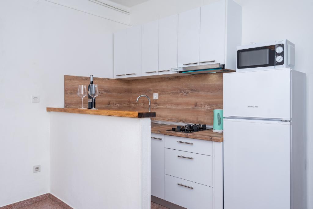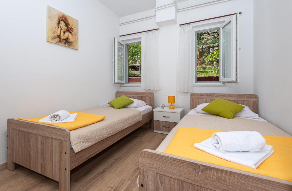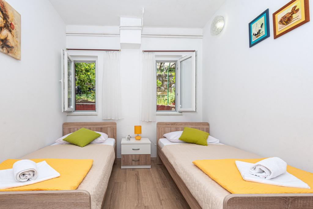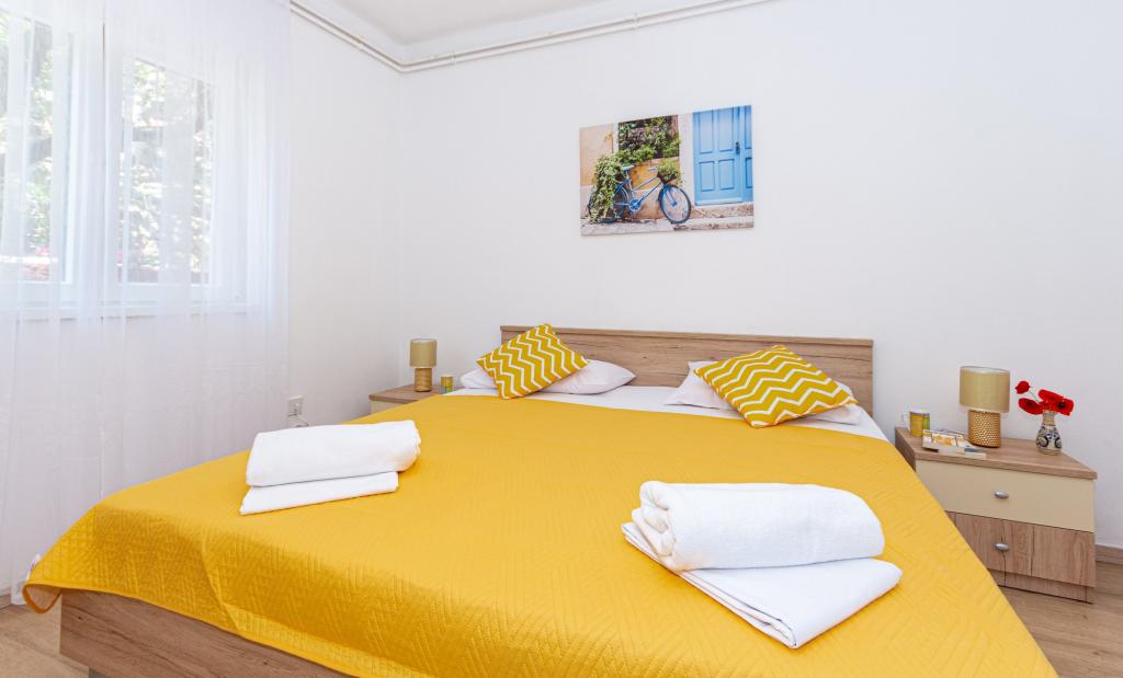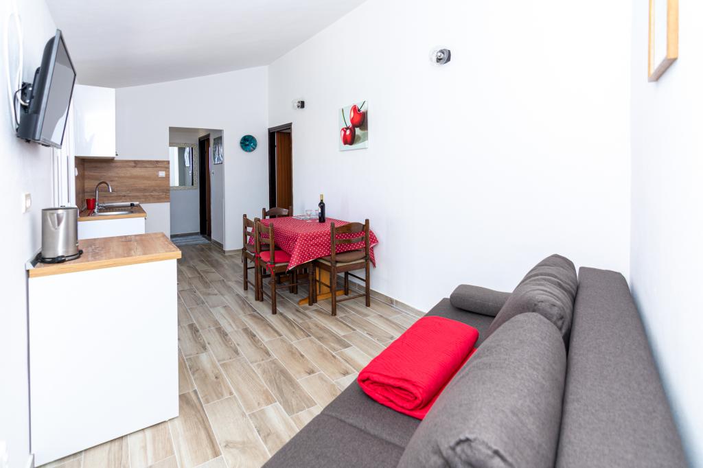 Lejlighederne er beliggende i byen Pag i Lokunja-området, kun 200 meter fra havet og 300 meter fra hovedstranden. Det tager mindre end 10 minutters let gang til byens centrum, hvor der er butikker, posthus, caféer og barer. Kun 25 km fra Novalja-Zrć og 50 km fra Zadar. Dette hus har 4 boligenheder. Ejerne af huset (Ivo og Jelica) bor i en af dem og står til din rådighed. Den ene lejlighed ligger på husets første sal og har balkon med en smuk udsigt over havet. Der er yderligere to lejligheder med terrasser i husets stueetage. Huset har stor gårdhave, have og sikret parkeringsplads, samt mulighed for grill. Velkomst.