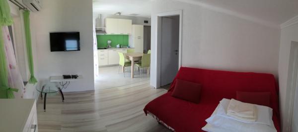 Vi fik lov til at tilbringe to meget dejlige uger i Vila Luna. Vores lejlighed havde alt hvad du har brug for, og hvis der manglede noget, hjalp Marin med det samme. Den bedste udlejer vi kender indtil videre. Meget venlige og hjælpsomme. Vores lejlighed havde en vidunderlig terrasse med udsigt over havet. Vi tilbragte meget hyggelige aftener med vores venner. Stranden kan nås på få meter, men det er bestemt en sten- og stenstrand. Der er en lille snackbar og et bageri i nærheden. Det tager cirka 20 minutter at gå til den smukke by Pag, som bestemt er værd at se. Mange tak
