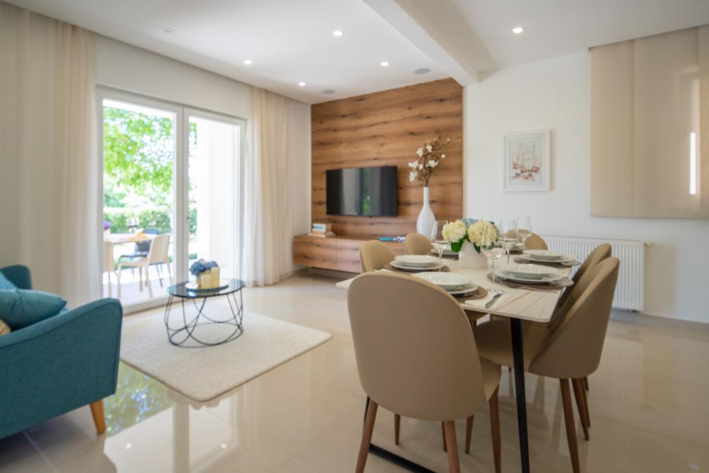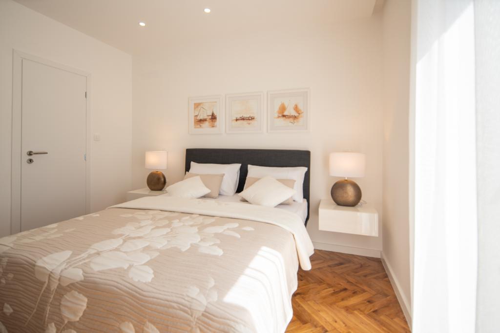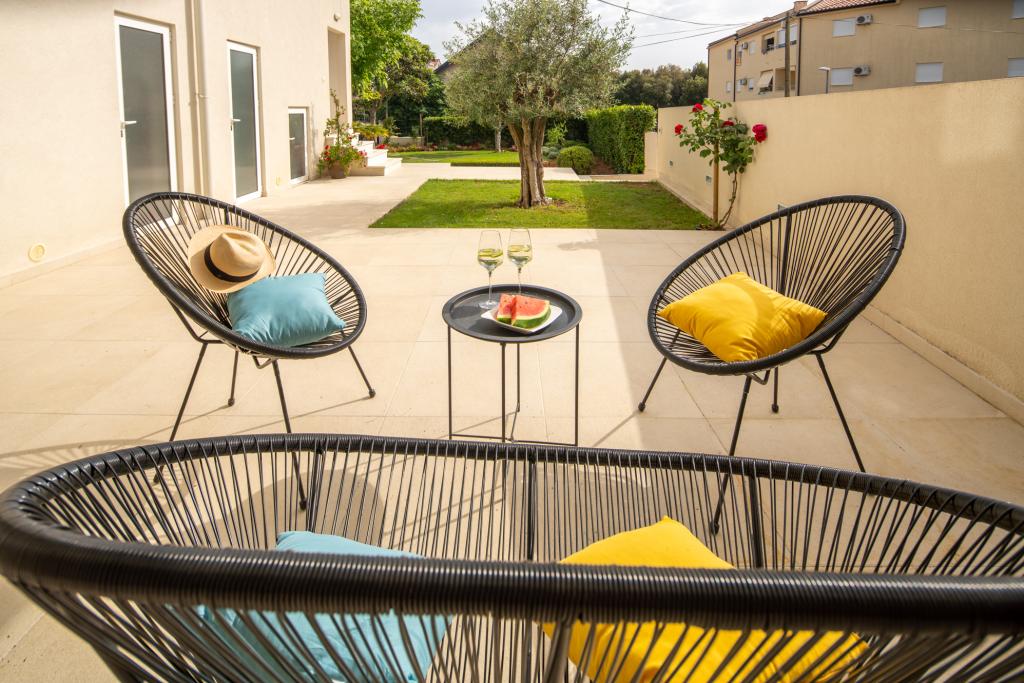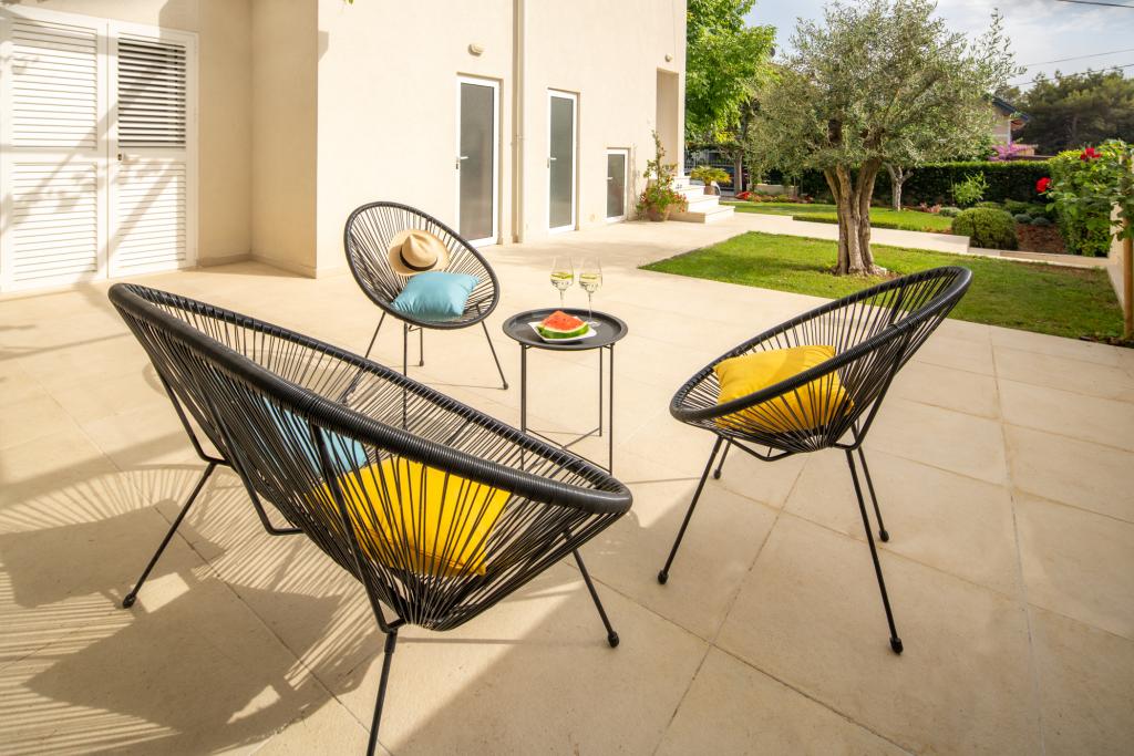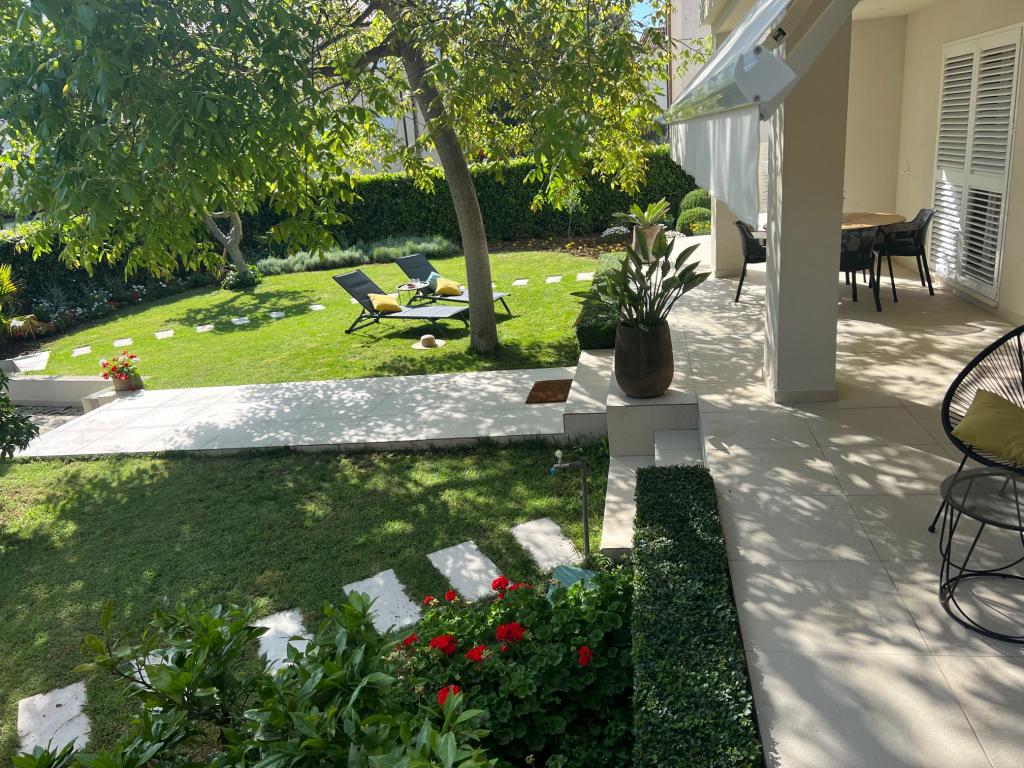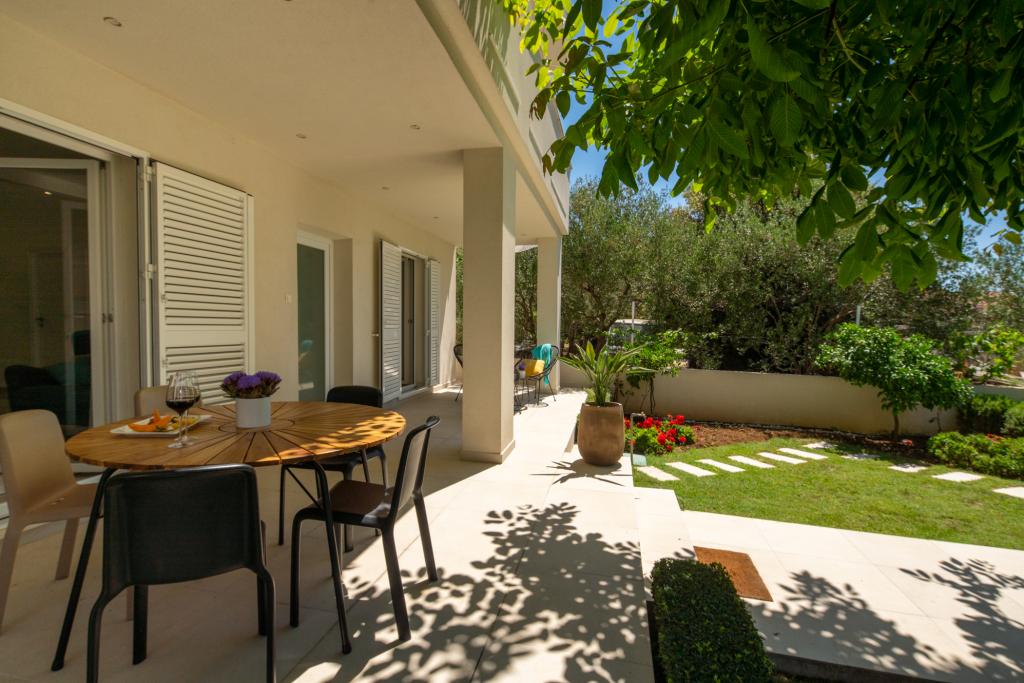 Den moderne og moderne indrettede lejlighed GARDEN ligger i bygningens stueetage og tilbyder sine gæster, som også er bygningens eneste gæster, en ferie i en oase af grønt med stor have og grill. Lejligheden har 3 soveværelser med dobbeltseng, hvor hvert værelse har eget badeværelse og tv, fuldt udstyret køkken, stue og to terrasser. Det er 10 minutter væk fra byens centrum og strande til fods. Lejligheden er et ideelt udgangspunkt for at udforske de rige muligheder, som destinationen tilbyder.