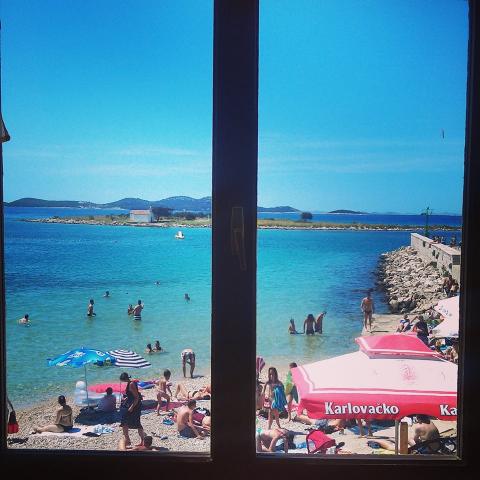 Lejligheden ligger på hovedstranden Janica, første række til havet med havudsigt og øen Sv. Justina. Ved hånden er der en lille bistro hvor du kan spise morgenmad mens du nyder havudsigten. Lejligheden har 2 soveværelser, 1 badeværelse, køkken og stue med ekstra seng. En terrasse med et bord, du kan nyde mens du spiser og ser havet, stranden. Lejligheden ligger på første sal. I Pakoštane har vi et fiskemarked, et par butikker, en vingård, et grøntsags- og grøntsagsmarked, souvenirbutik, kajakker, beachvolleyball, sejlads, bådture til nationalparken Kornati, vandland for børn, børnebåd. På stedet har vi forskellige strande, sandede, stenrige, stenrige og beton.