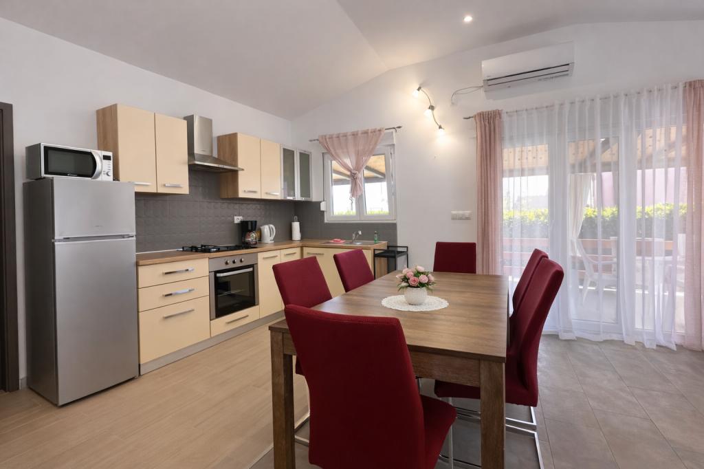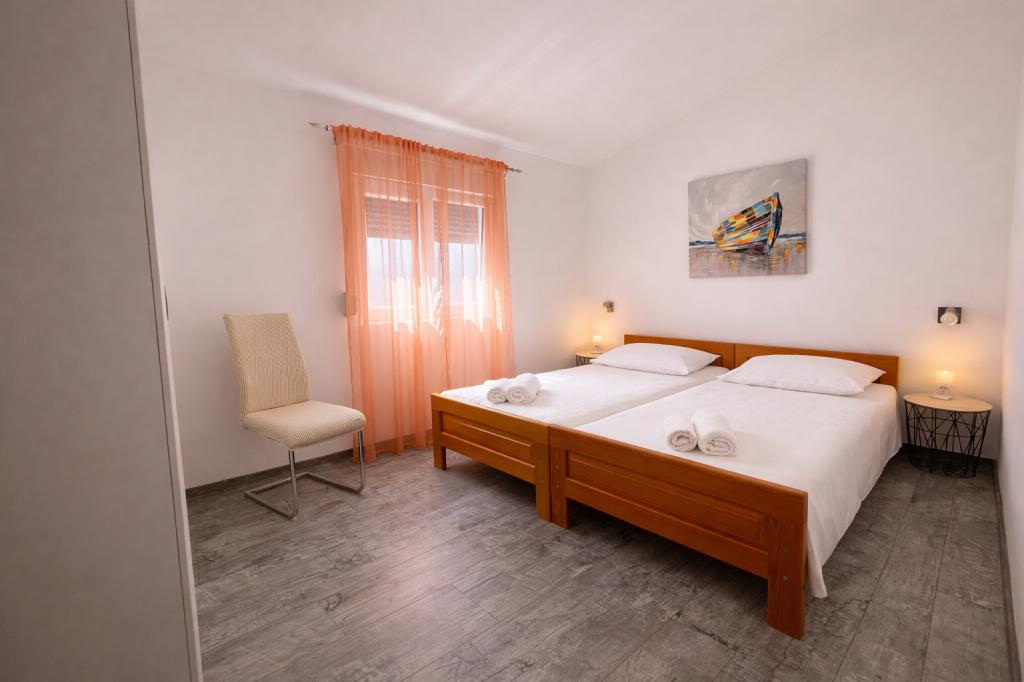 Indkvarteringen har plads til op til 5 gæster og har to soveværelser med dobbeltsenge (160x200) og en ekstra seng til et barn op til 12 år i stuen. Gæsterne har adgang til sengelinned og håndklæder, et badeværelse med bruser og vaskemaskine, en hyggelig stue med tv og et fuldt udstyret køkken (køleskab, komfur, ovn, opvaskemaskine, elkedel og service). Den overdækkede terrasse er ideel til morgenkaffe eller afslapning, og gæsterne har adgang til en privat parkeringsplads. Haven er indhegnet. Indkvarteringen ligger 800-900 m fra den nærmeste strand, mens butikken og bageriet kun ligger 100 m væk. Indkvarteringen er let tilgængelig fra motorvejsafkørslen nær Pakoštane, cirka 15 minutters kørsel. Velkommen! :) Brug venligst kontaktformularen til alle spørgsmål! TAK :) Prislisten for sæsonen 2026 er blevet opdateret!