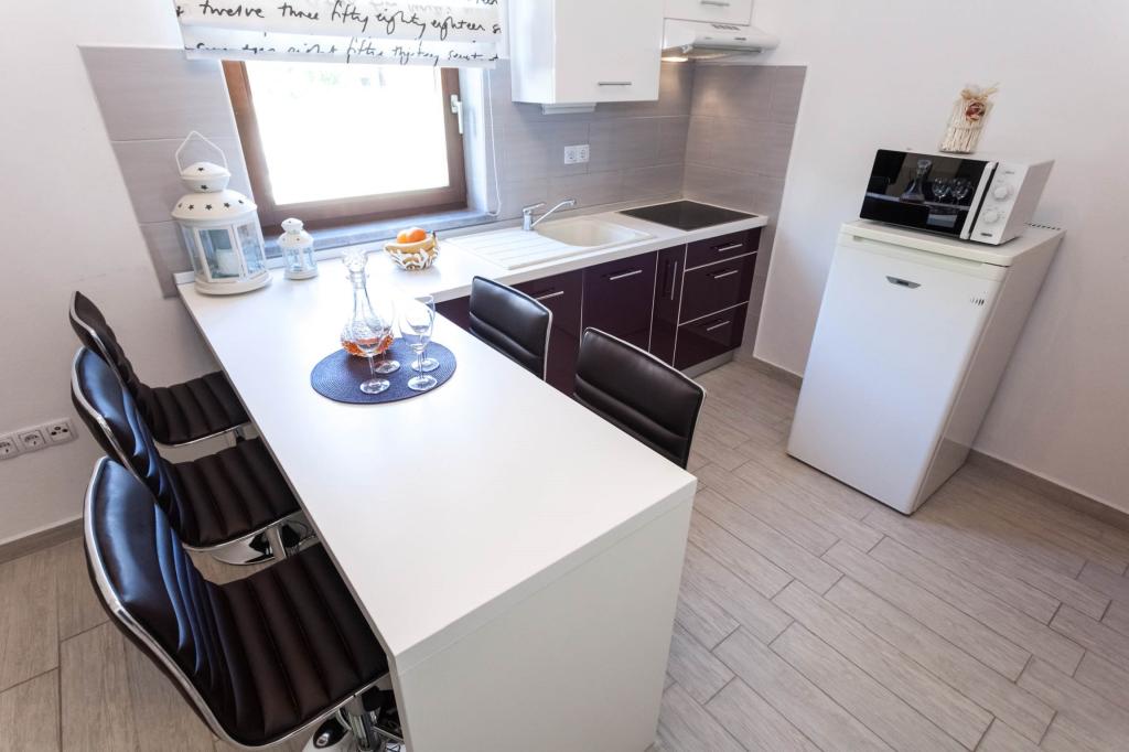 Velkommen til vores lejligheder med havudsigt! Vores lejlighed, værelse og studiolejlighed ligger på anden sal i huset, kun 5 minutters gang fra den første strand og bymidten - en ideel beliggenhed for en behagelig og afslappende ferie. Alle boligenheder har en smuk havudsigt og er udstyret med satellit-tv og gratis internet, så du kan holde dig forbundet under din ferie. Uanset om du vælger en lejlighed, et værelse eller et studiolejlighed, kan du forvente komfort og en varm velkomst. Ankomst er mulig efter kl. 14.00, og afrejse er senest kl. 10.00. Vi ser frem til din ankomst og ønsker dig et uforglemmeligt ophold!