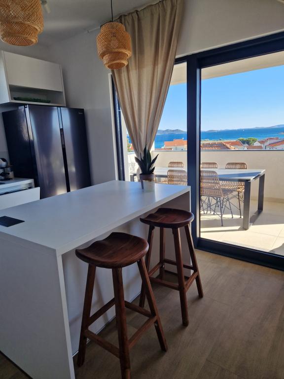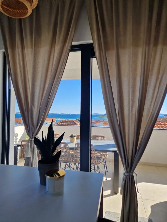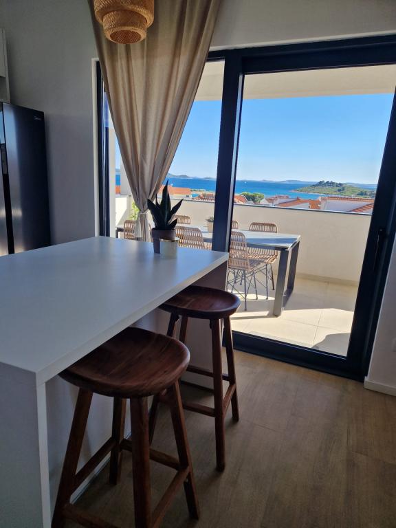 Nyindrettede lejligheder beliggende i et roligt område af Pakoštan med udsigt over havet og tre smukke øer. Faciliteterne ligger 3 minutters gang fra centrum og 4 minutter fra Janice strand , posthuset, en klinik og apotek er også tæt på.