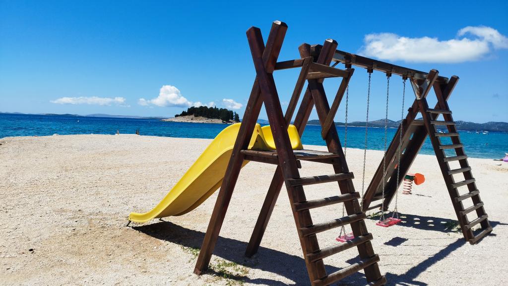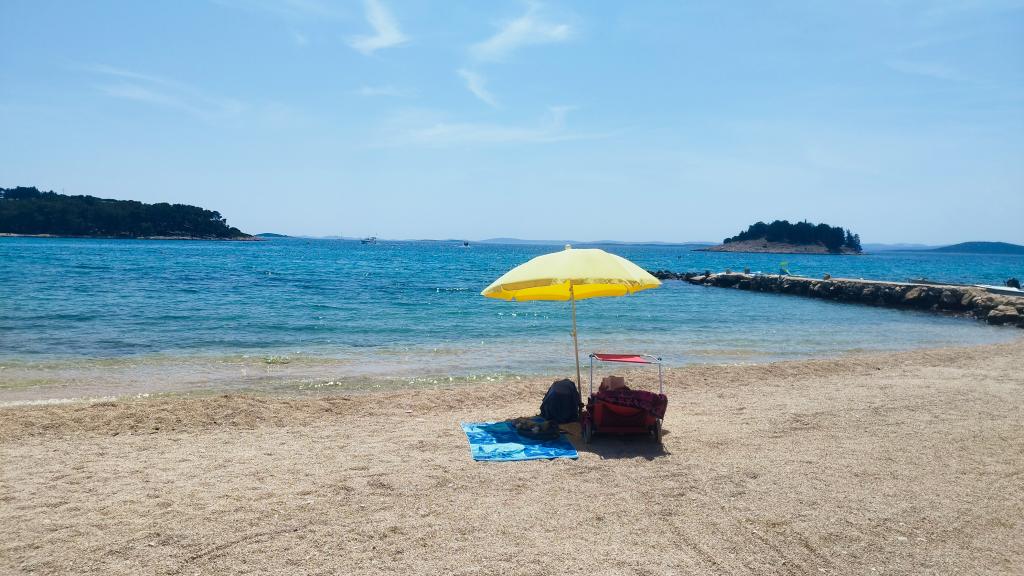 Fuldt udstyrede lejligheder i en rolig del af byen, beliggende 3 minutter fra Punta-stranden og cirka 10 minutter fra Pakoštane centrum. I gården er der en grill og et stort bord til socialt samvær, cykler og SUP til brug. Til de yngste er der legetøj, en sandkasse, et tekøkken, forskellige køretøjer... alt hvad du behøver for en behagelig og afslappende ferie.