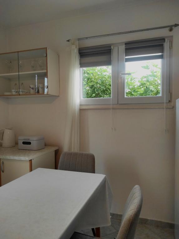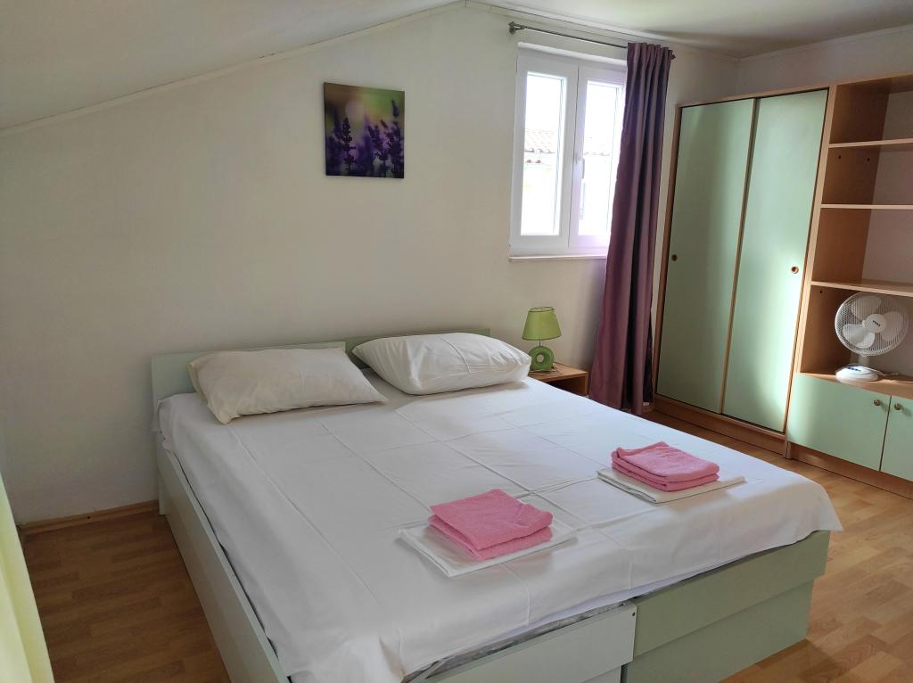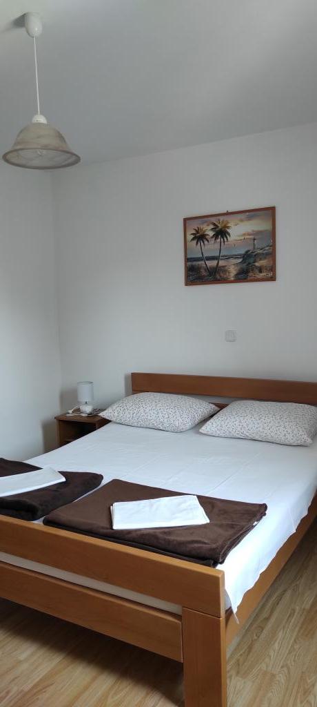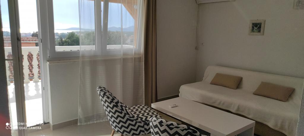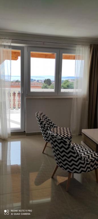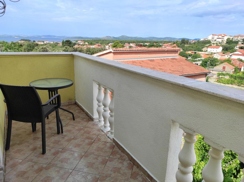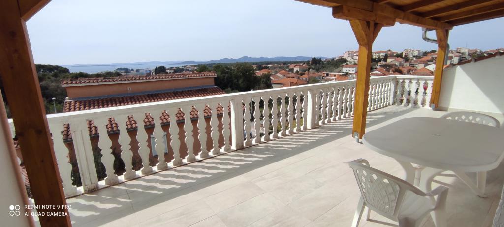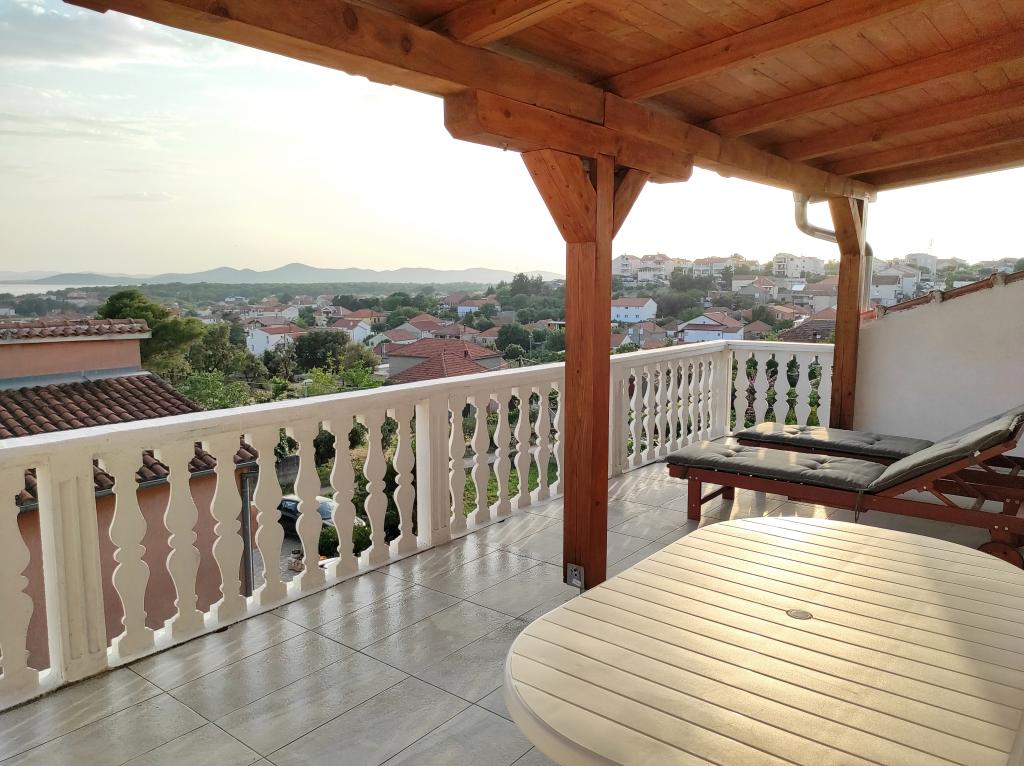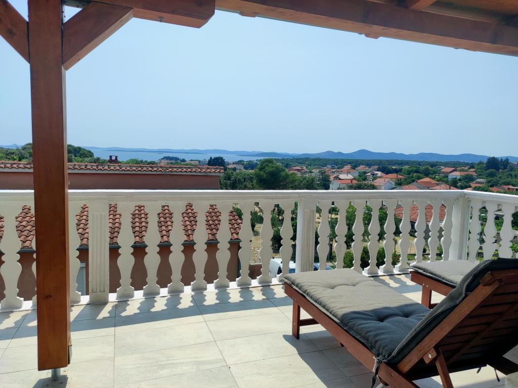 Familiehuset, som lejligheden ligger i, ligger i en afstand af 600m fra havet, dvs. fra centrum af byen. Det ligger 500 m fra Vrana-søen og er omgivet af grønne områder og kan give enhver gæst en fredelig og behagelig ferie. Lejligheden er 100 m2 stor. Den består af 2 soveværelser med dobbeltsenge, en stue med en udtræksseng, et køkken, et badeværelse og en stor terrasse på 30 m2. Den ligger på anden sal i huset og har en separat indgang. Lejligheden byder på en smuk udsigt over havet, byen, søen og det fjerne Velebit. Gæsterne kan benytte uderummet i stueetagen samt grillen. Parkeringspladser er placeret i gården. Kontakt os venligst via e-mail, for på den måde kan vi give dig al information hurtigt og detaljeret.