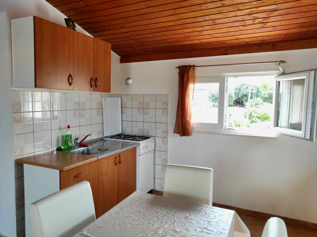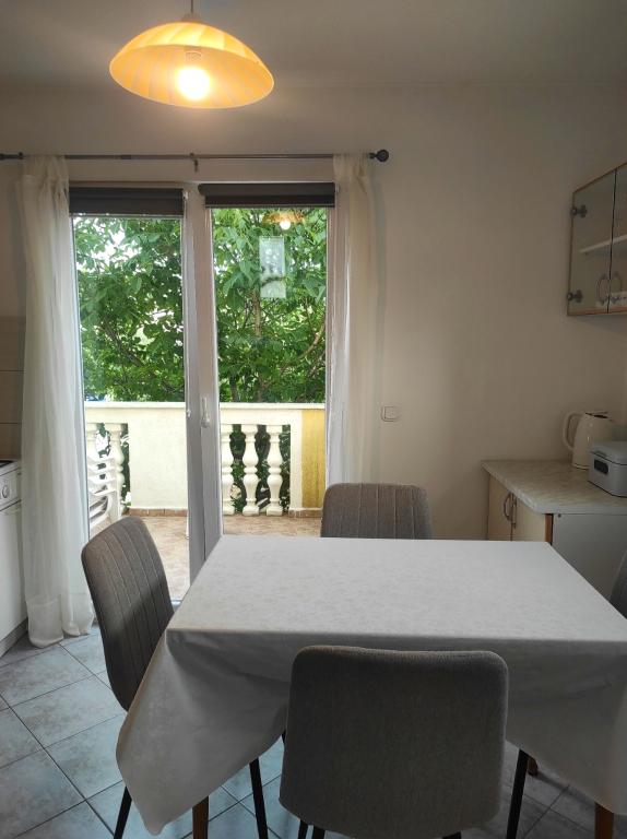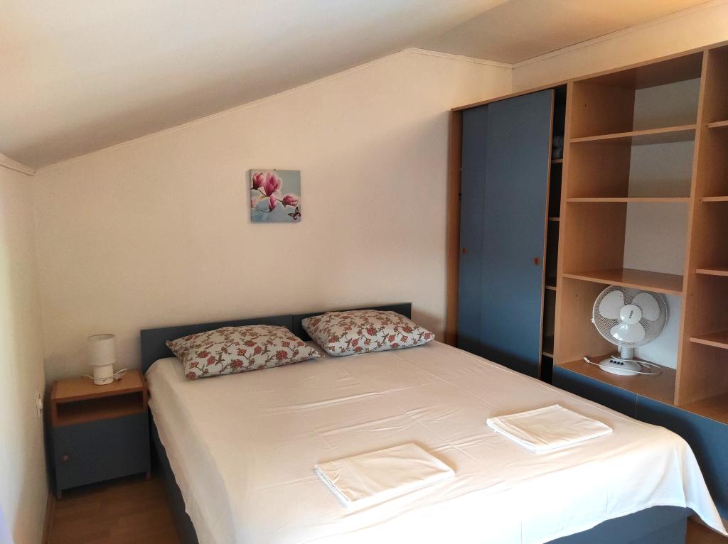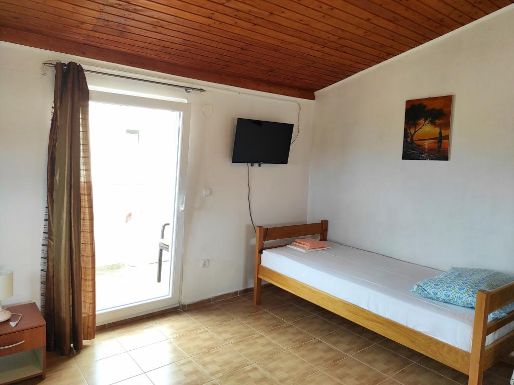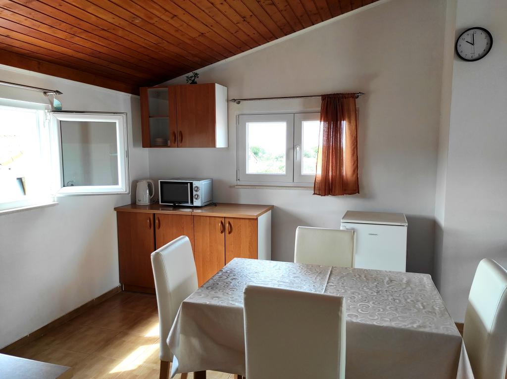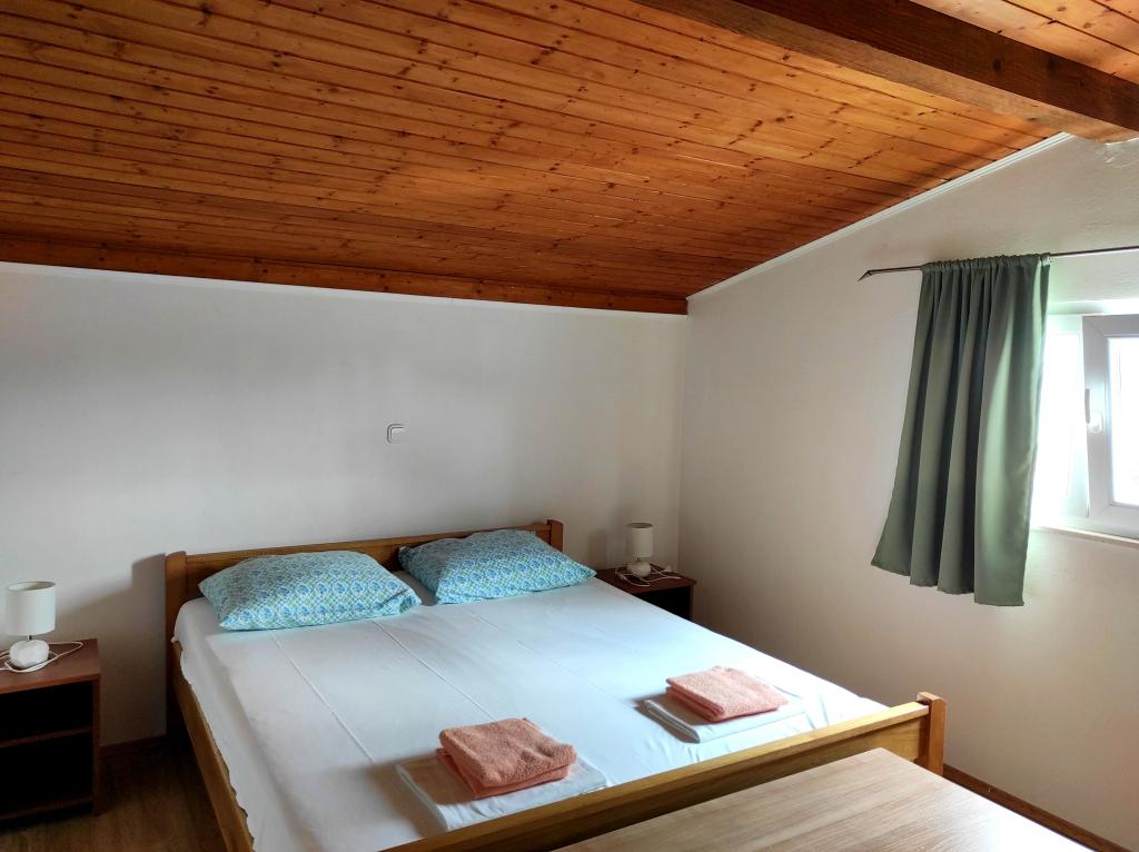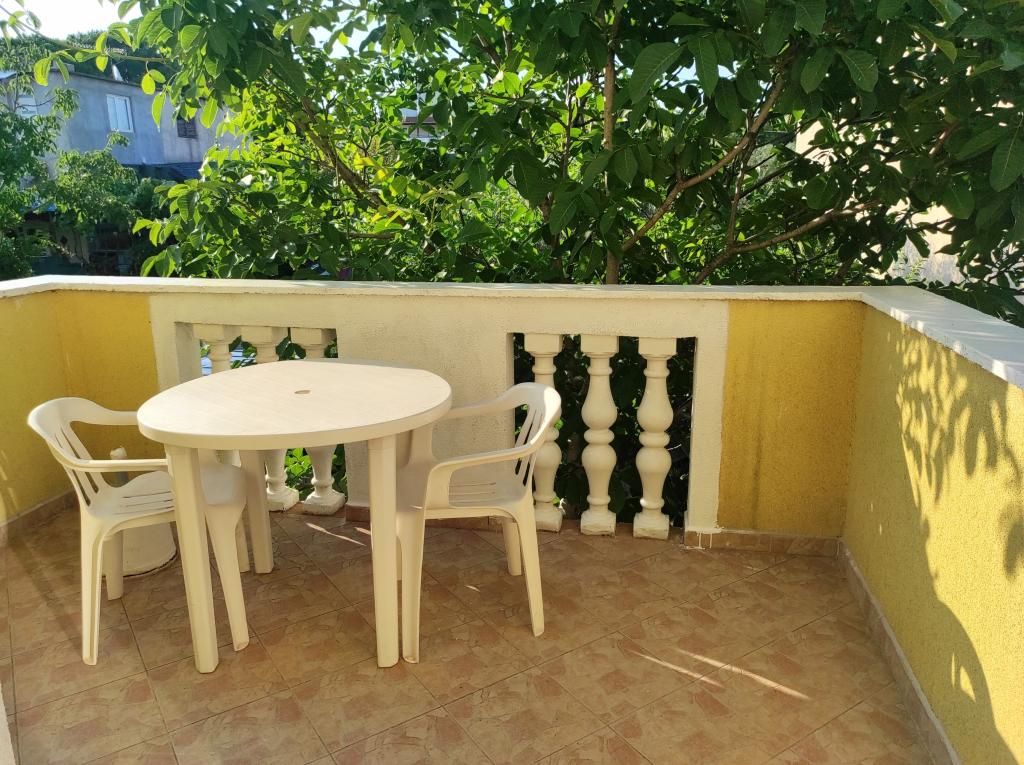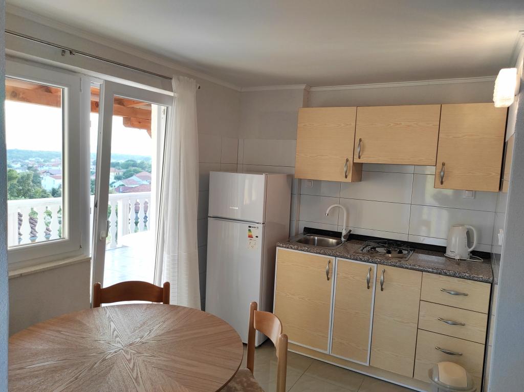 Familiehuset, som lejligheden ligger i, ligger i en afstand af 600m fra havet, dvs. fra centrum af byen. Det ligger 500 m fra Vrana-søen og er omgivet af grønne områder og kan give enhver gæst en fredelig og behagelig ferie. Lejligheden er 100 m2 stor. Den består af 2 soveværelser med dobbeltsenge, en stue med en udtræksseng, et køkken, et badeværelse og en stor terrasse på 30 m2. Den ligger på anden sal i huset og har en separat indgang. Lejligheden byder på en smuk udsigt over havet, byen, søen og det fjerne Velebit. Gæsterne kan benytte uderummet i stueetagen samt grillen. Parkeringspladser er placeret i gården. Kontakt os venligst via e-mail, for på den måde kan vi give dig al information hurtigt og detaljeret.