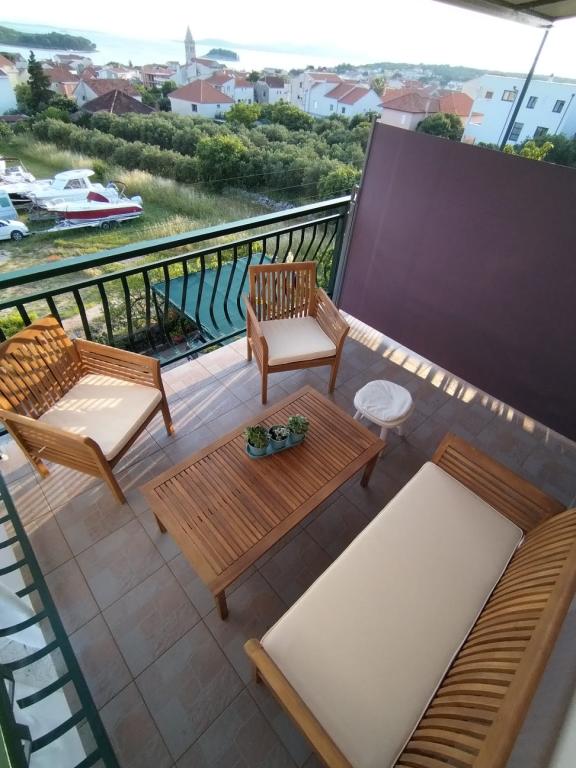 Turistskat er inkluderet i prisen.Smuk og rolig beliggenhed, meget tæt på stranden og centrum. Lejligheden er meget veludstyret og pænt, og den er pæn. Terrassen tilbyder en uforglemmelig og smuk udsigt over de omkringliggende øer, småøer og byen. Værterne er meget imødekommende og venlige, hvor man også kan købe nogle lokale produkter. Vi følte os meget godt tilpas, og vi kommer helt sikkert tilbage!