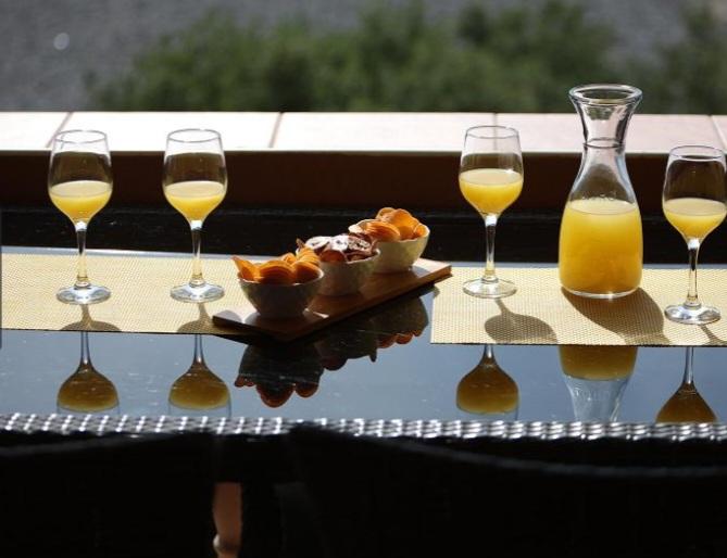 Vi tilbyder hjemmelavet olivenolie og brandy.