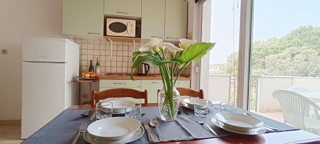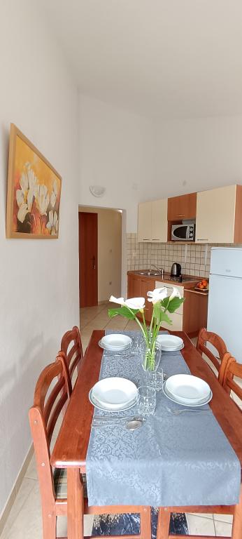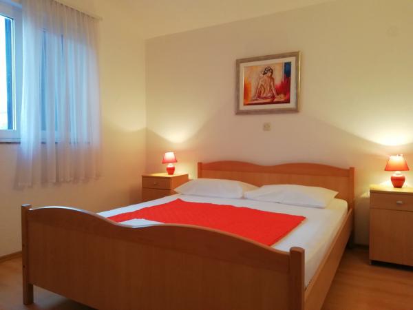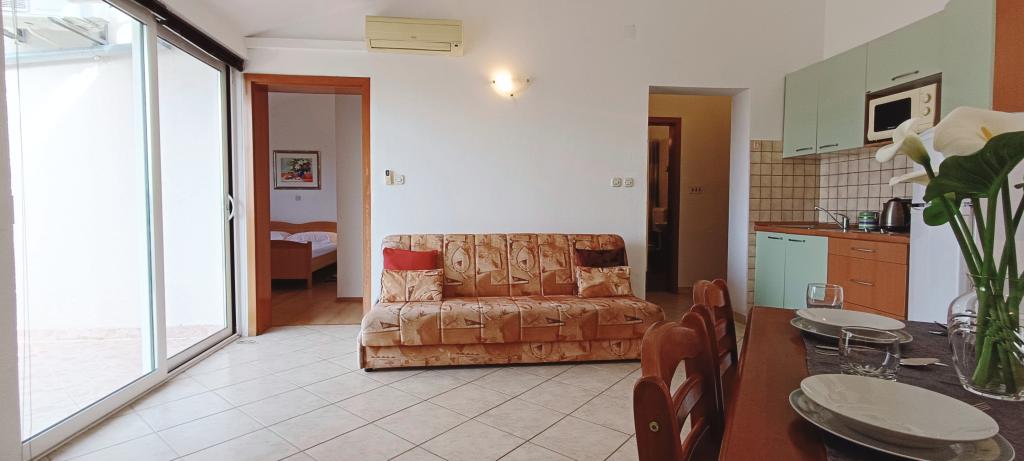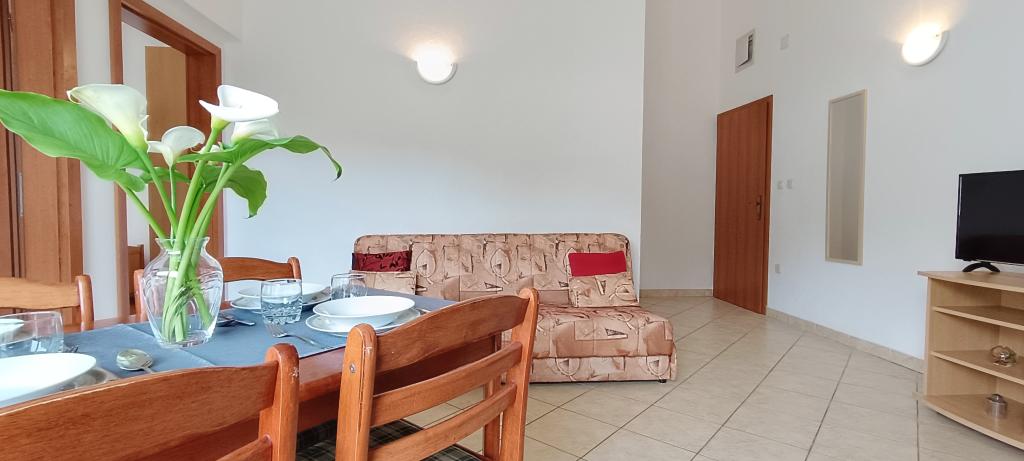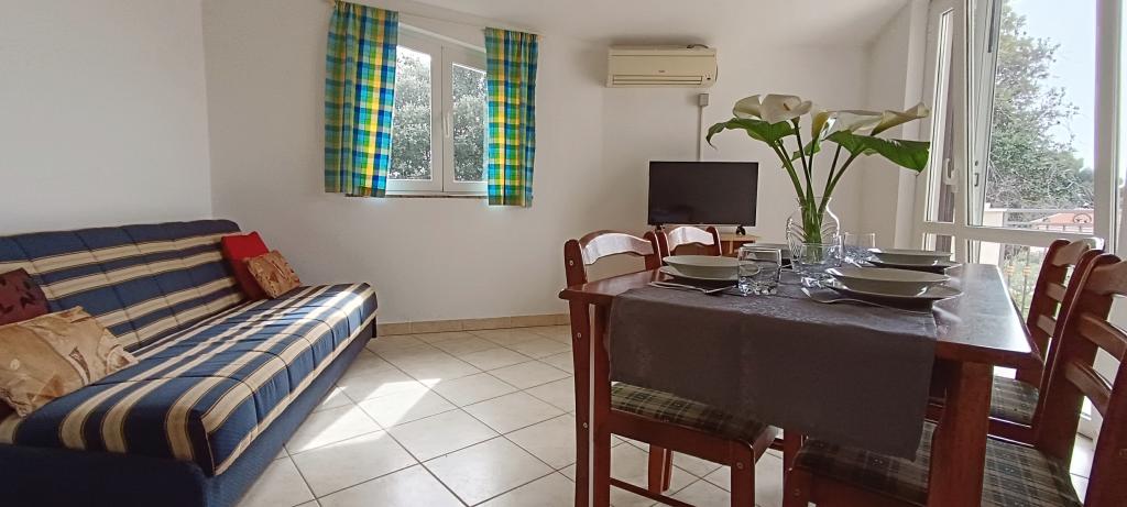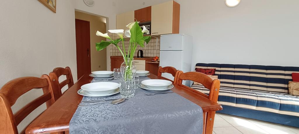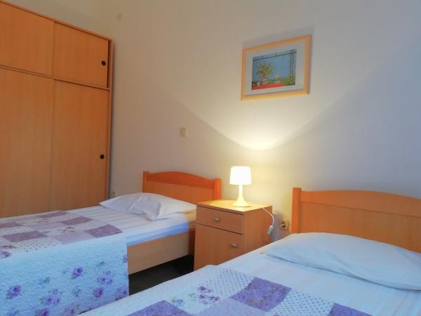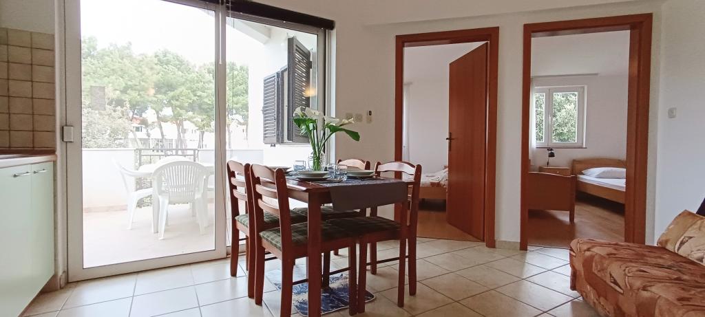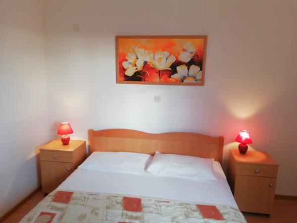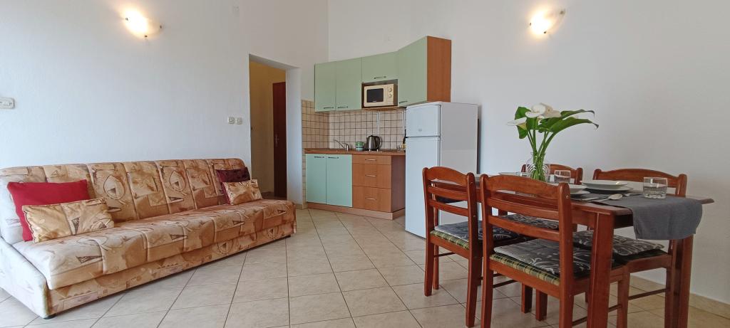 Moderne udstyret lejligheder i turistområdet Pakoštan. Lejlighederne ligger 5-10 minutters gang fra strandene og bymidten. Der er supermarked og sportspladser i nærheden af lejligheden Ejendommen er beliggende på et areal på 1600 m2 med anlagt gårdhave og parkeringspladser og grill til gæster. Alle lejligheder har sengelinned og håndklæder til gæster. Køkkenet er udstyret med alt nødvendigt køkkenudstyr. Der er et strygebræt i hovedsalen. Turistskat, aircondition og WiFi er inkluderet i prisen. Kæledyr er velkomne. Prisen for kæledyr er 5 Eur/Dag. Check ind fra kl. Check ud kl. 10.00.