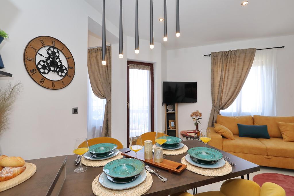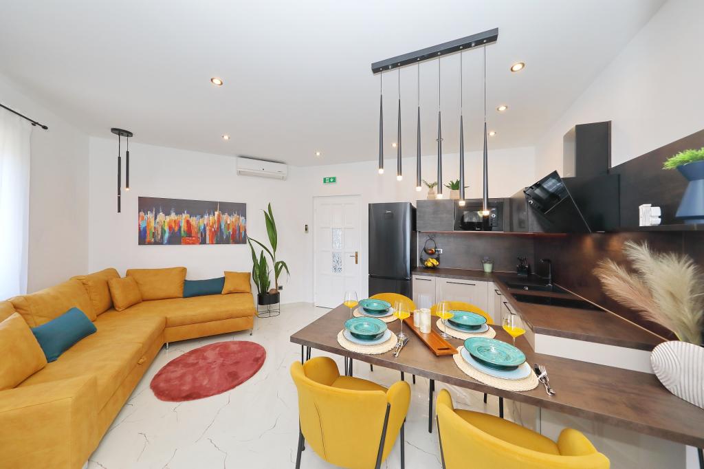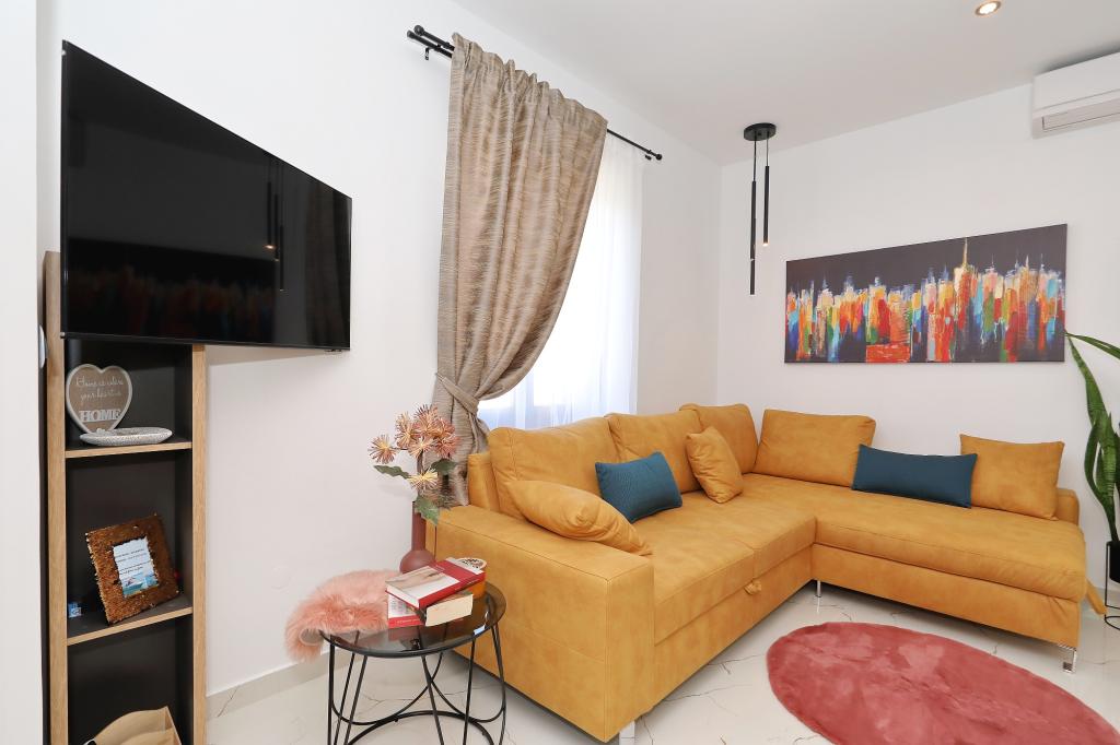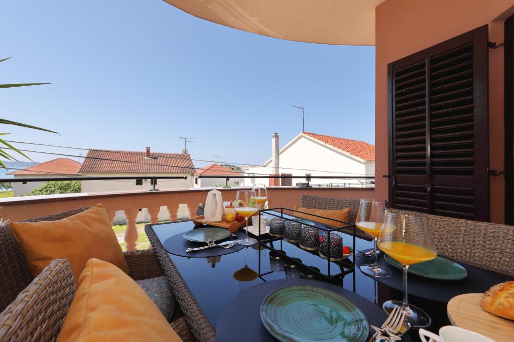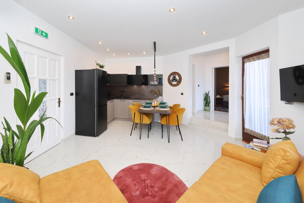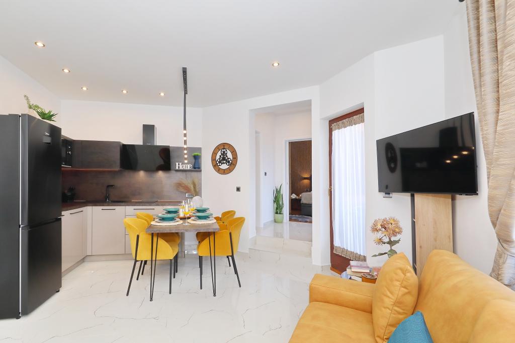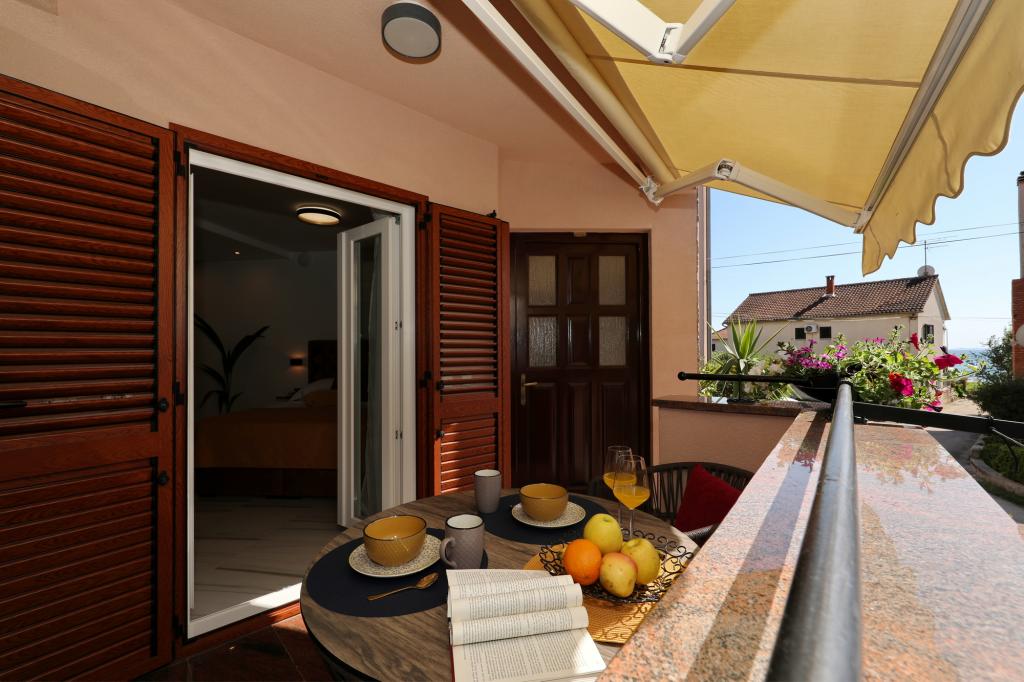 Lejlighed ved havet - første kategori. Vi nød virkelig vores ophold, vi følte os som hjemme, med en forskel, undtagen ved havet. Værterne er meget venlige, altid klar til alt hvad du behøver. Lejligheden var helt nyindrettet og renoveret, rummelig og luksuriøs og meget tæt på stranden, bare følg stien og du er der. Vi nød især børnene, for de havde stranden, underholdningen og værelset lige ved hånden. Parkering er i gården, lige foran ejendommen, og alt er meget tilgængeligt til fods (strand, butik rundt om hjørnet, bageri på tværs af gaden, legeplads synlig fra balkonen osv.). Internettet fungerede upåklageligt, så det er ikke et problem at arbejde hjemmefra (læs helligdage). Vi var en familie (2 plus 3 børn). Det var perfekt for os, og vi vil være tilbage til vores næste ferie.