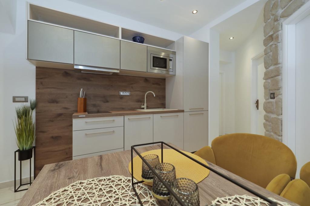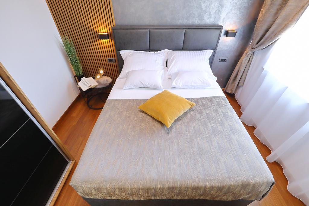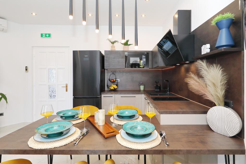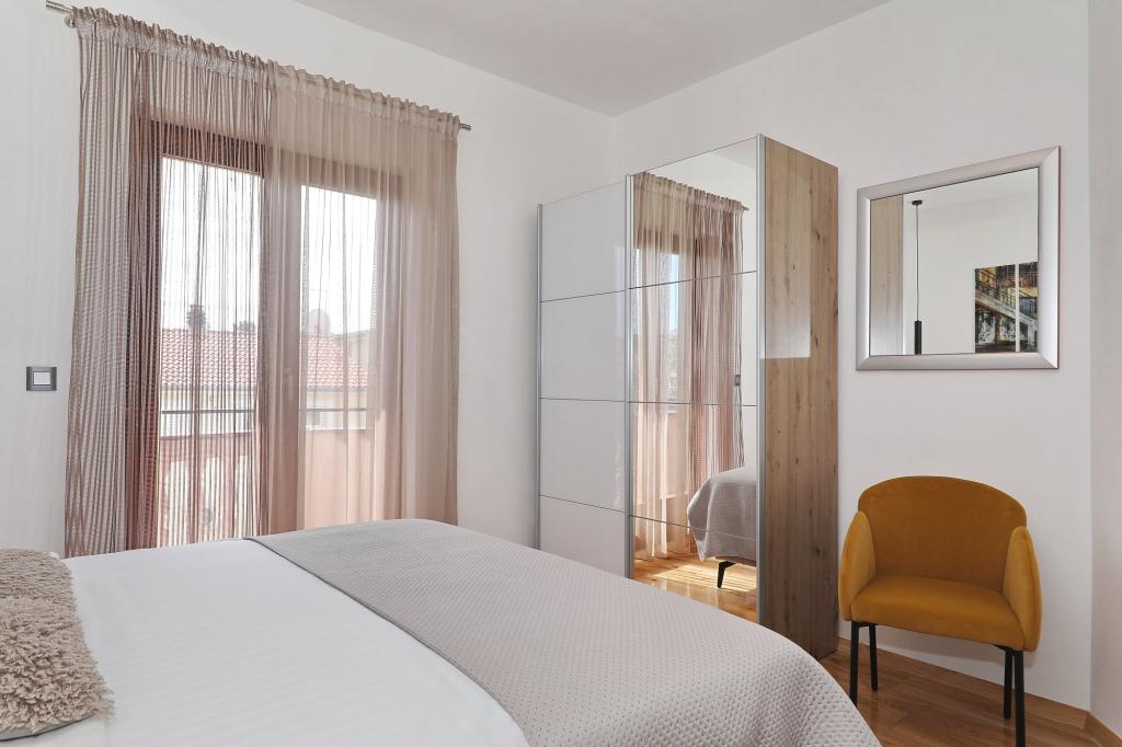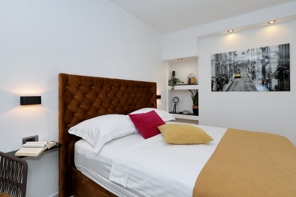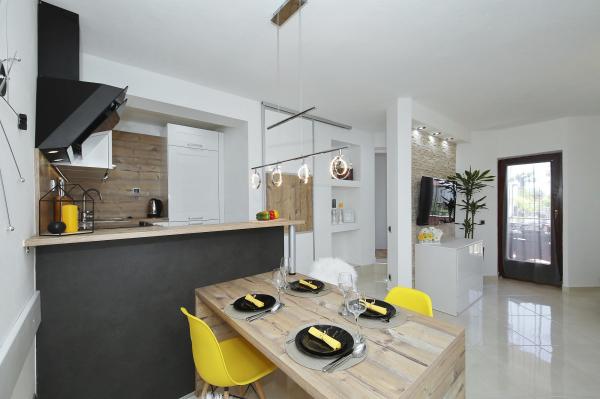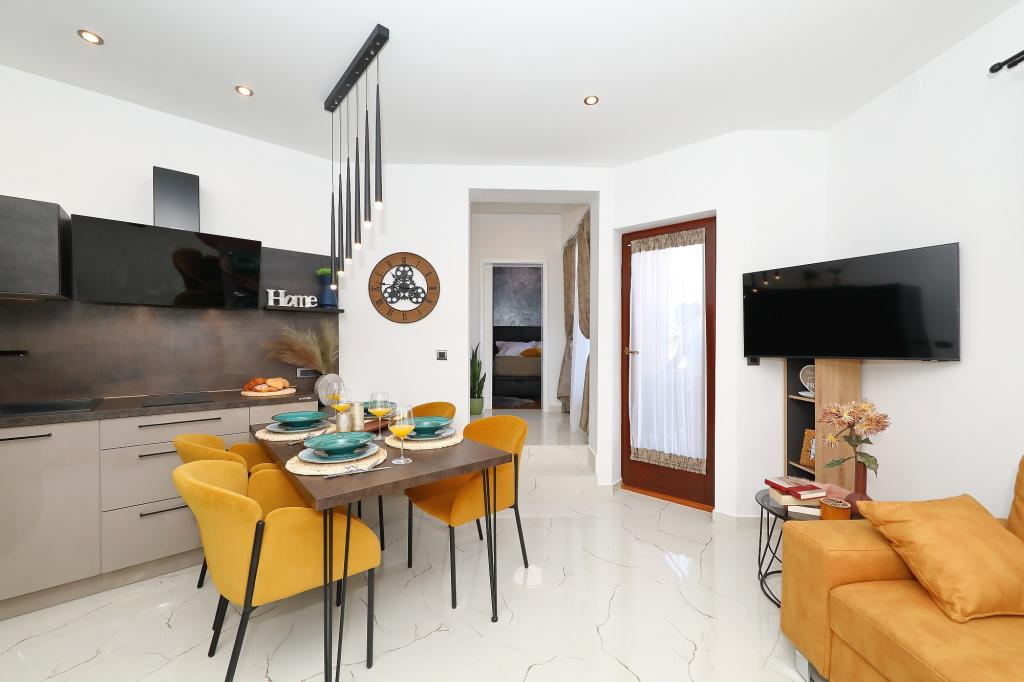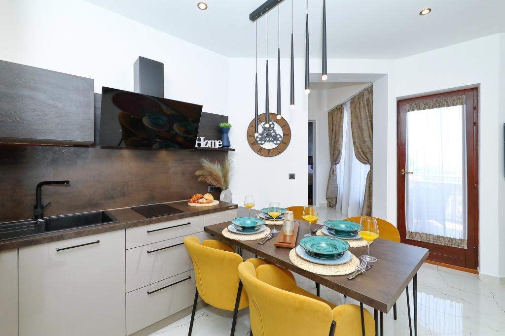Lejlighed ved havet - første kategori. Vi nød virkelig vores ophold, vi følte os som hjemme, med en forskel, undtagen ved havet. Værterne er meget venlige, altid klar til alt hvad du behøver. Lejligheden var helt nyindrettet og renoveret, rummelig og luksuriøs og meget tæt på stranden, bare følg stien og du er der. Vi nød især børnene, for de havde stranden, underholdningen og værelset lige ved hånden. Parkering er i gården, lige foran ejendommen, og alt er meget tilgængeligt til fods (strand, butik rundt om hjørnet, bageri på tværs af gaden, legeplads synlig fra balkonen osv.). Internettet fungerede upåklageligt, så det er ikke et problem at arbejde hjemmefra (læs helligdage). Vi var en familie (2 plus 3 børn). Det var perfekt for os, og vi vil være tilbage til vores næste ferie.