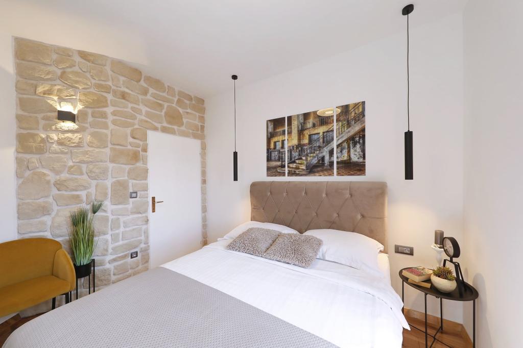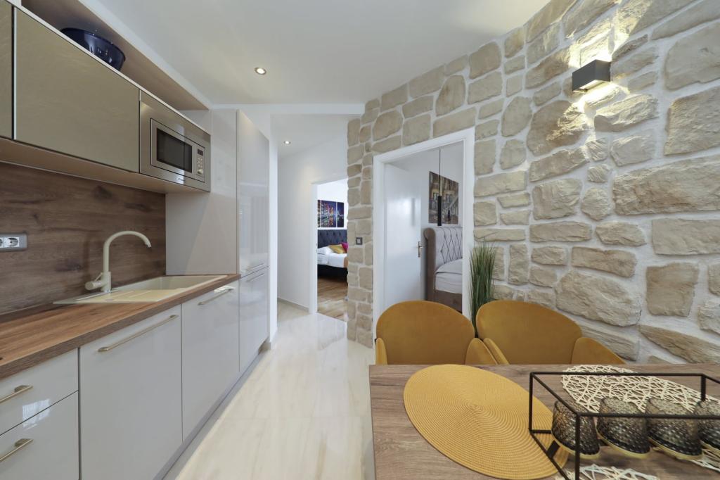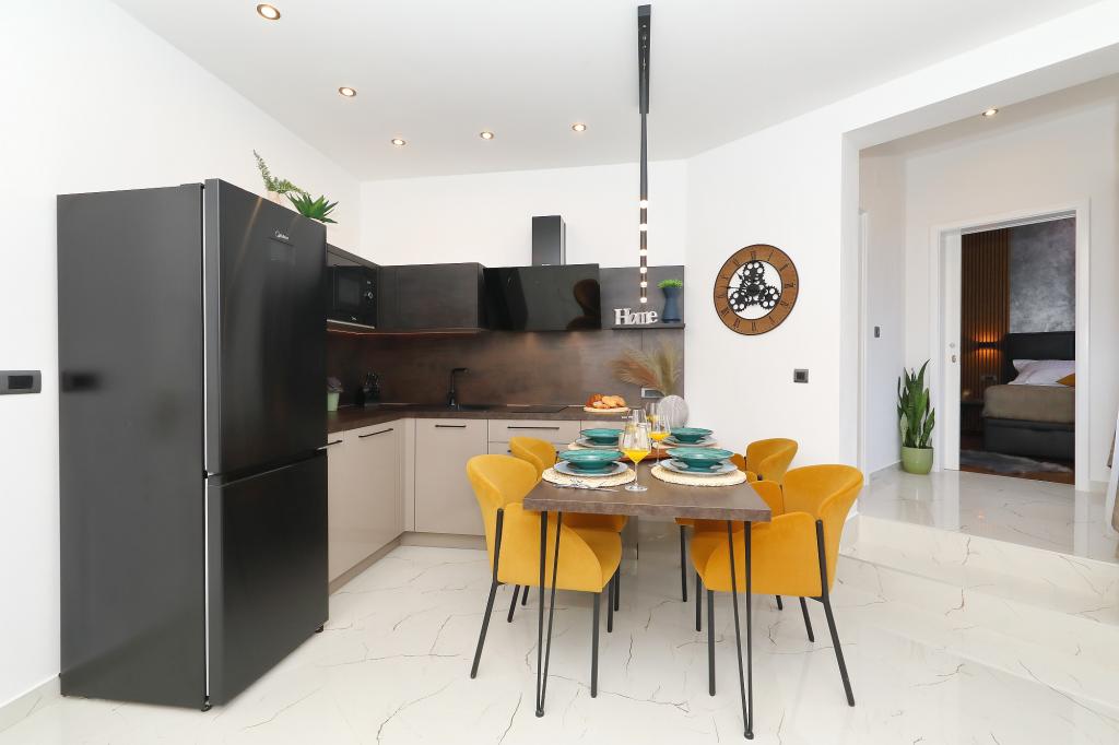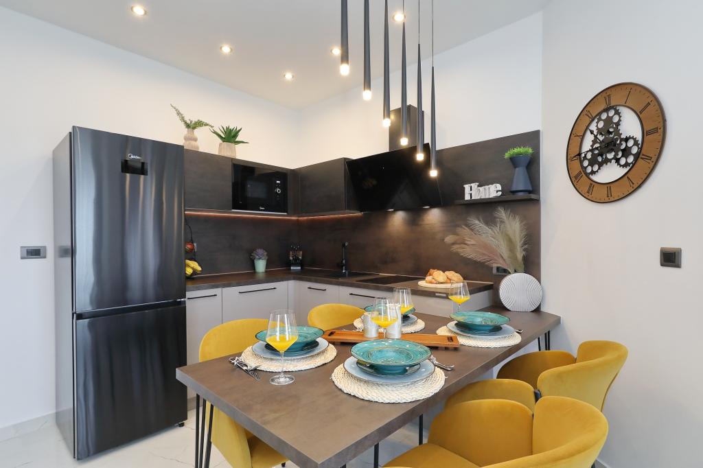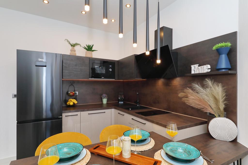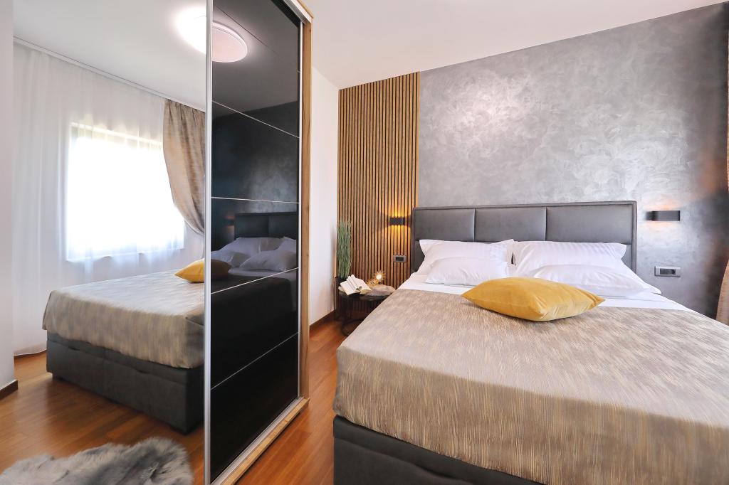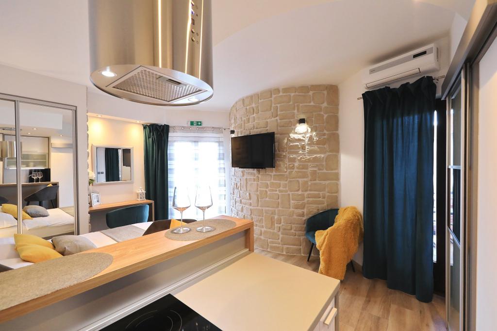 Lejlighed ved havet - første kategori. Vi nød virkelig vores ophold, vi følte os som hjemme, med en forskel, undtagen ved havet. Værterne er meget venlige, altid klar til alt hvad du behøver. Lejligheden var helt nyindrettet og renoveret, rummelig og luksuriøs og meget tæt på stranden, bare følg stien og du er der. Vi nød især børnene, for de havde stranden, underholdningen og værelset lige ved hånden. Parkering er i gården, lige foran ejendommen, og alt er meget tilgængeligt til fods (strand, butik rundt om hjørnet, bageri på tværs af gaden, legeplads synlig fra balkonen osv.). Internettet fungerede upåklageligt, så det er ikke et problem at arbejde hjemmefra (læs helligdage). Vi var en familie (2 plus 3 børn). Det var perfekt for os, og vi vil være tilbage til vores næste ferie.