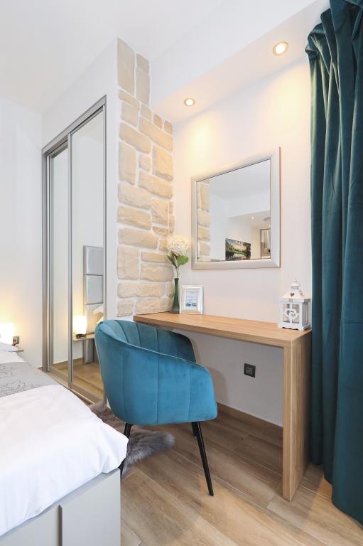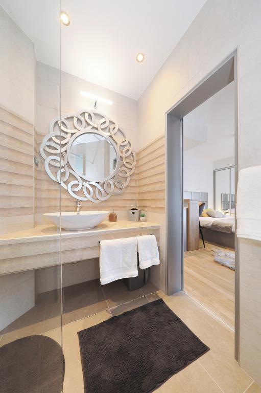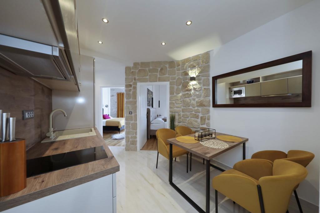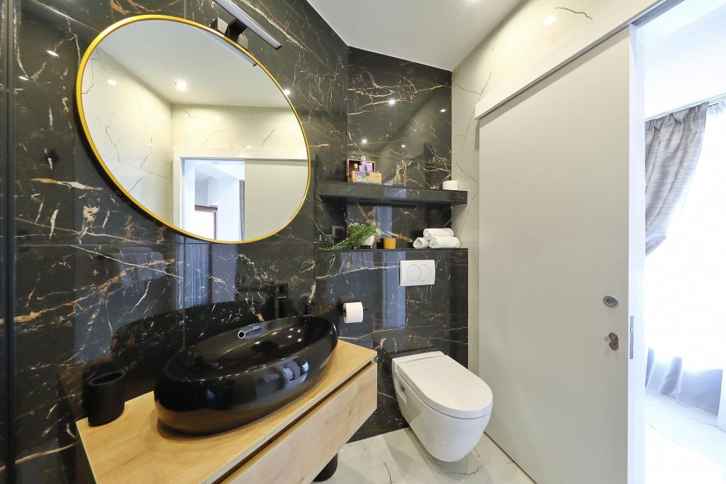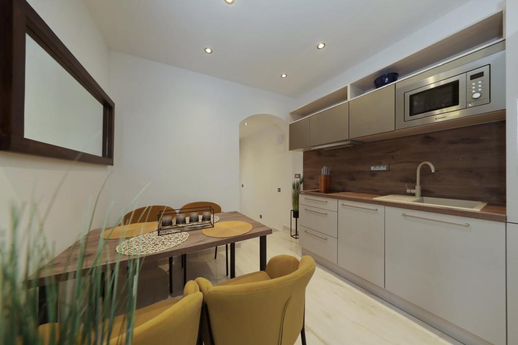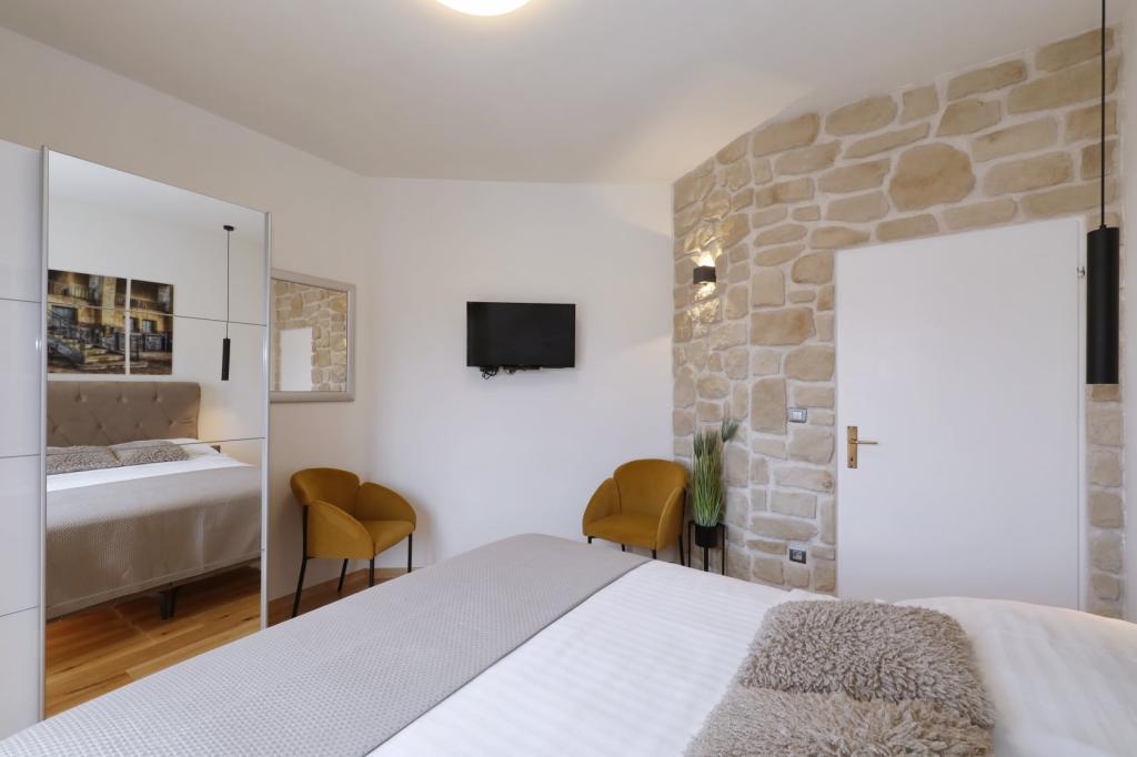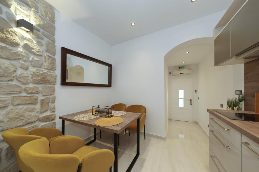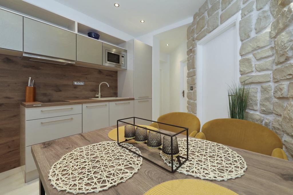 Lejlighed ved havet - første kategori. Vi nød virkelig vores ophold, vi følte os som hjemme, med en forskel, undtagen ved havet. Værterne er meget venlige, altid klar til alt hvad du behøver. Lejligheden var helt nyindrettet og renoveret, rummelig og luksuriøs og meget tæt på stranden, bare følg stien og du er der. Vi nød især børnene, for de havde stranden, underholdningen og værelset lige ved hånden. Parkering er i gården, lige foran ejendommen, og alt er meget tilgængeligt til fods (strand, butik rundt om hjørnet, bageri på tværs af gaden, legeplads synlig fra balkonen osv.). Internettet fungerede upåklageligt, så det er ikke et problem at arbejde hjemmefra (læs helligdage). Vi var en familie (2 plus 3 børn). Det var perfekt for os, og vi vil være tilbage til vores næste ferie.