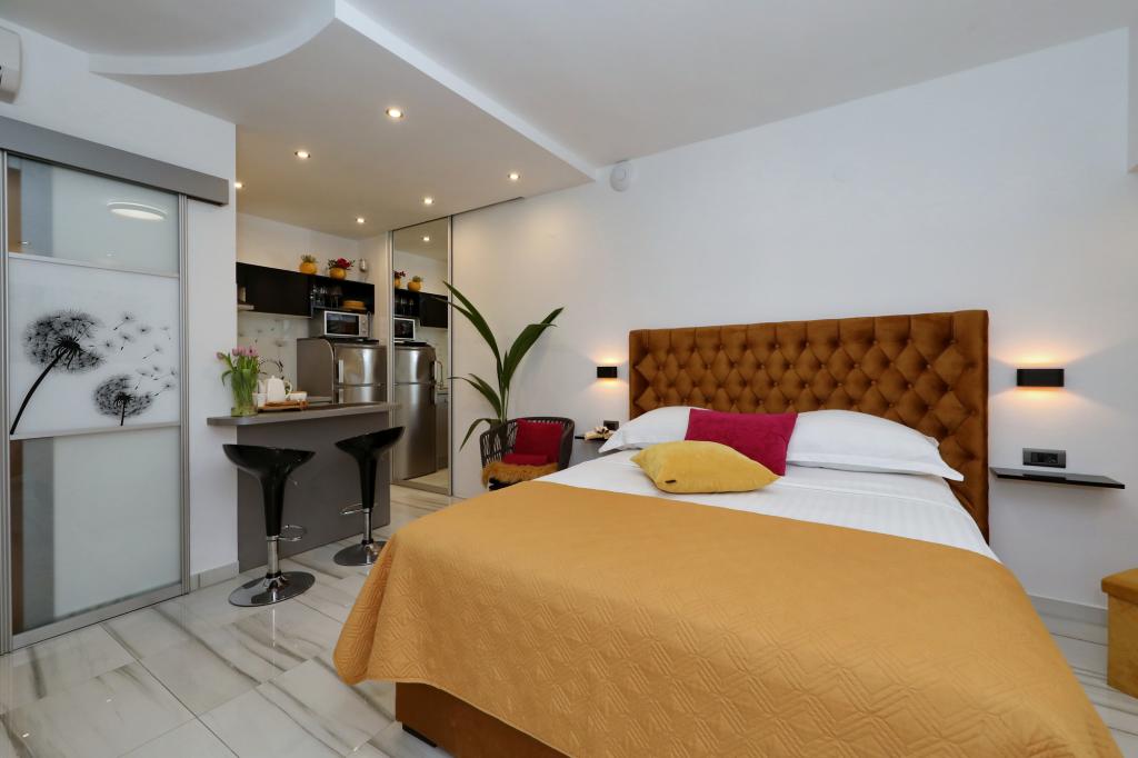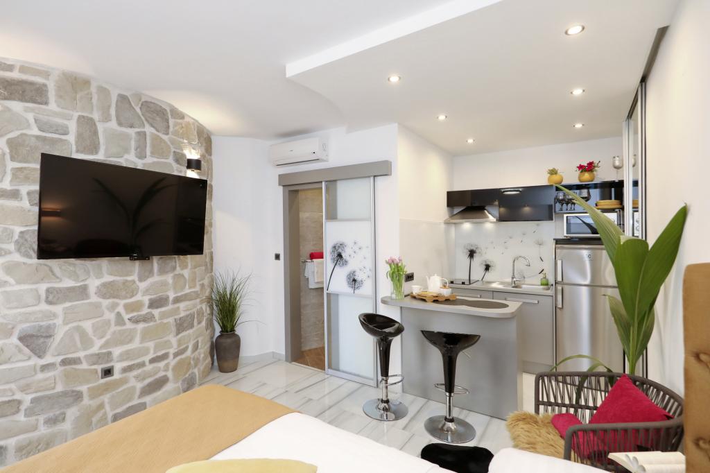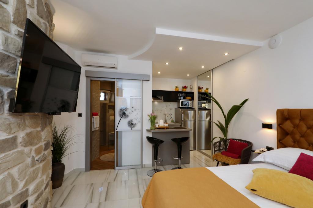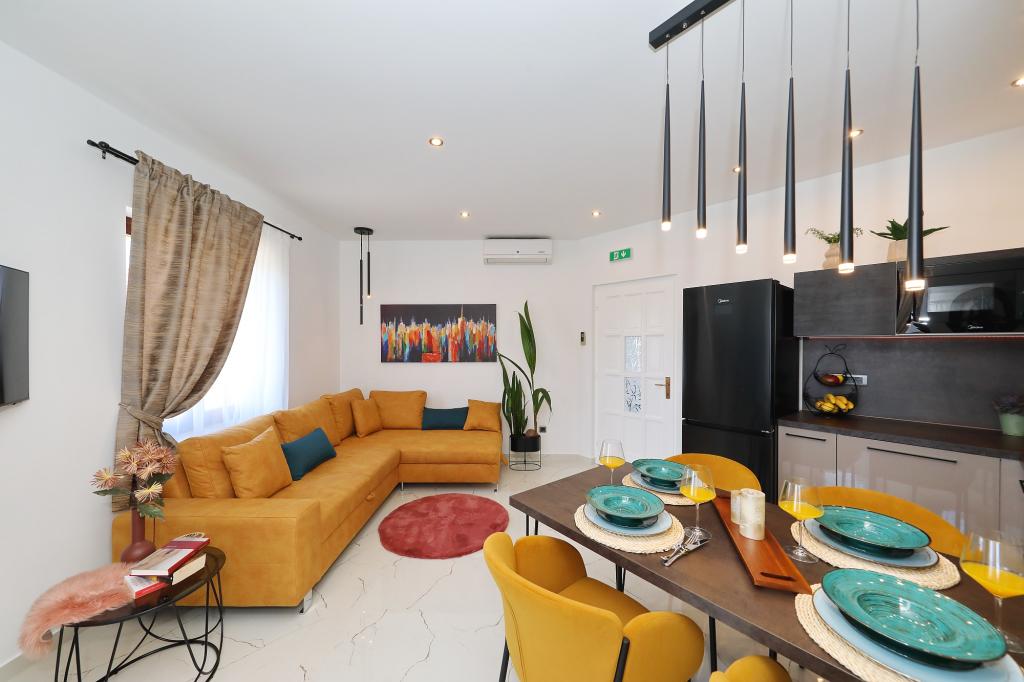 Fremragende indkvartering og lejlighedens beliggenhed. Strand 2 minutters gang fra lejligheden, centrum 5 min. Alt hvad du behøver for et behageligt ophold er i nærheden, få minutters gang fra lejligheden. Ingen grund til at bruge bil. Værterne er meget imødekommende og venlige, alle anbefalinger til lejlighederne Vila Dalmatino, og vi håber at være jeres gæster igen næste år.