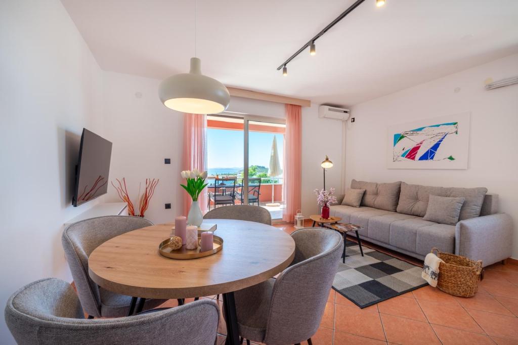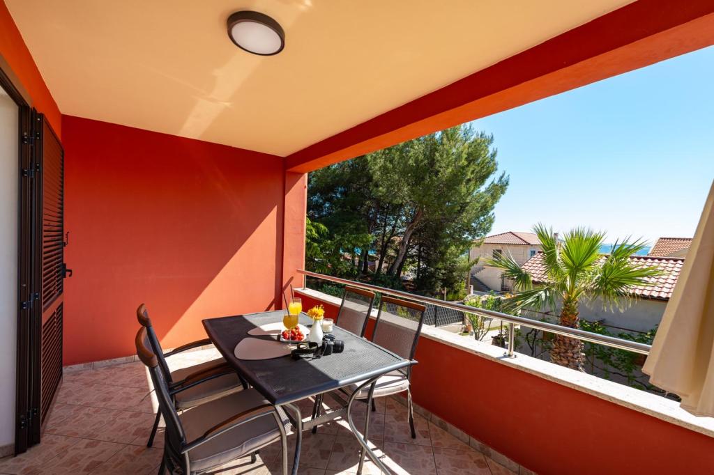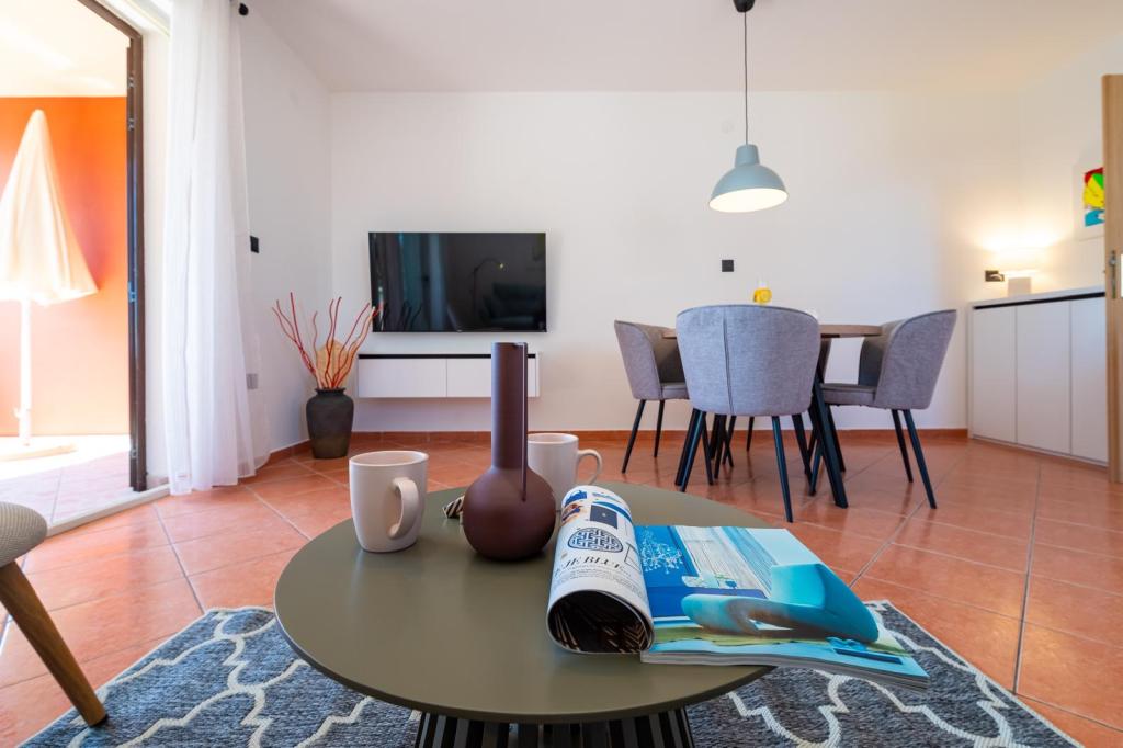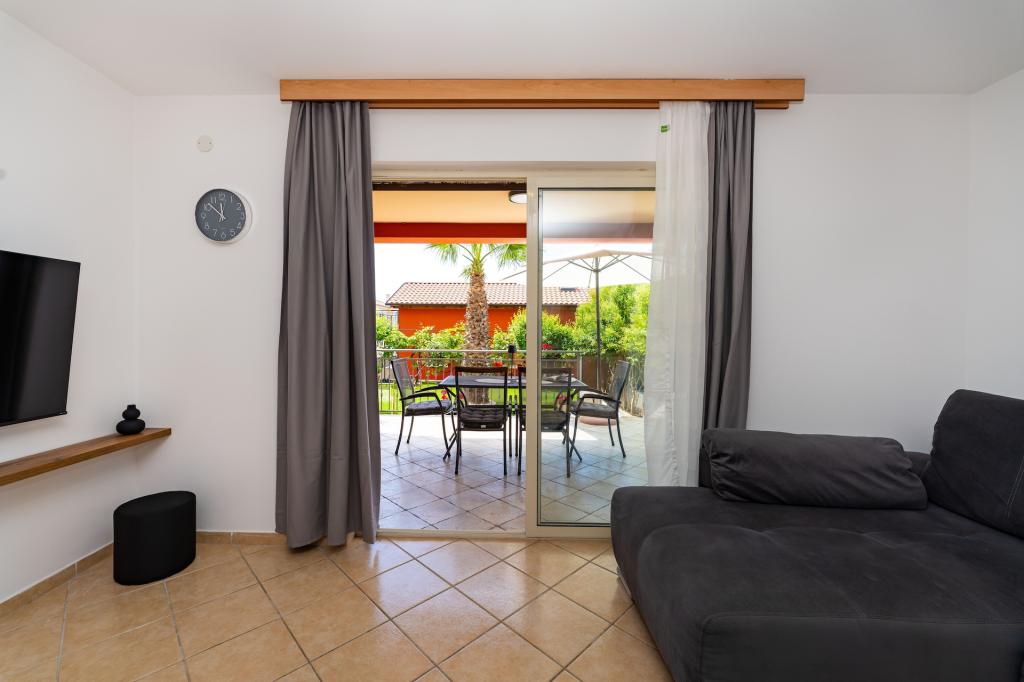 Villa San Marino har otte identiske lejligheder fordelt på tre etager. Der er to lejligheder på hver etage. Lejlighederne er i alt 55 m2 store og indeholder et soveværelse med dobbeltseng, en stue med en klik-klik-seng, et køkken, en spisestue og en stor terrasse. Alle lejligheder ligger i første række mod havet og vender ud mod havet. De er udstyret med aircondition til køling og opvarmning. Køkkenerne er udstyret med redskaber til at tilberede og servere mad og drikkevarer i passende mængder, køleskab, fryser, elektrisk kogeplade, gaskomfur og emhætte, og badeværelserne har brusere. Hver lejlighed har fladskærms-tv med satellit og antenne samt internetadgang. Terrasserne har siddemøbler.