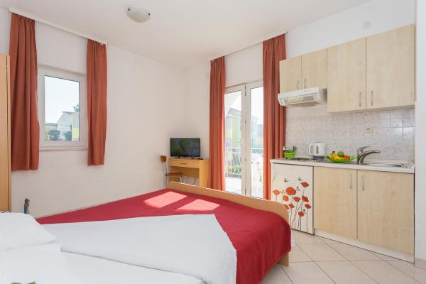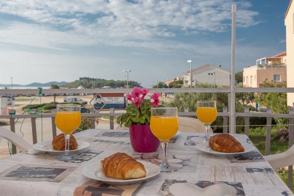 Lejligheder med et, to soveværelser og studiolejligheder. I centrum af Pakoštane, lige ved siden af den største parkeringsplads. Afstand til stranden er 70 meter, 10 meter fra bank og butik. Sikker parkering foran lejligheden. Alle lejligheder har balkon, aircondition og wi-fi!