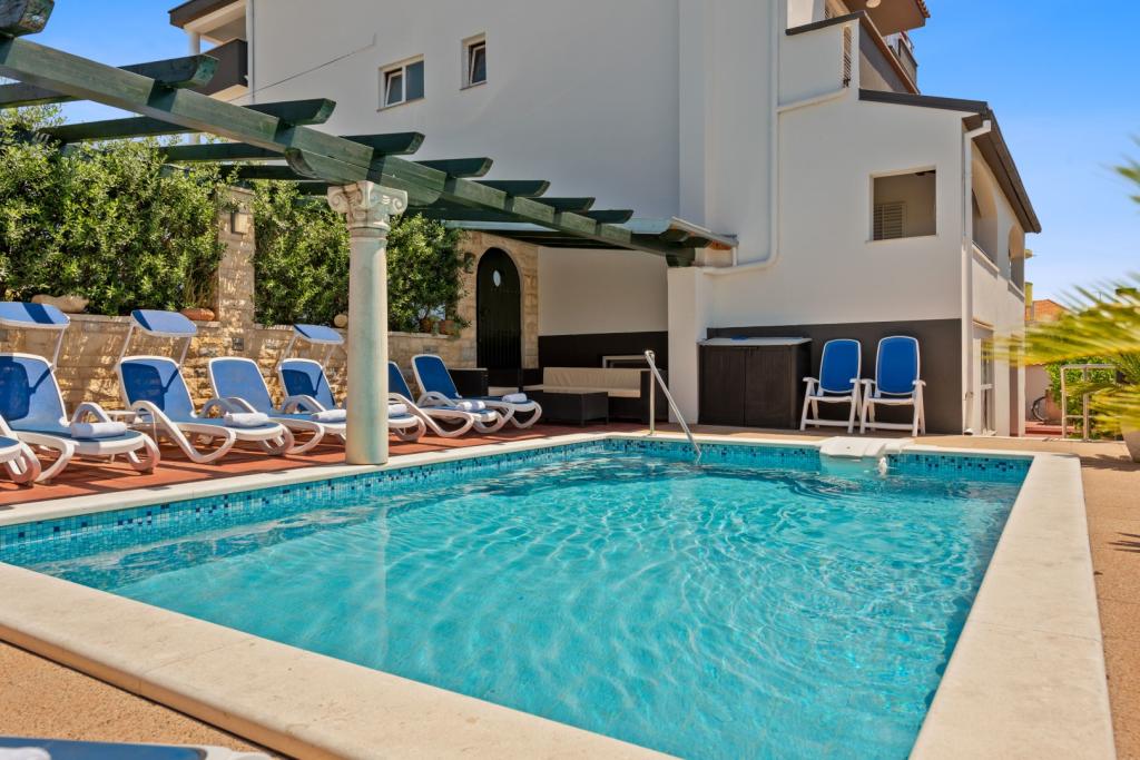 Lejlighederne ligger i centrum af byen, tæt på strande, restauranter og andre tilbud, som Pakoštane turistråd har forberedt til denne sommer (forskellige koncerter, gastronomiske menuer, festivaler og fester). Lejlighederne er moderne udstyrede med alle nødvendige faciliteter (service, mikrobølgeovne, elkedler, kaffemaskiner, aircondition, sengelinned, håndklæder). Vi gør os stor umage for at holde lejlighederne og hele haven (swimmingpool, grill, parkering) ren, og vi bestræber os på at sikre, at vores gæster nyder vores lejligheder fuldt ud.