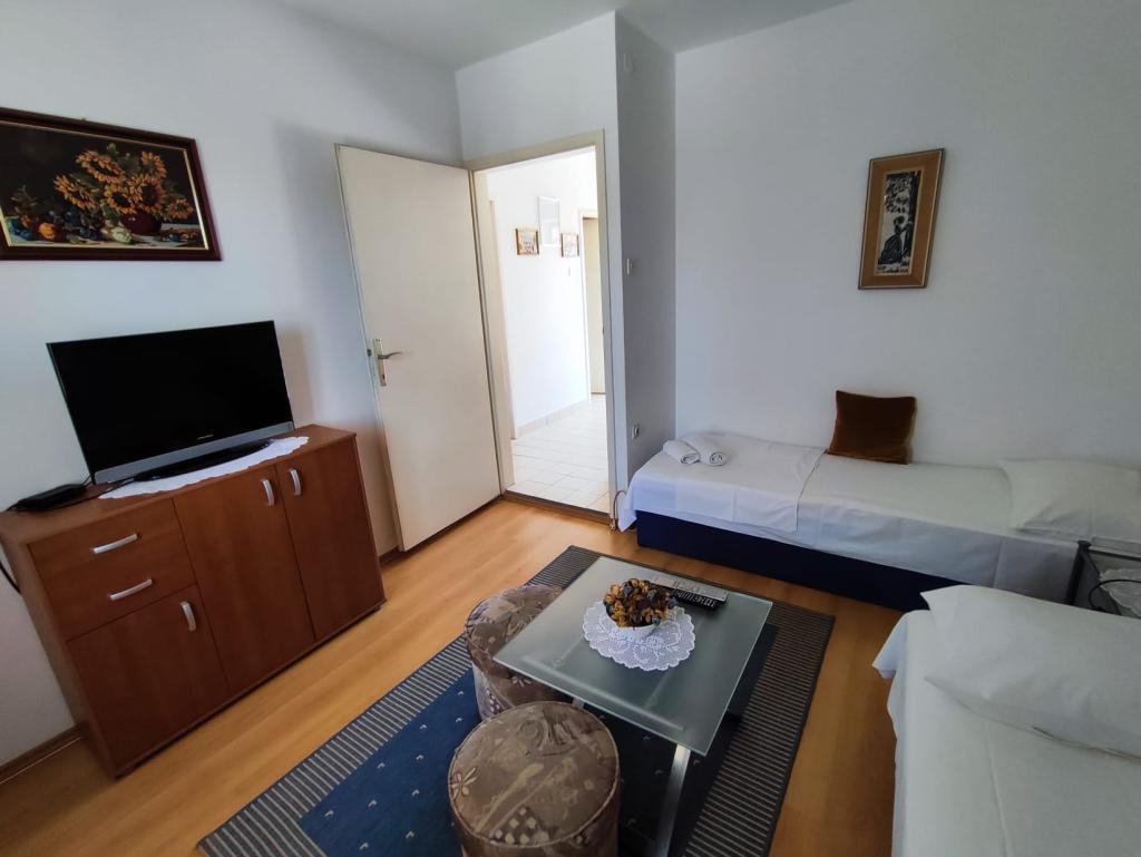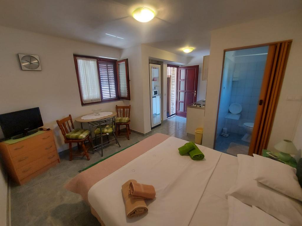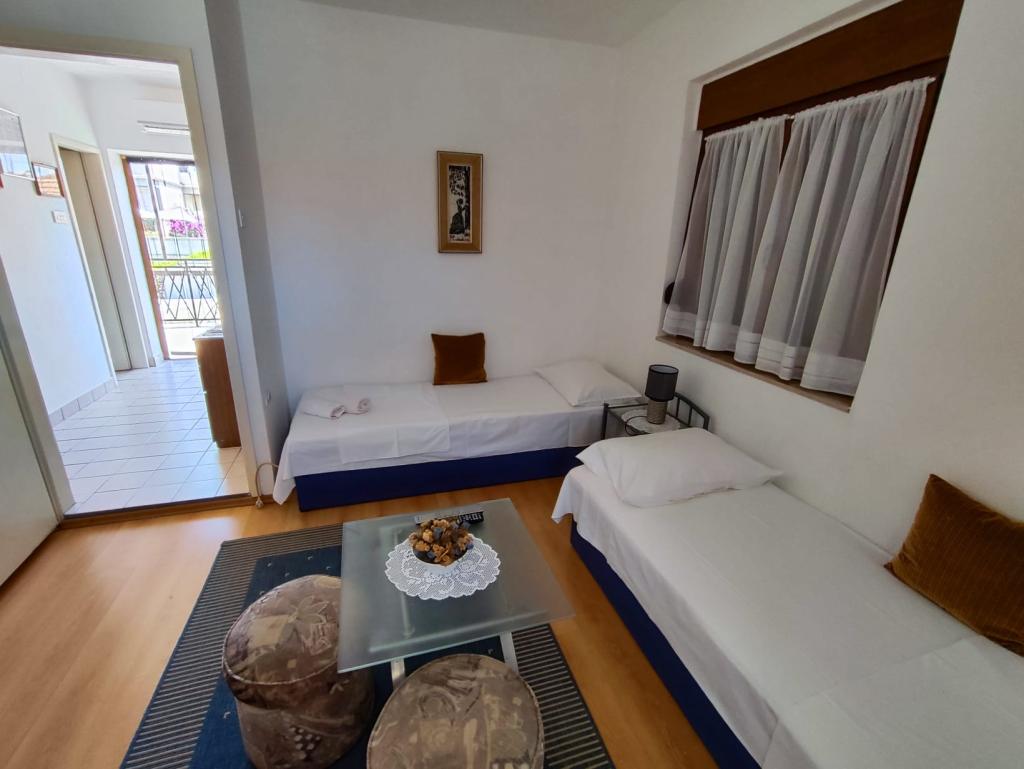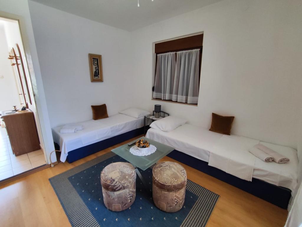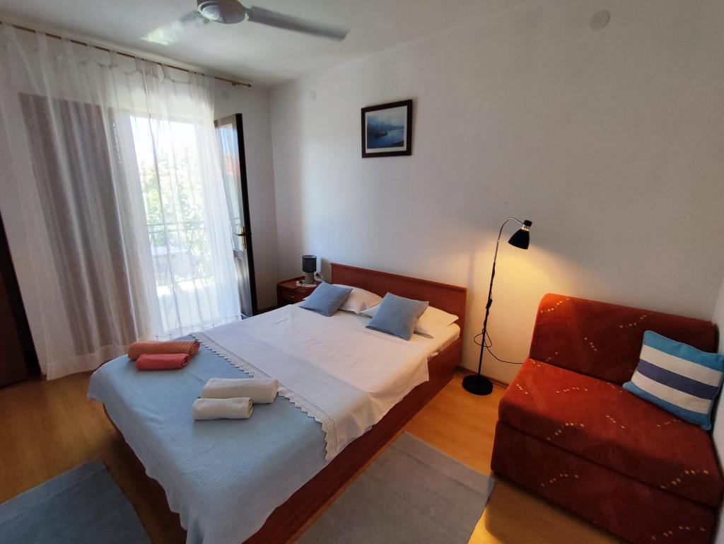 Familiehuset er beliggende i en rolig beliggenhed nær strandene og bymidten. Det tilbyder komfortabel indkvartering i en lejlighed for 4 til 5 personer og et studie til 2 personer og et barn (op til 12 år). Det ligger få minutters gang fra byens centrum og strandene. I en hyggelig atmosfære kan du tilbringe din ferie med din familie eller som et par, og nyde sommeraftenerne på altanerne og den smukke have.