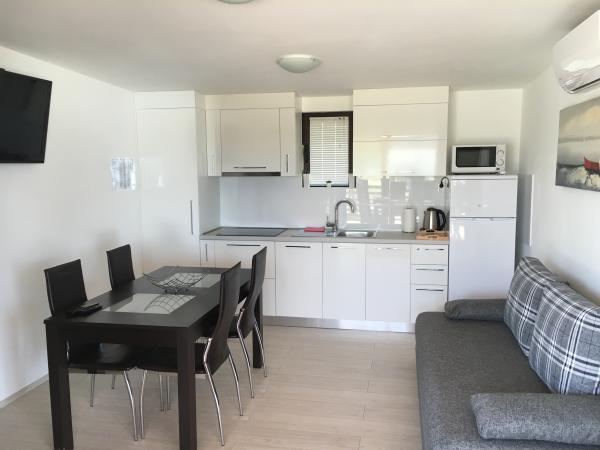 Mobile home til leje er beliggende i en rolig del af Pakostane og er beliggende ud til havet. Det er kun 5 minutters gang til byens centrum. Huset er fuldt og moderne indrettet, og består af to soveværelser, køkken, stue og badeværelse. Det har en terrasse på 20m2 med udsigt over havet og de nærliggende øer. Mobile hjem er aircondition, har et tv og internet, sengetøj, fade, håndklæder, mikroovn, grill ... Denne sæson tilbyder vi en ny mobile home på 40m2 bestående af to soveværelser, og hvert værelse har sit eget badeværelse. Huset har en rummelig stue og køkken, en terrasse på 20m2 har også en havudsigt.
